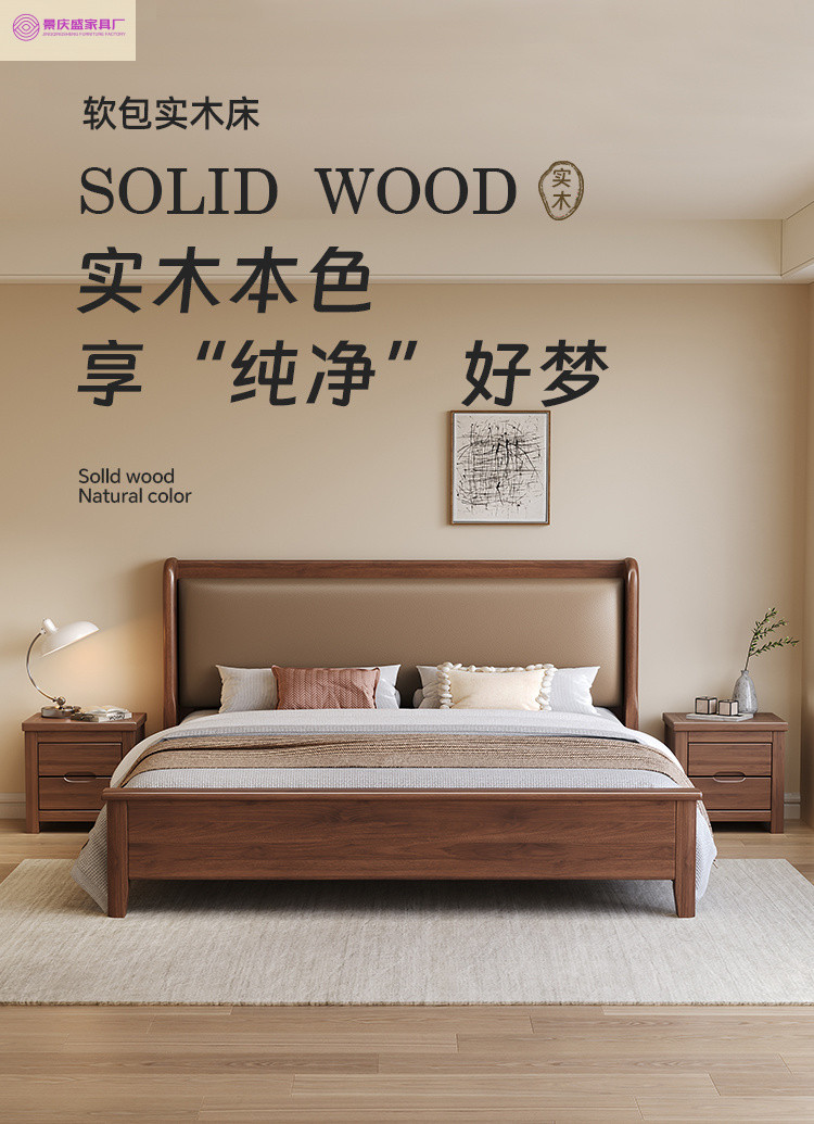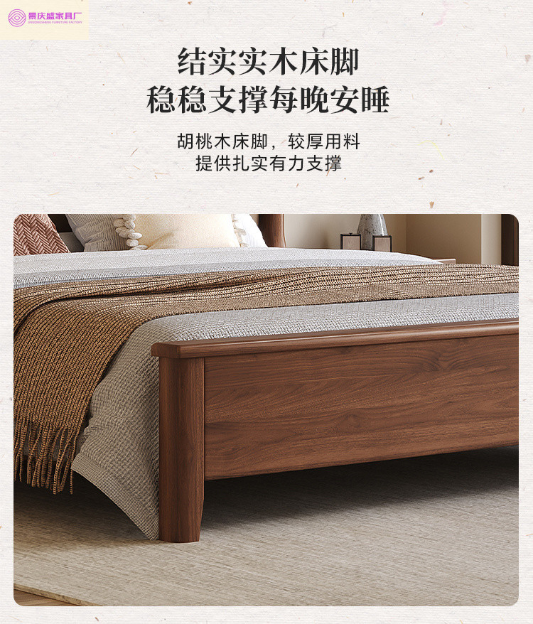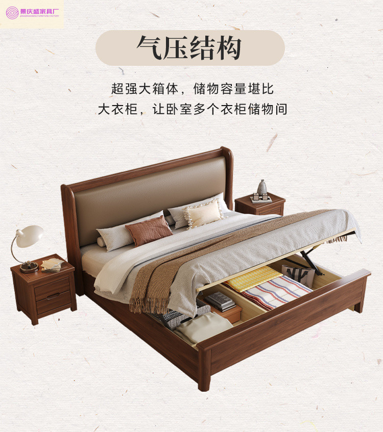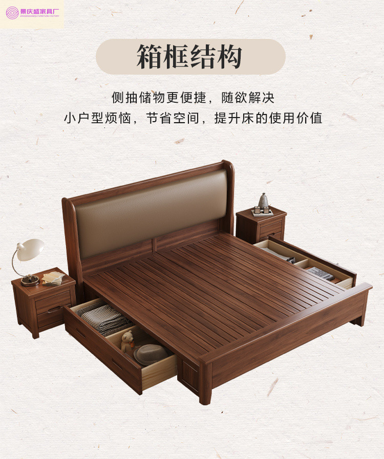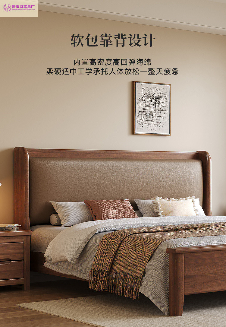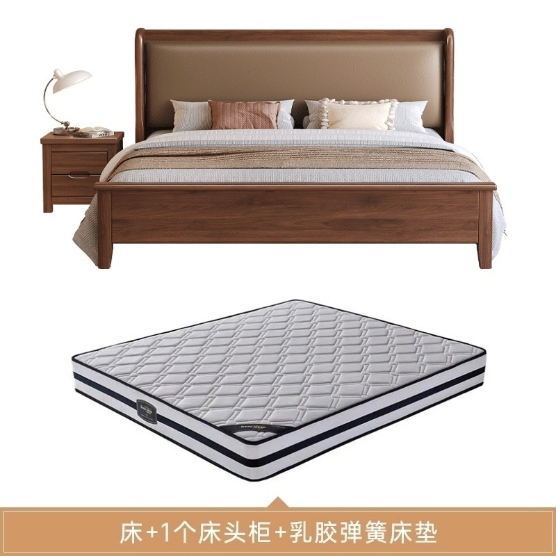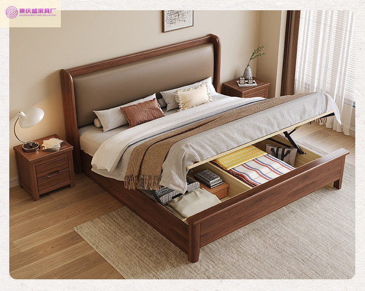 현대적인 미니멀리스트 1.5m 소프트 웨딩 침대 새로운 중국 스타일 골드 와이어 호두나무 원목 마스터 침실 킹 침대 더블 1.8x 2m스토어 가기