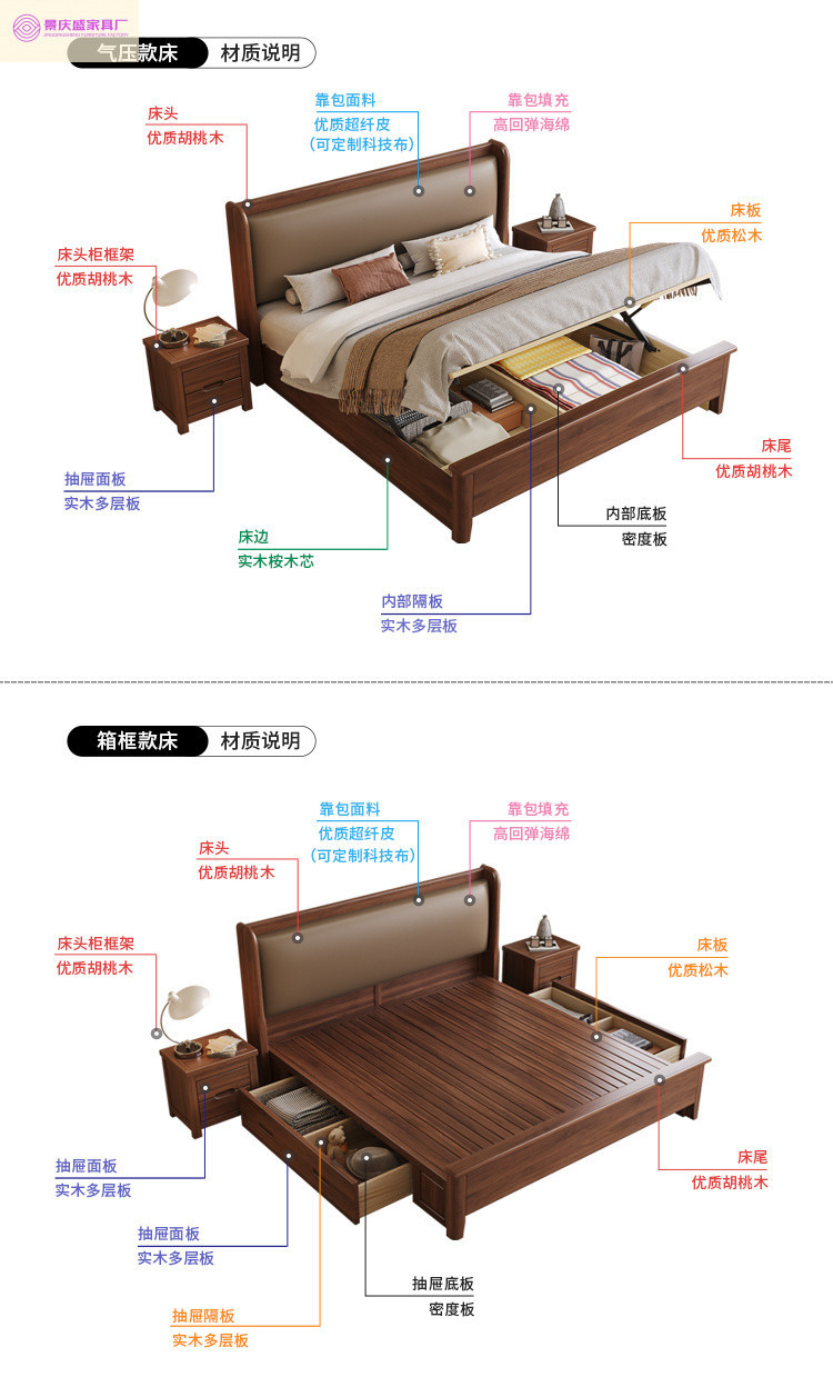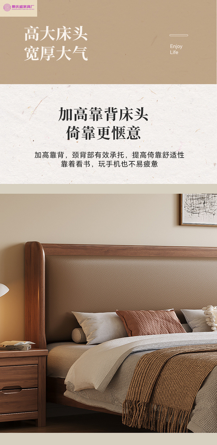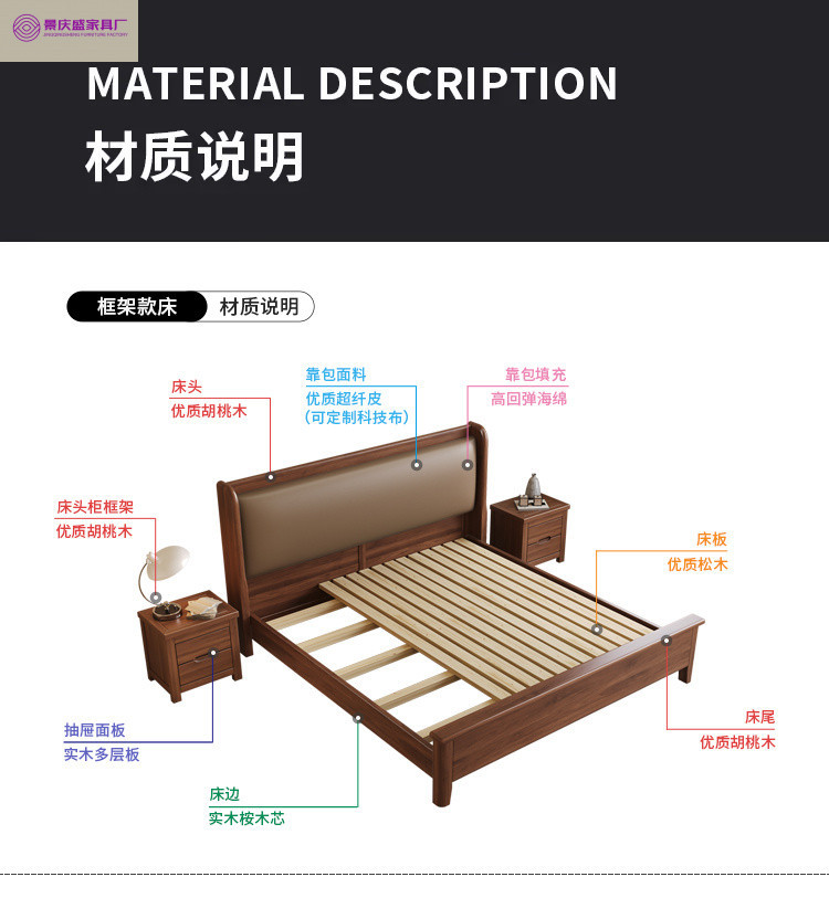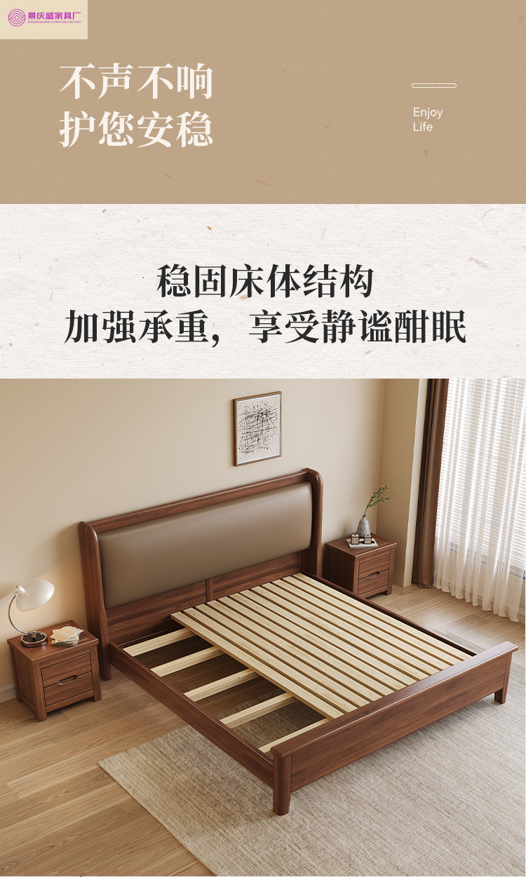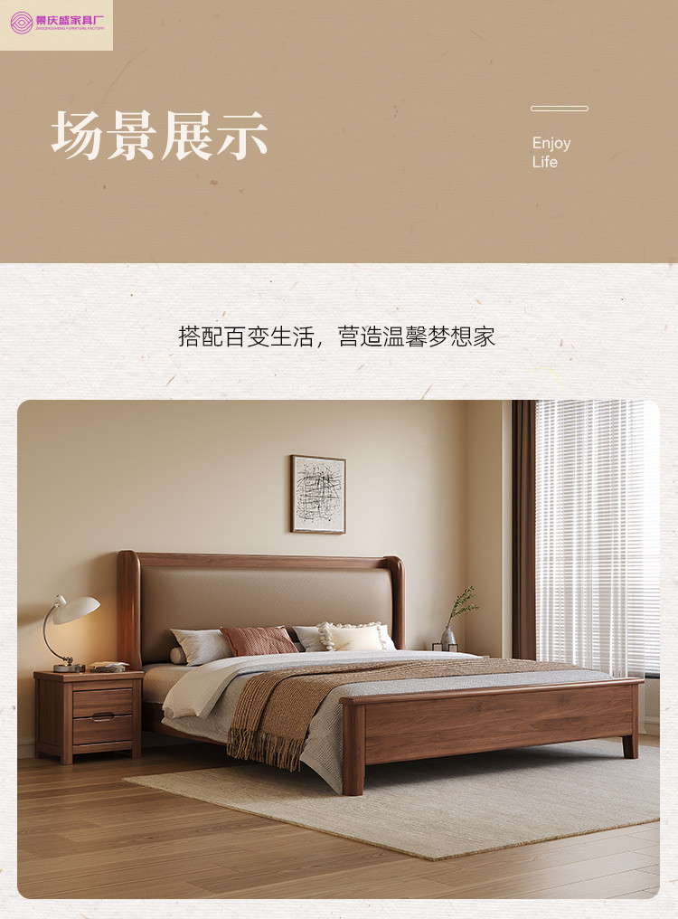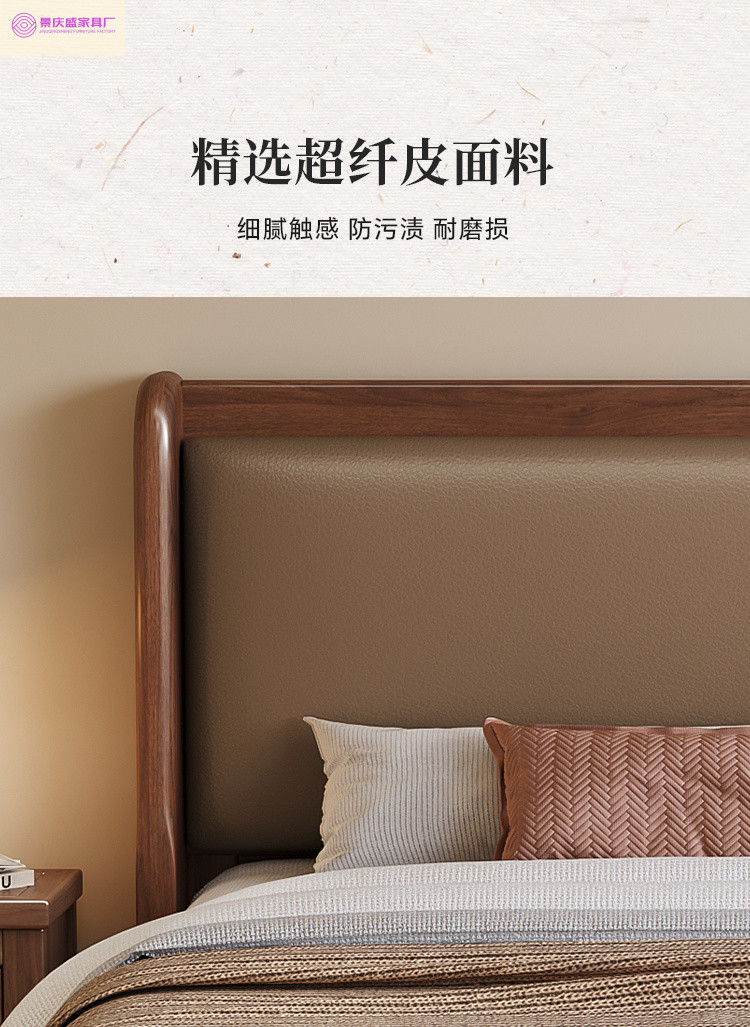 현대적인 미니멀리스트 1.5m 소프트 웨딩 침대 새로운 중국 스타일 골드 와이어 호두나무 원목 마스터 침실 킹 침대 더블 1.8x 2m스토어 가기