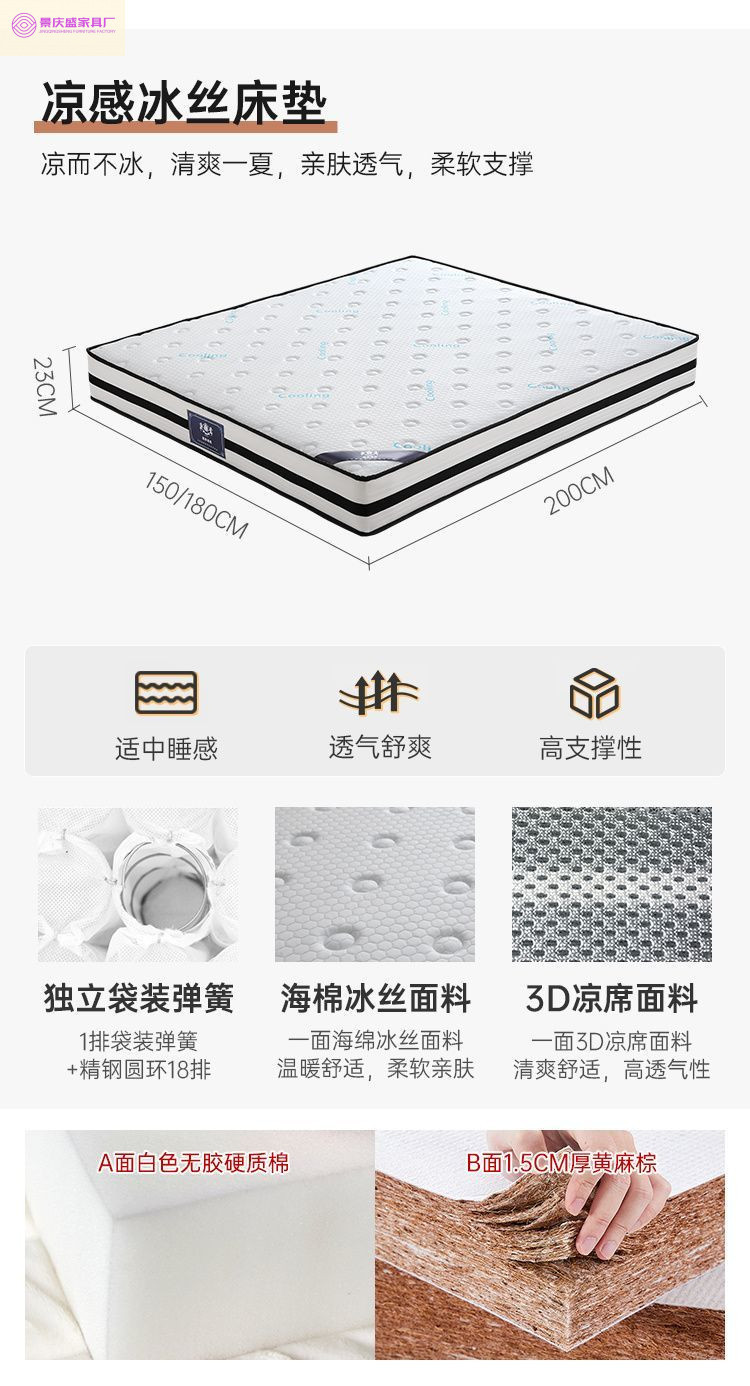 • 원목 싱글 침대 + 캐비닛 2개 + 아이스 실크 독립 스프링 이중 목적 매트리스