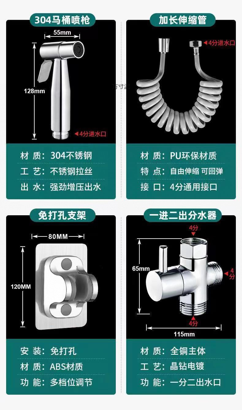 304 스테인레스 스틸 부스터 워터 스프레이 수도꼭지 플러시 욕실 화장실 동반자 화장실 고압 플러시 세트 도매스토어 가기