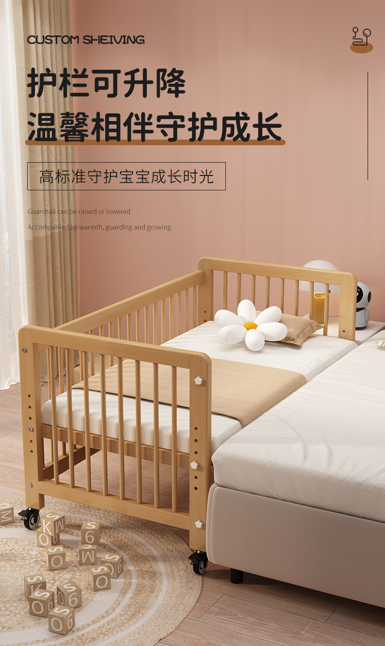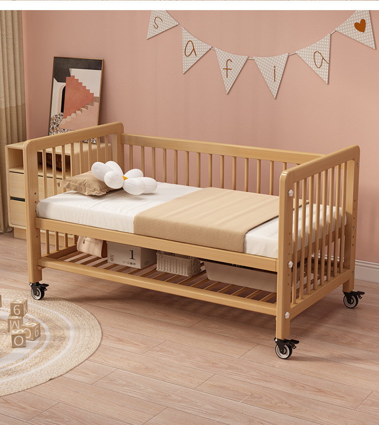 너도밤 나무 아기 침대 넓은 큰 침대 아기 침대 단단한 나무 높이 조정 가능