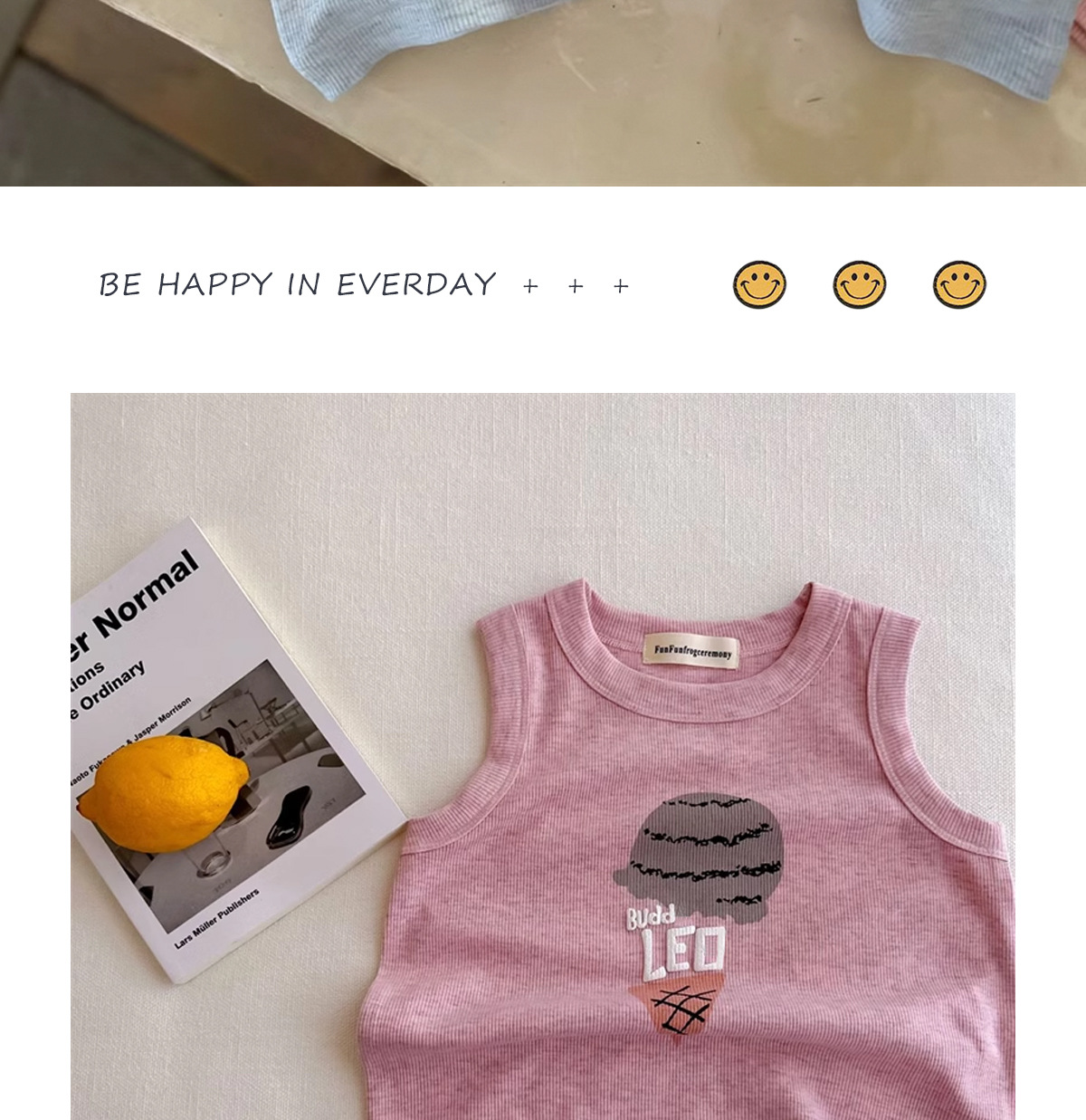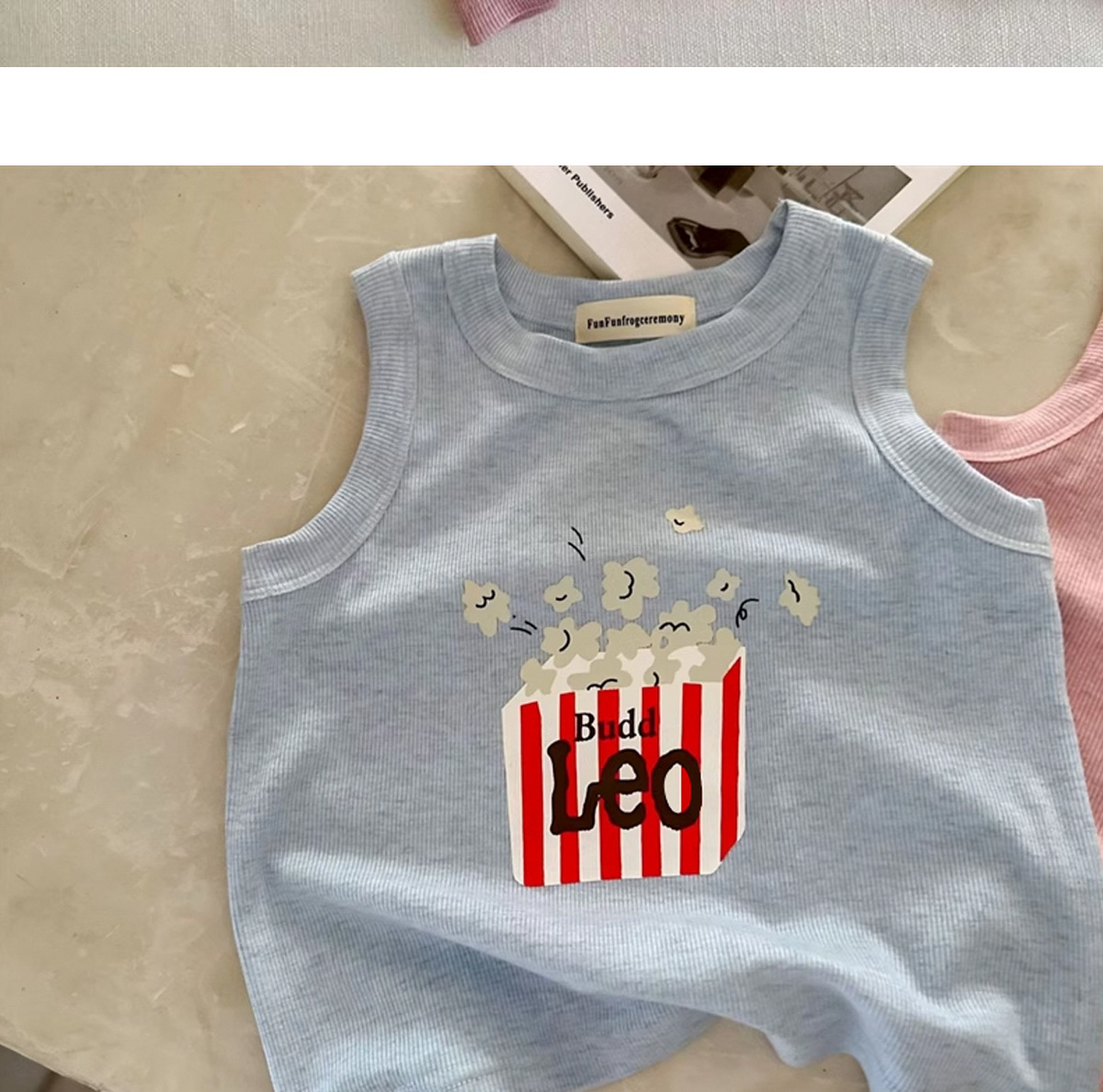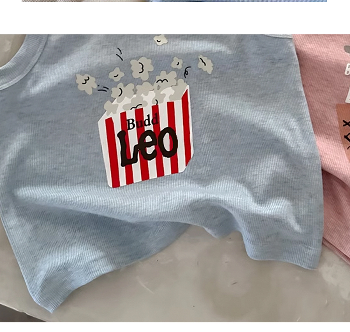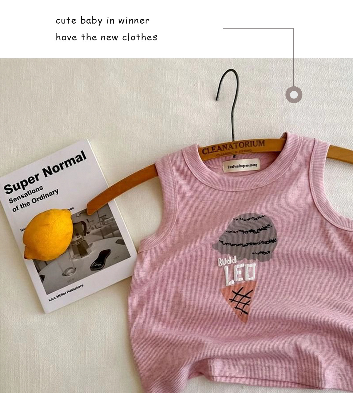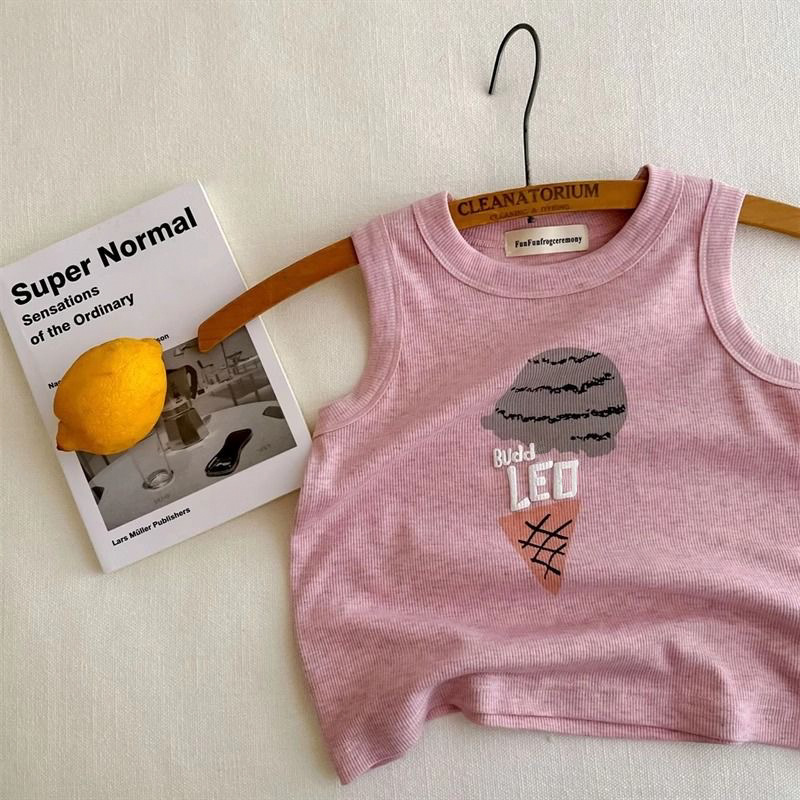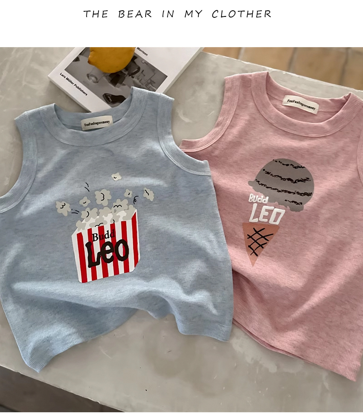 2025 여름 반팔 아동복 일본 티셔츠 아기 민소매 조끼 만화 버거 프린트 귀여운 다용도 조끼스토어 가기