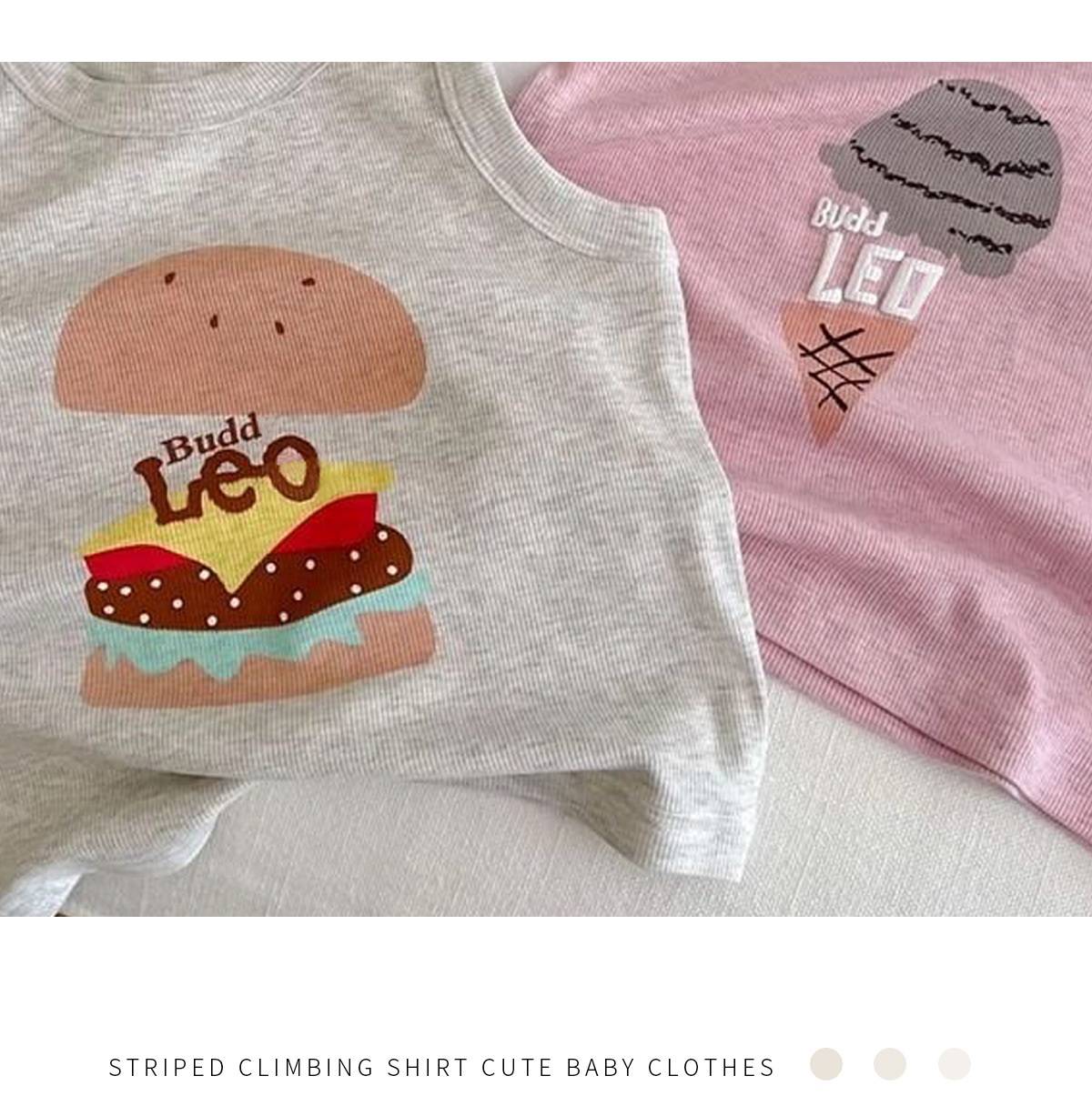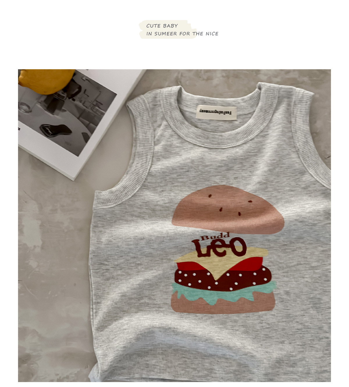 2025 여름 반팔 아동복 일본 티셔츠 아기 민소매 조끼 만화 버거 프린트 귀여운 다용도 조끼