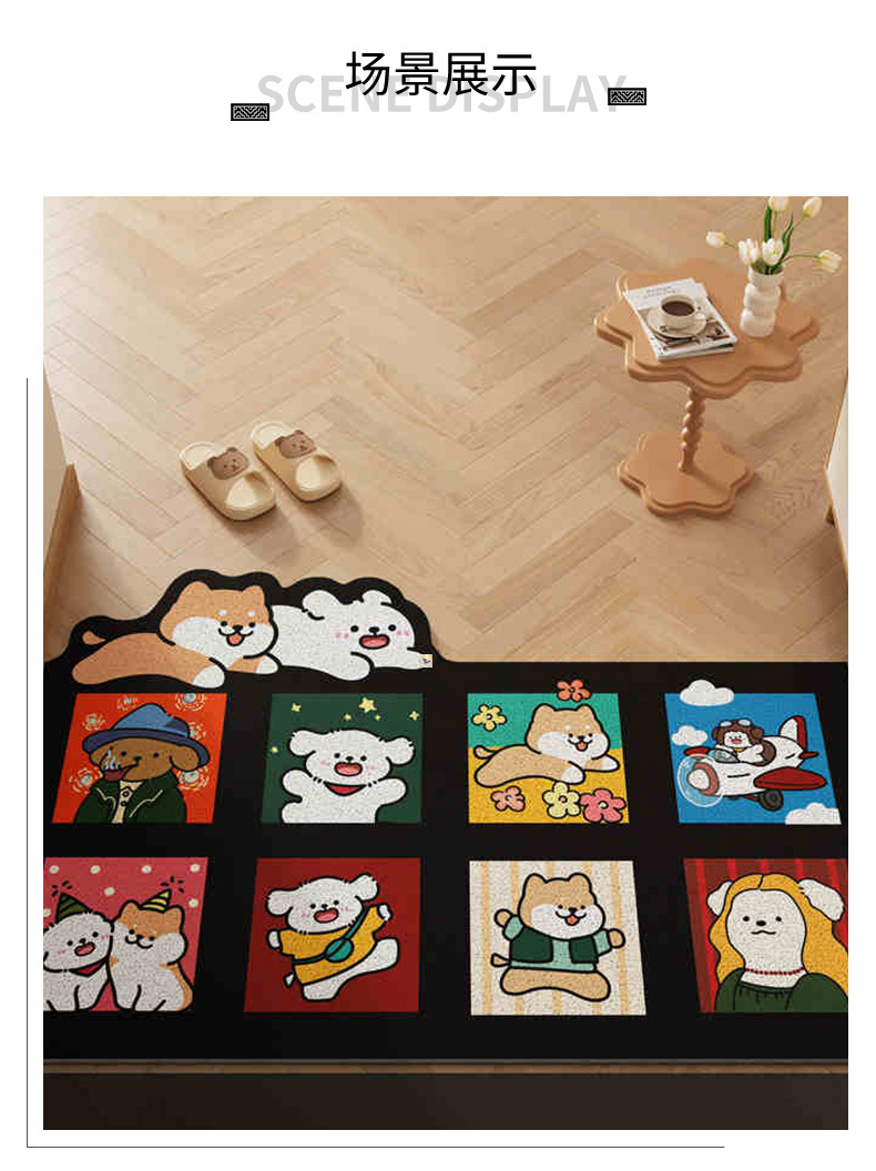 Moe Fun 만화 입구 매트 복도 절단대 간편한 실크 루프 풋 매트 홈 스크래핑 머드와 토양 방지 더러운 매트