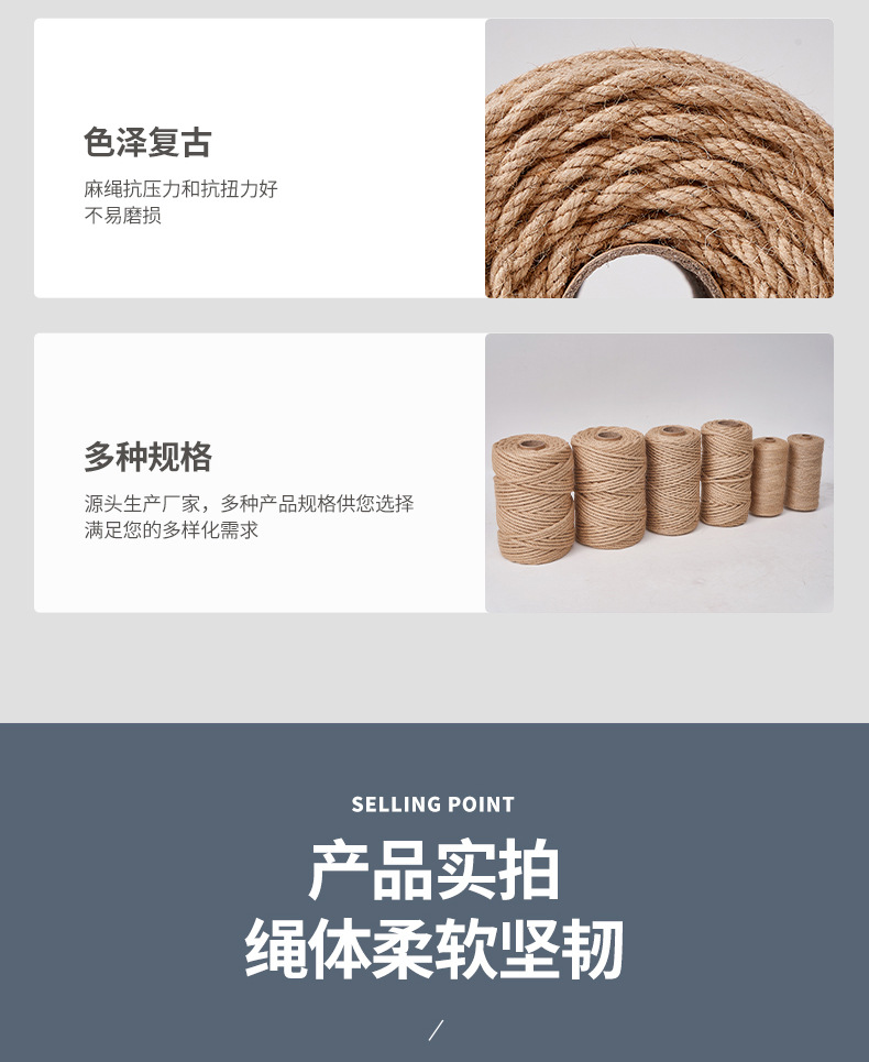 마끈 엄선 황마 줄다리기 묶기 고양이 클라이밍 DIY 레트로 장식 천연색 두꺼운 내마모성 마끈 야외용 로프스토어 가기
