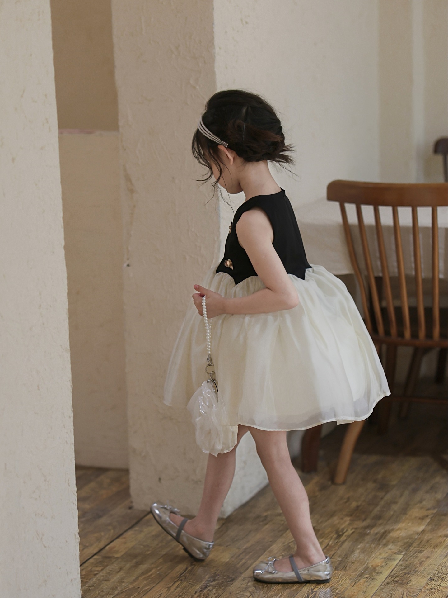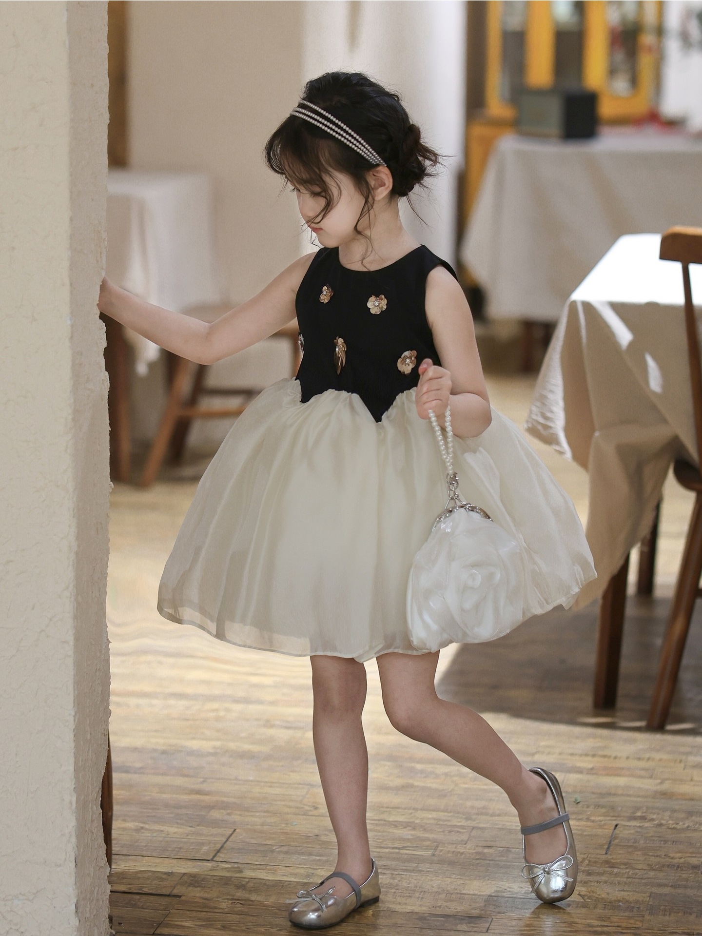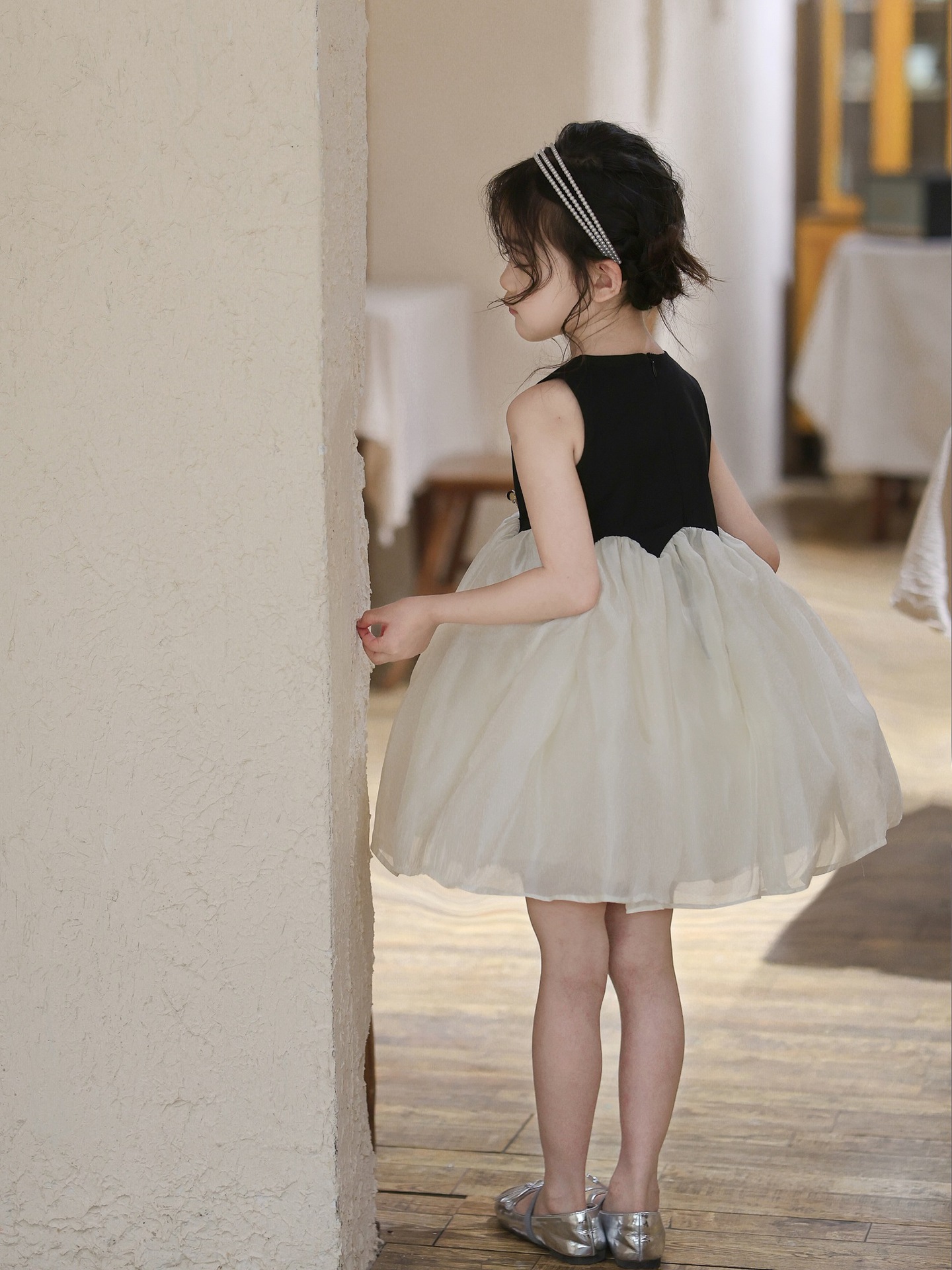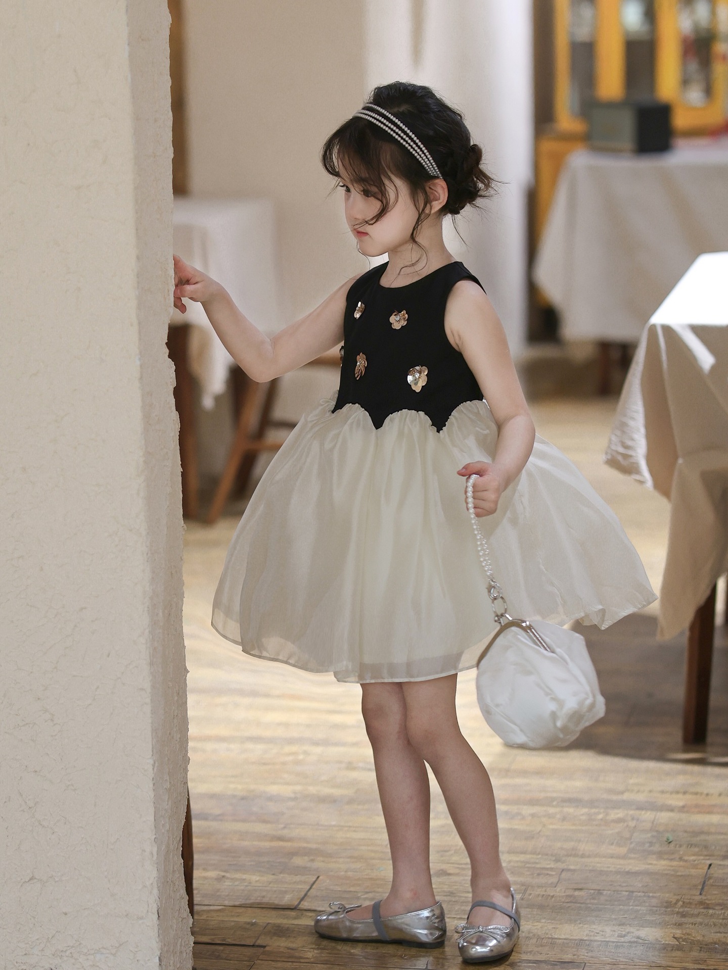 여자 드레스 여름 2025 새로운 유행 꽃 민소매 검은 조끼 드레스 공주 어린이 스커트
