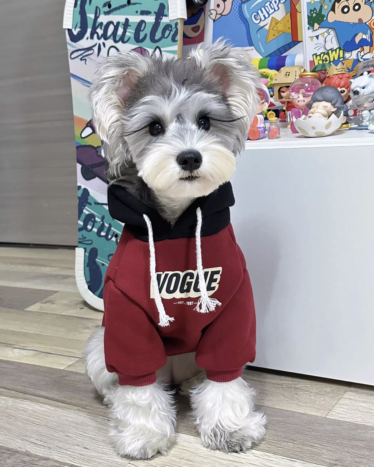 애완 동물 고양이와 개 옷 색상 차단 후드 플러스 벨벳 두꺼운 따뜻한 스웨트 셔츠 중소형 개스토어 가기