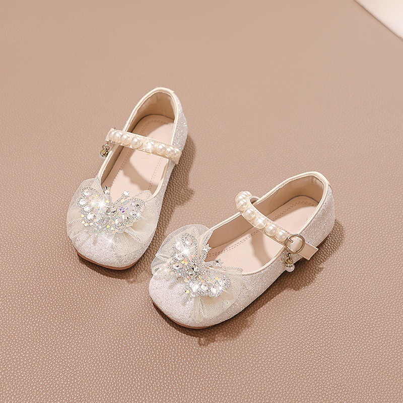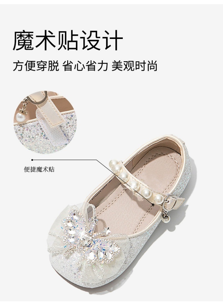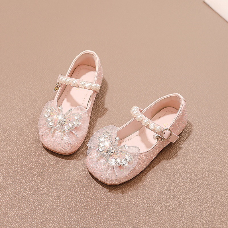 6-12 세 소녀 신발 어린이 공주 작은 가죽 신발 2025 새로운 여름 아기 크리스탈 신발 작은 가죽스토어 가기