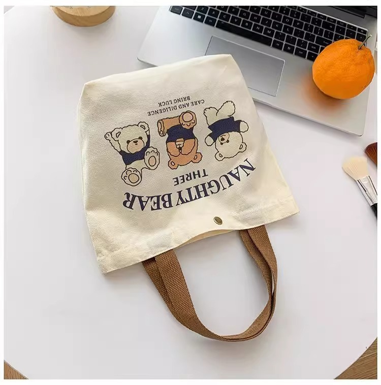 新款小熊帆布包女印花百搭学生便携上班手拎便当包手提袋子帆布袋