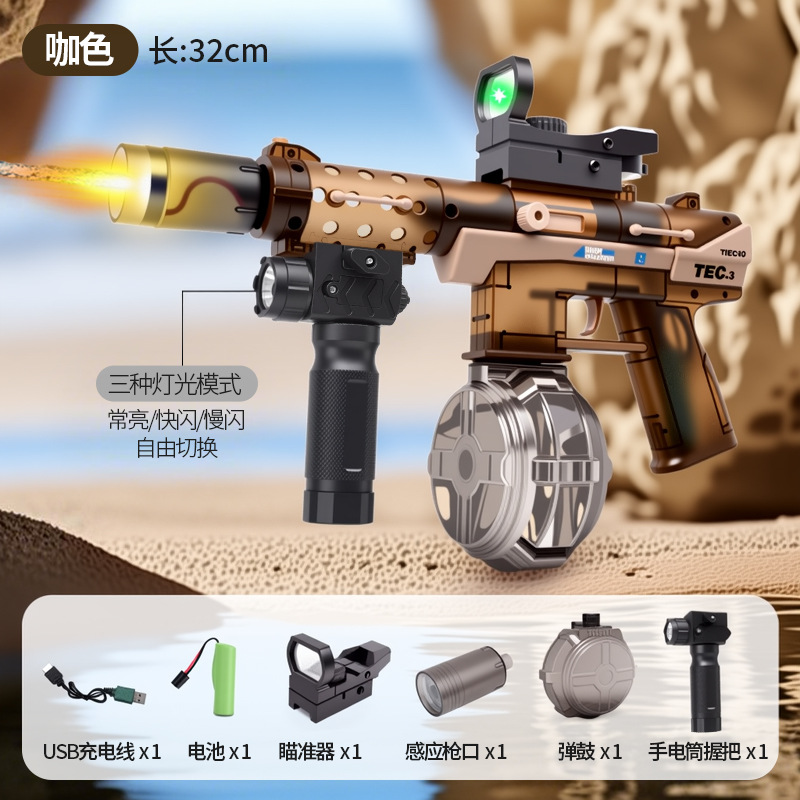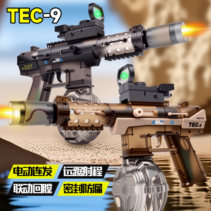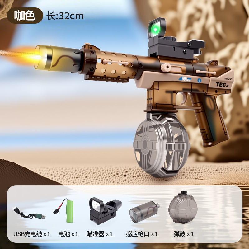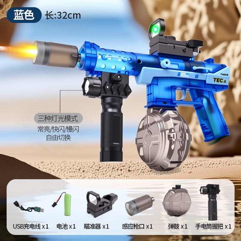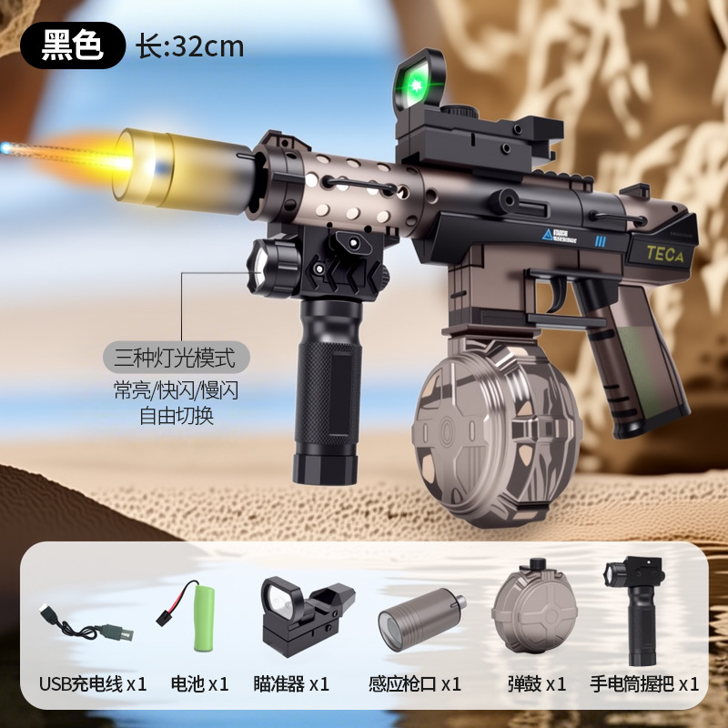 전동 연사형 TEC9 물총 어린이 장난감 대용량 센서 점멸 연동 리코일 남아 물놀이