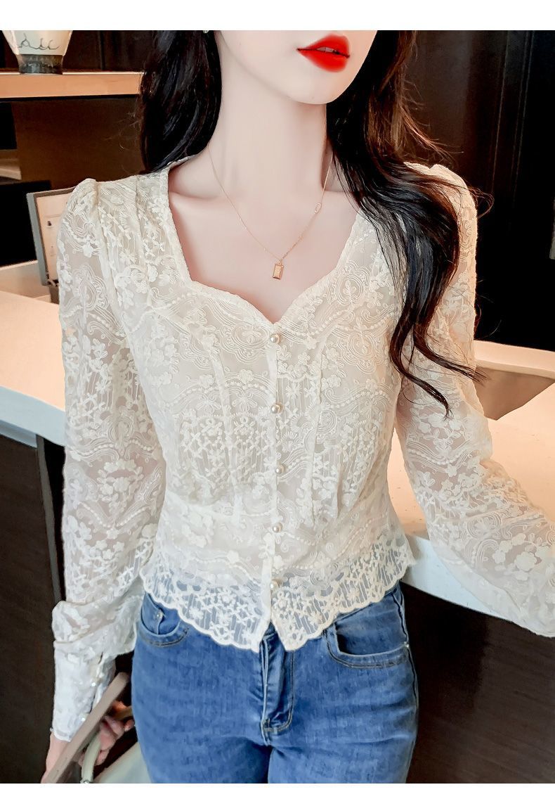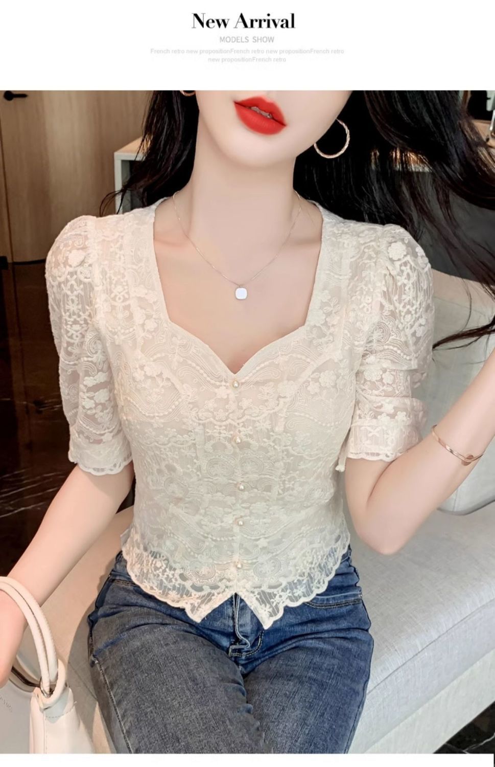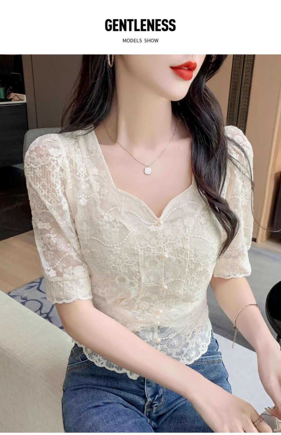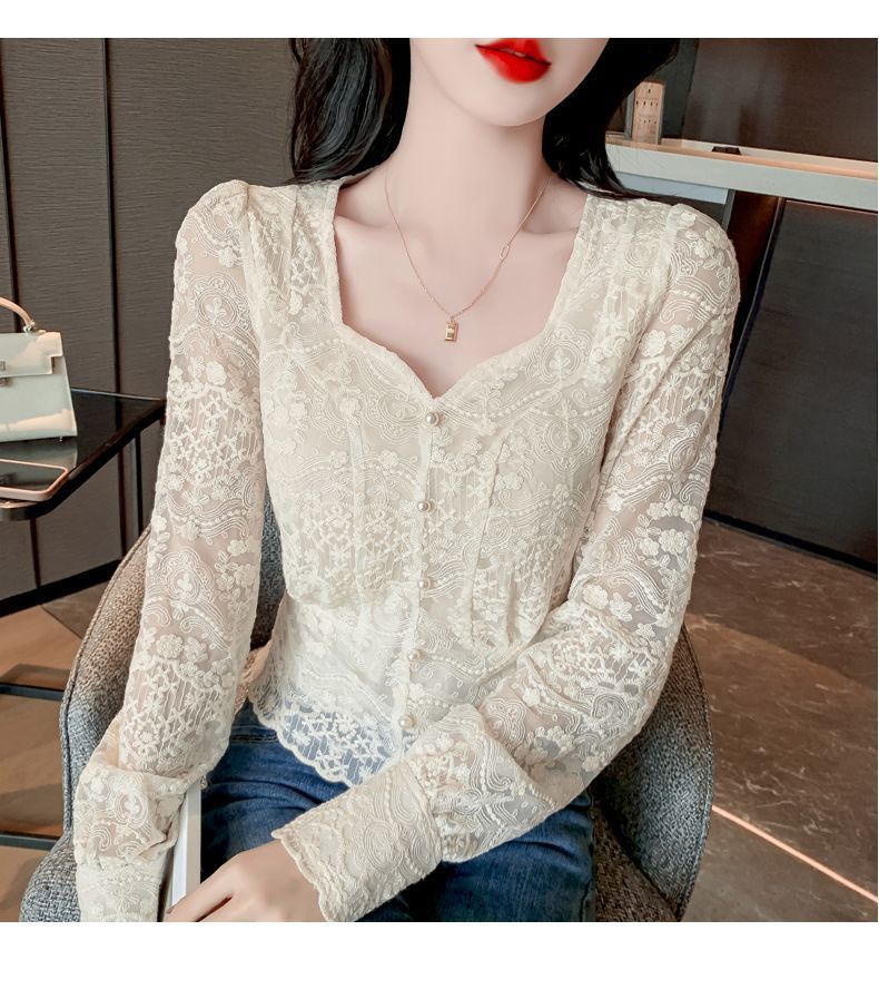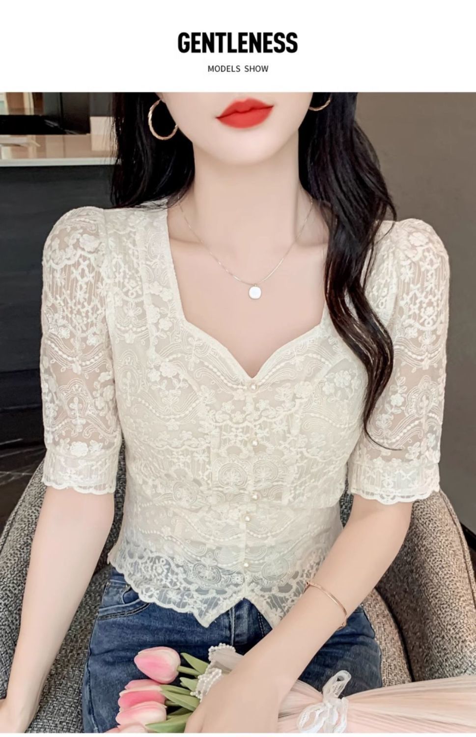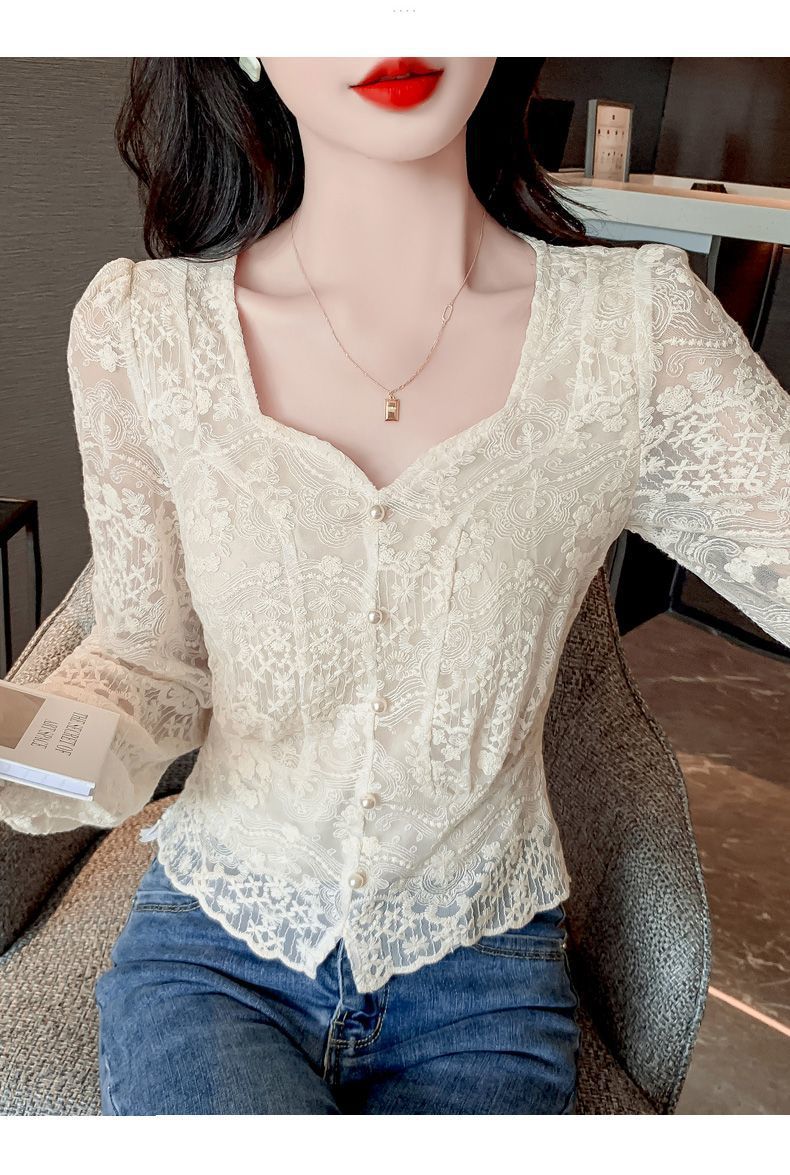 여성을위한 프렌치 스퀘어 넥 레이스 셔츠 여름 새로운 기질 반팔 셔츠 짧은 쉬폰 플러스 사이즈 여성상의스토어 가기