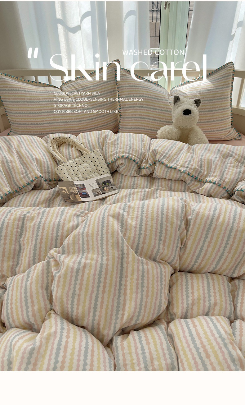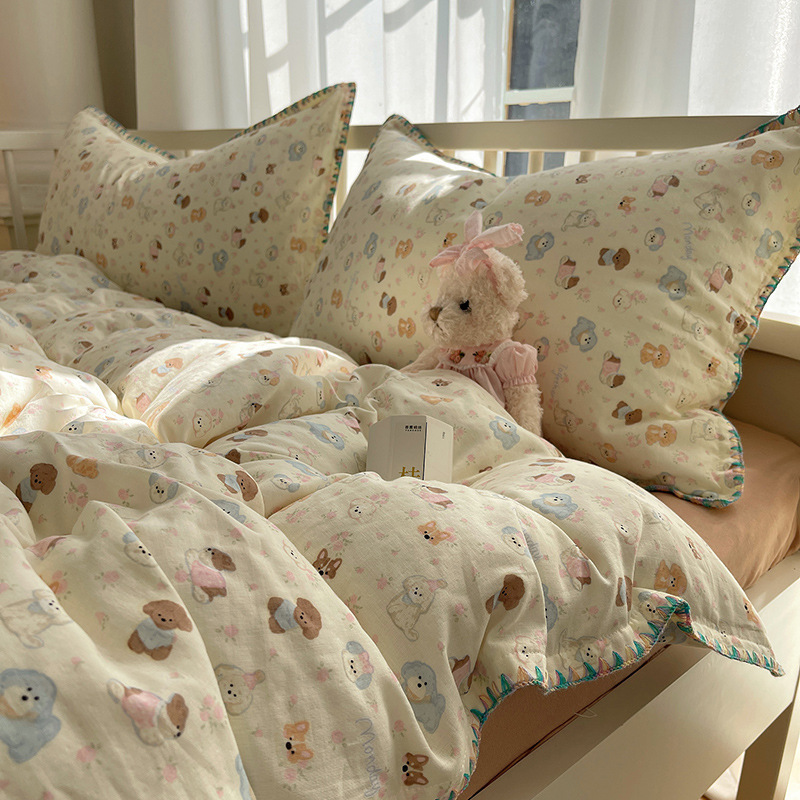 신장 면 ~ 클래스 A 모성 및 유아면 더블 레이어 원사 4 피스 세트 100 면 침대 시트 퀼트 커버 3 피스 세트 어린이 침구스토어 가기