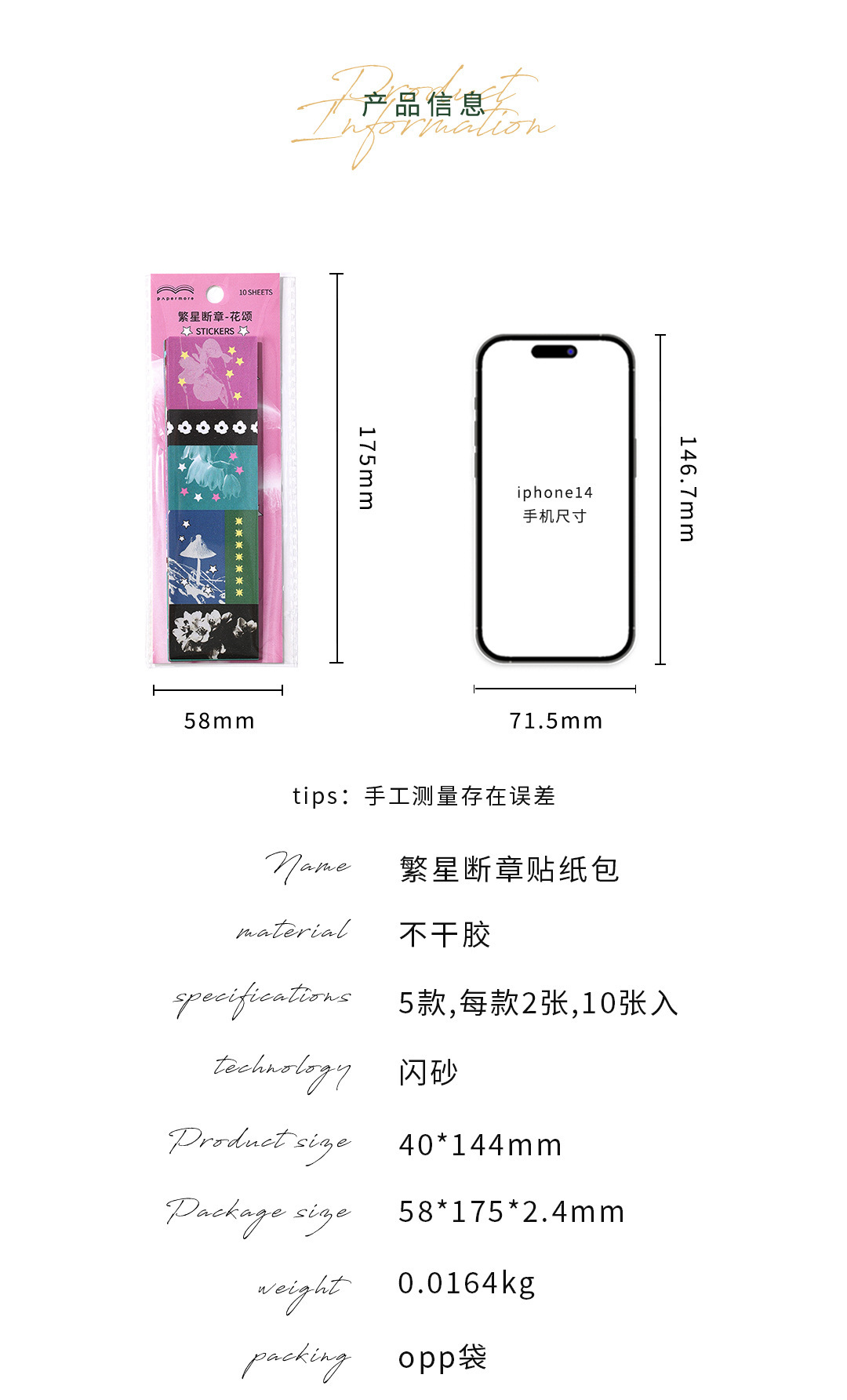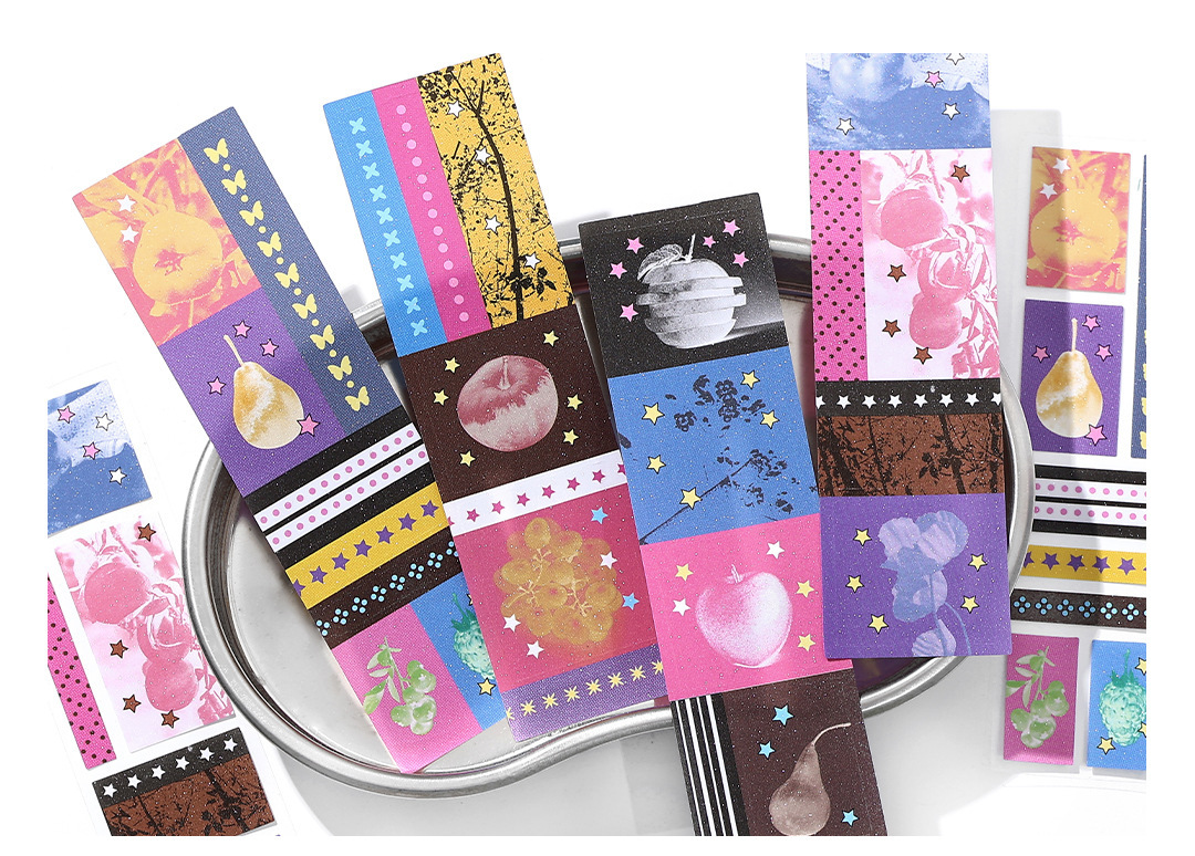 PaperMore 자체 접착식 반짝이는 모래 스티커 팩 별 착각 크리 에이 티브 핸드북 장식 재료 절단 필름 스티커스토어 가기