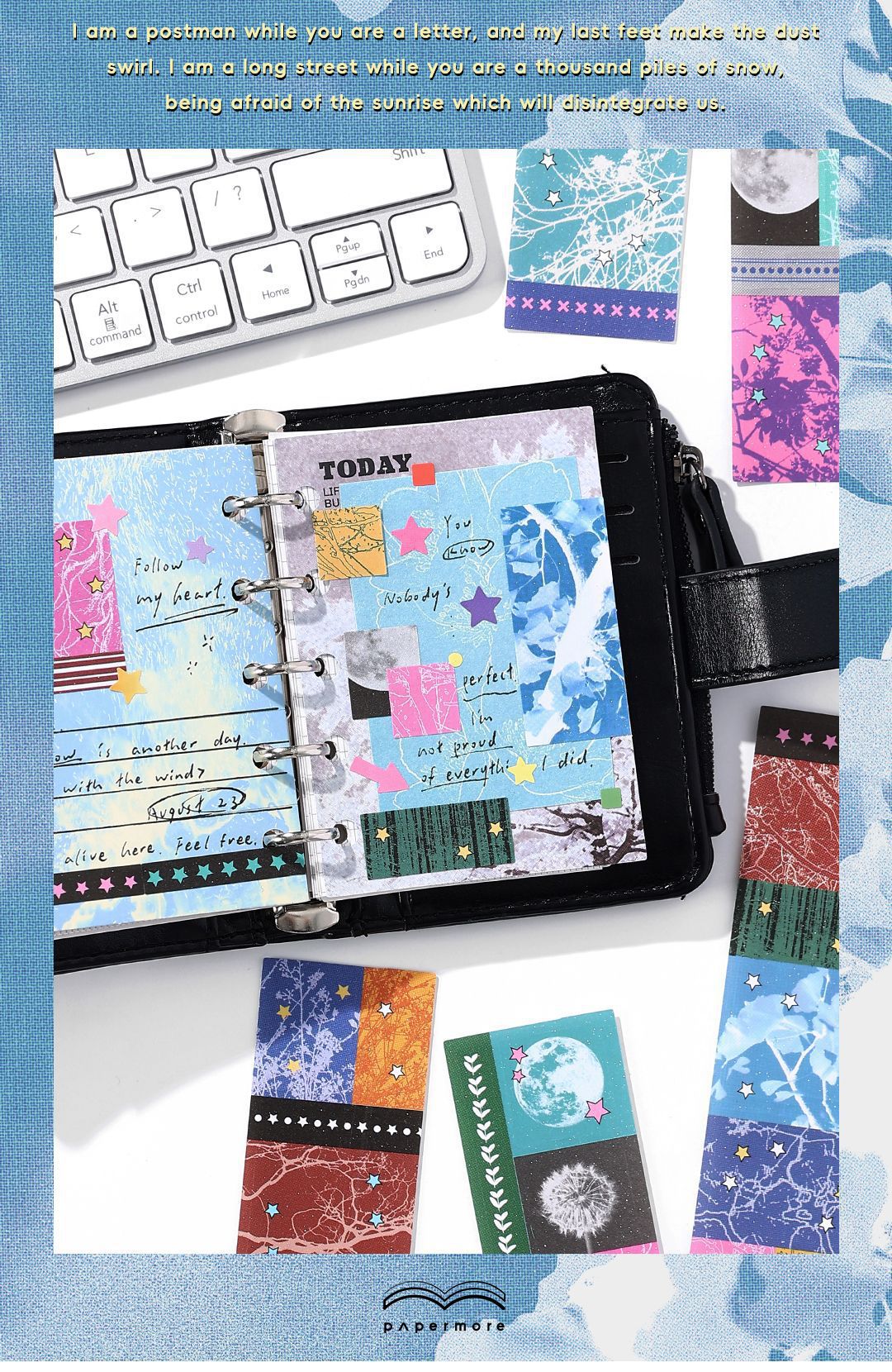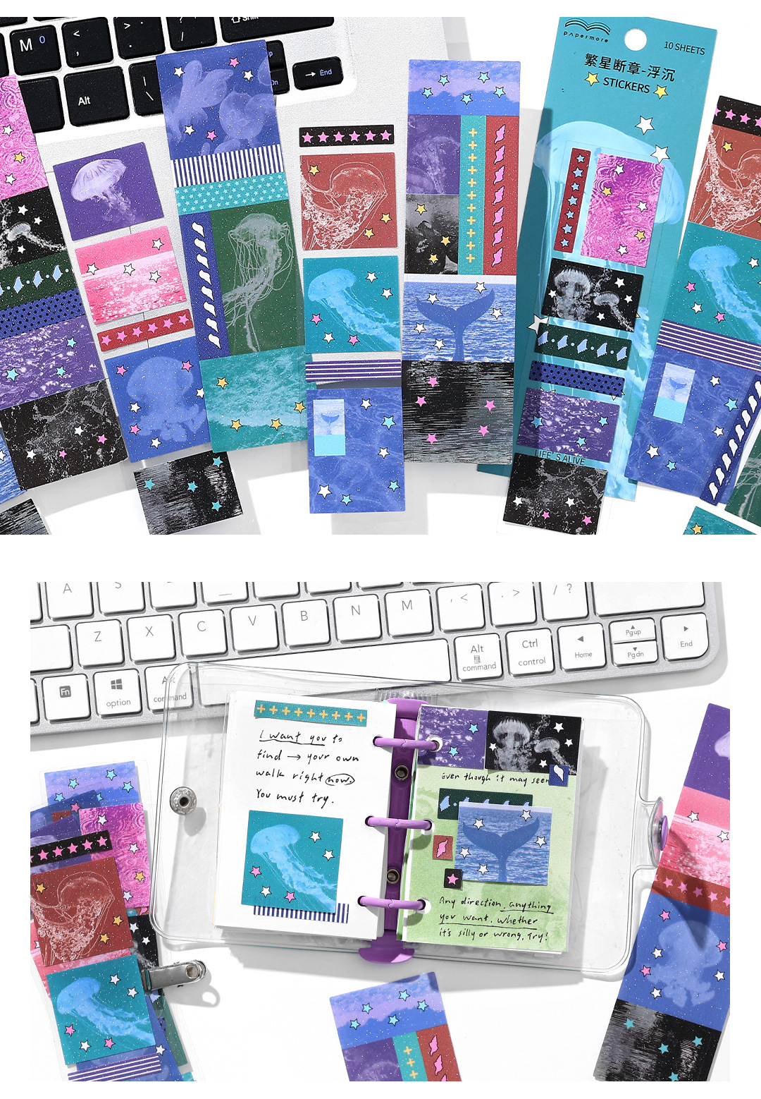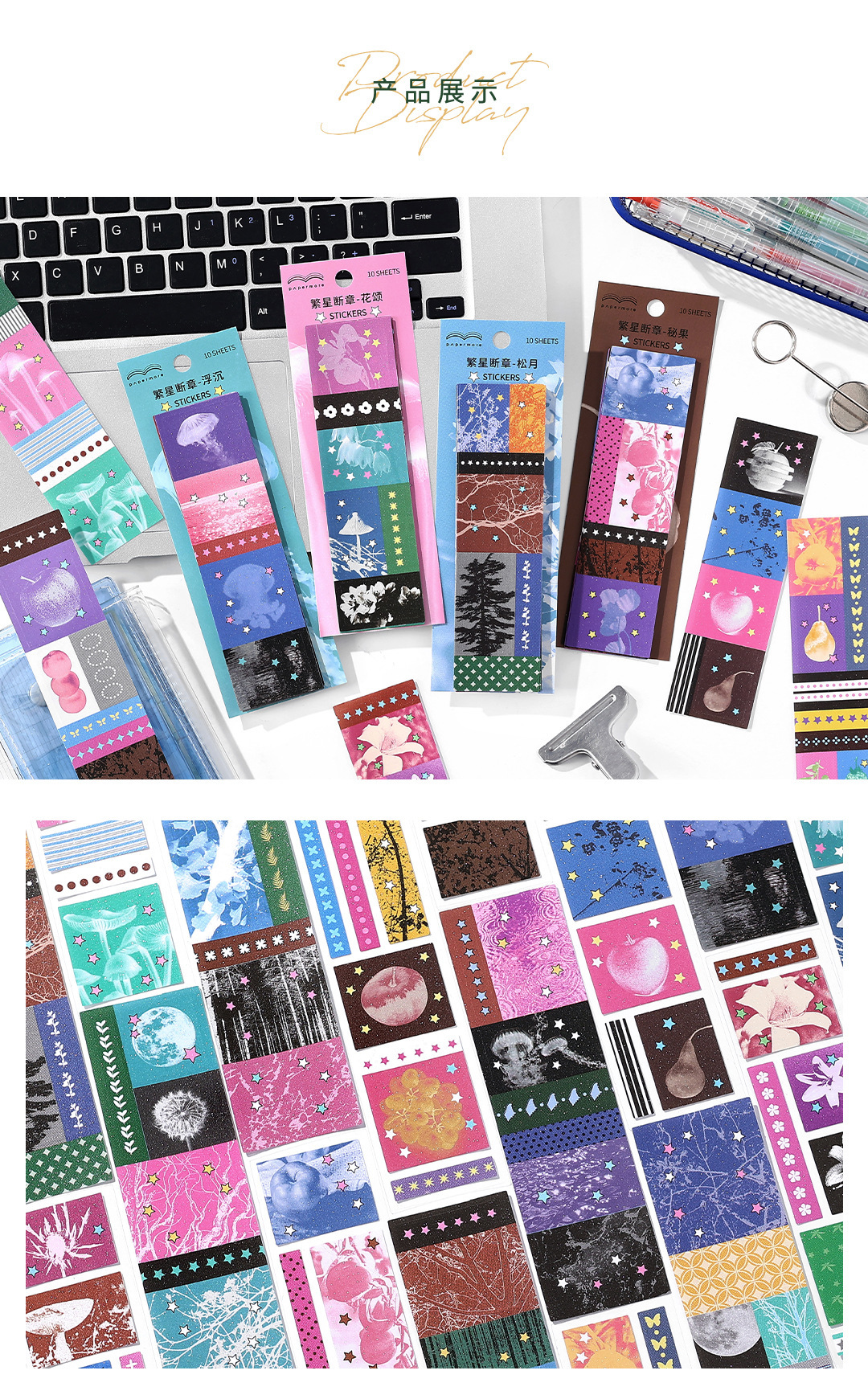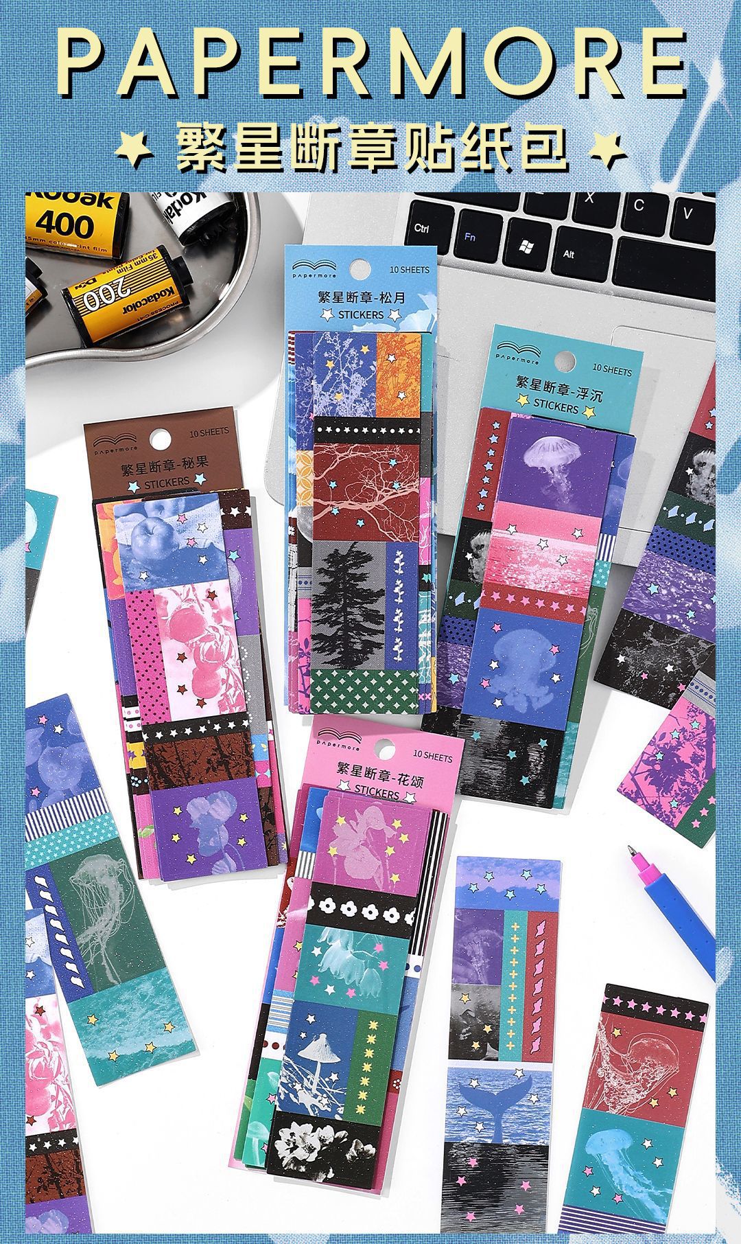 PaperMore 자체 접착식 반짝이는 모래 스티커 팩 별 착각 크리 에이 티브 핸드북 장식 재료 절단 필름 스티커
