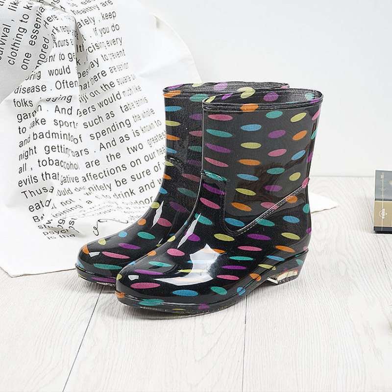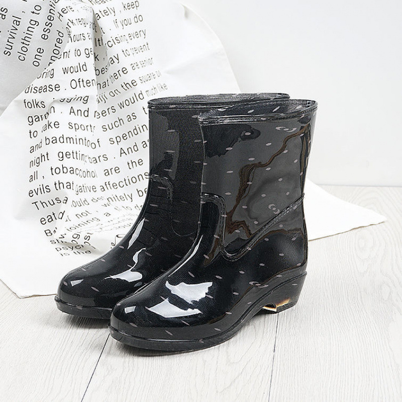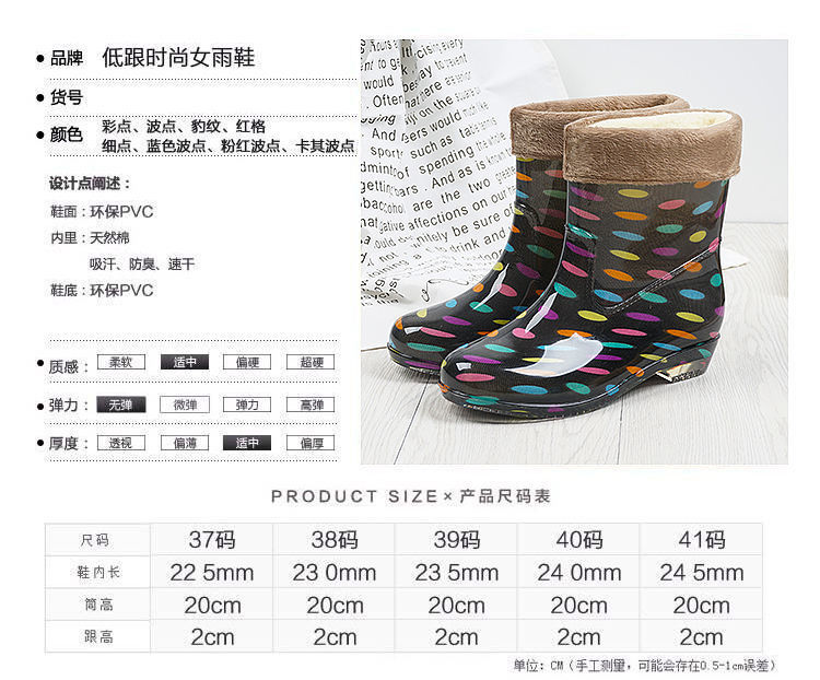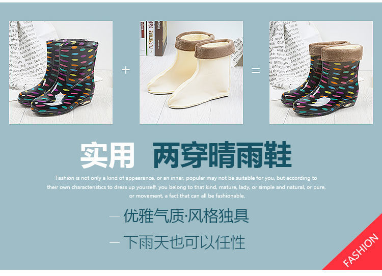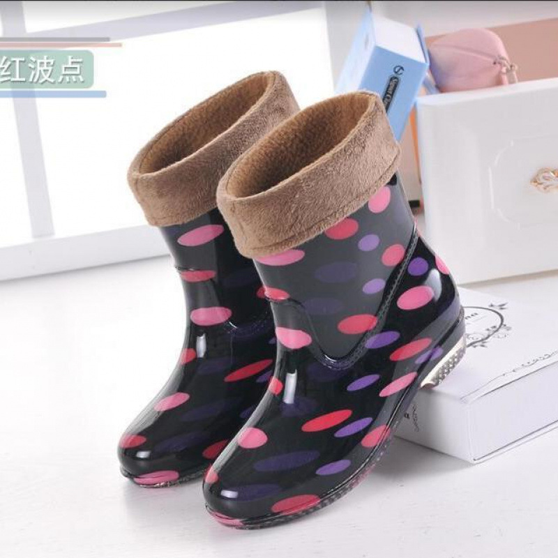 여성용 세련된 벨벳 장화, 성인 한국식 따뜻한 미끄럼 방지 워터 슈즈, 중간 튜브 탈착식 장화, 가을 겨울 방수 고무 신발스토어 가기