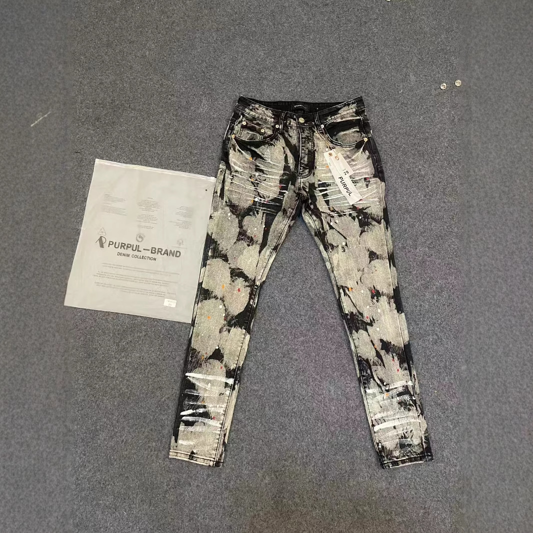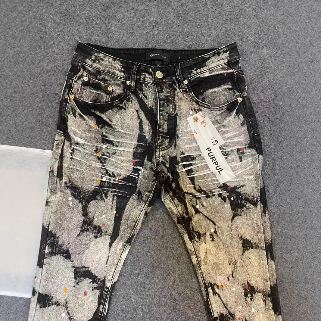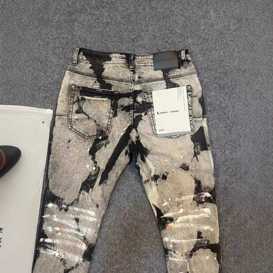 하이 스트리트 청바지 블랙 슬림 국경 대외 무역 스플래시 잉크 PU 브랜드 새로운 탄성 작은 스트레이트 남성 의류스토어 가기