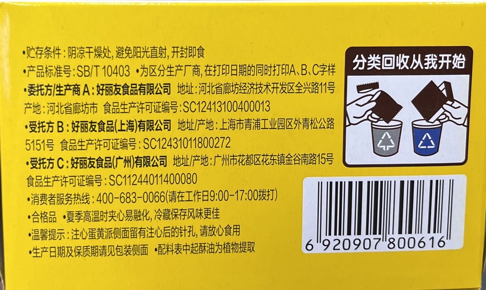 오리온 계란 노른자 파이 2개입 서양식 페이스트리 아침 페이스트리 샌드위치 케이크 기념품 스낵 행복한 일 선물 상자스토어 가기