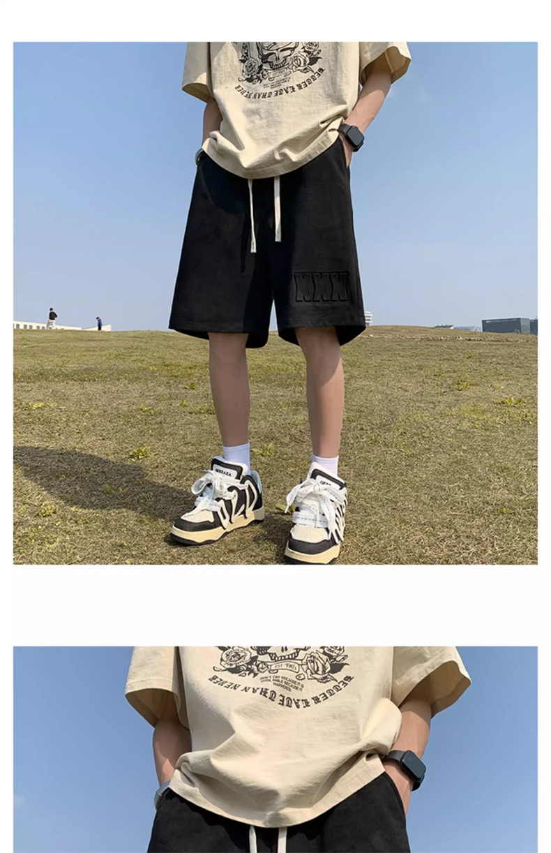 스웨이드 스탬프 헤비급 반바지 남성 여름 2025 새로운 루즈 스포츠 바지 트렌디 브랜드 아메리칸 5부 바지