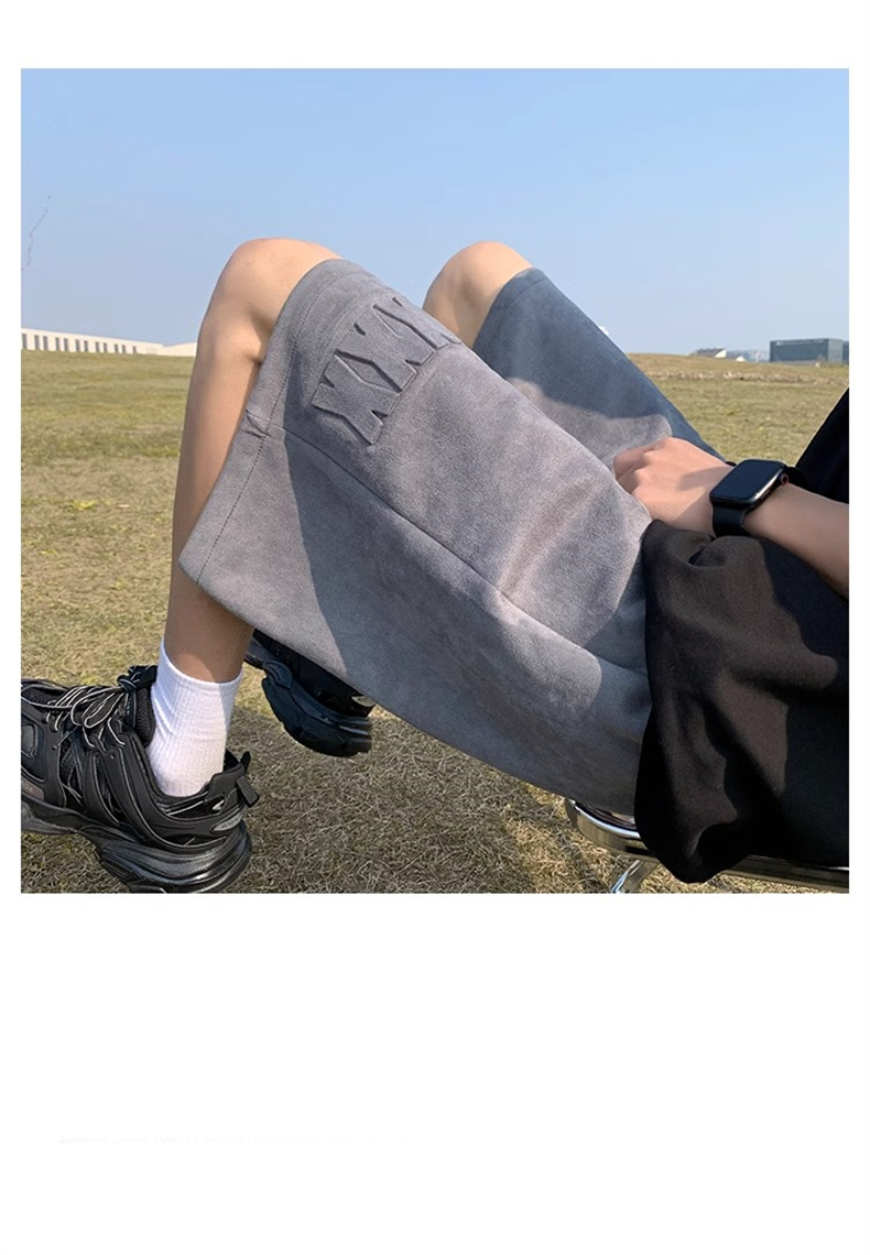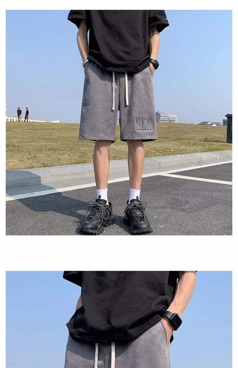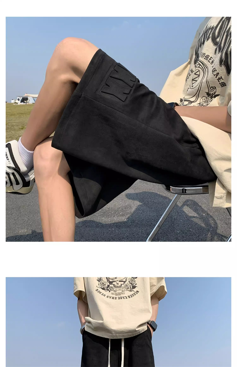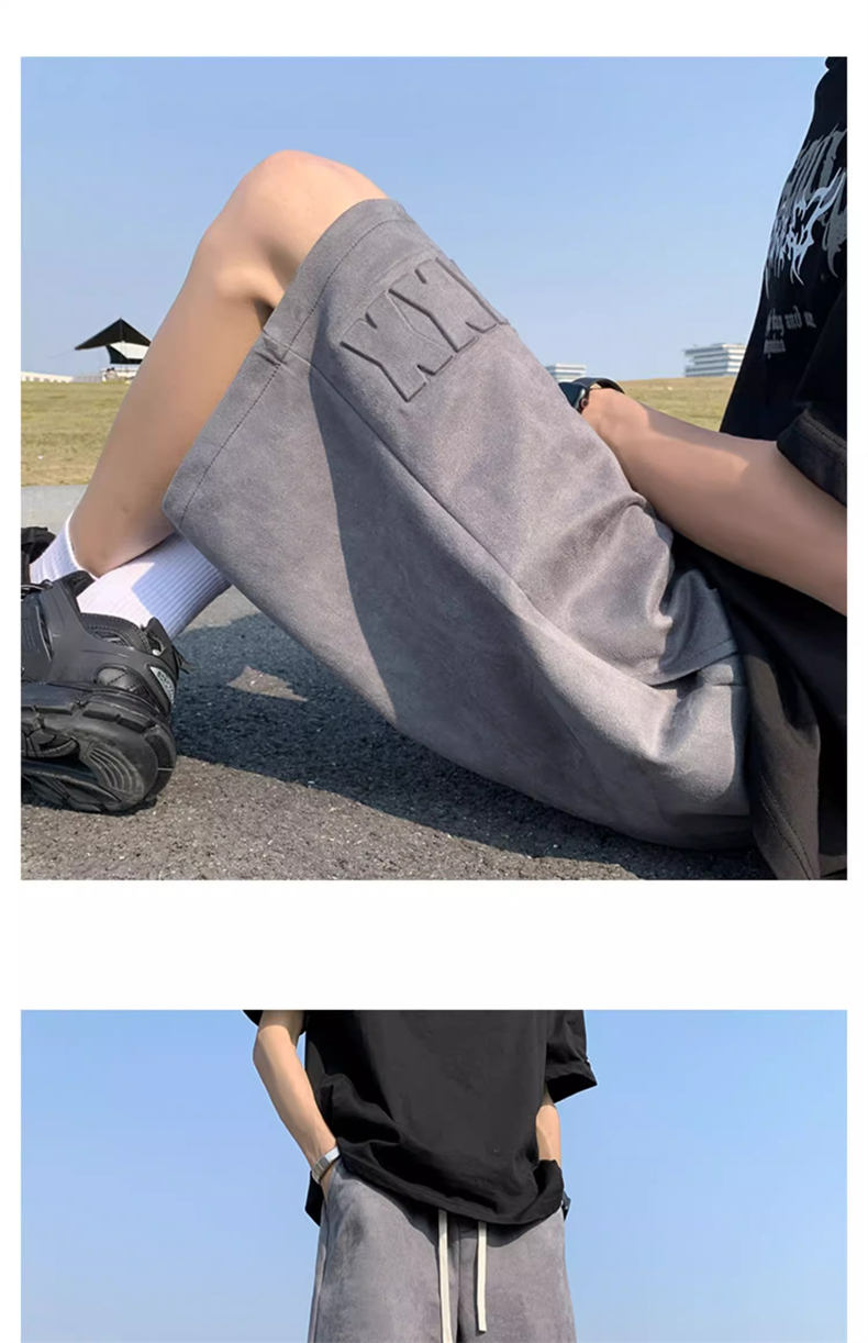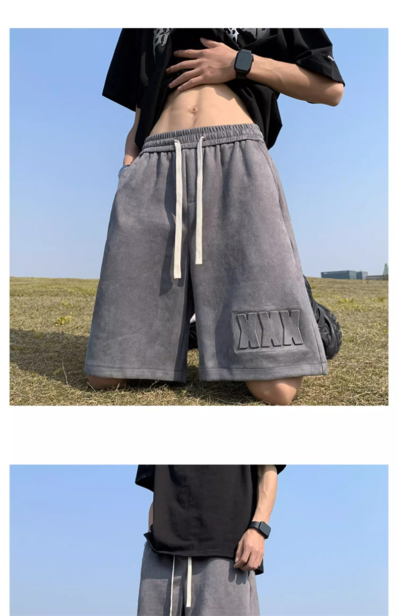 스웨이드 스탬프 헤비급 반바지 남성 여름 2025 새로운 루즈 스포츠 바지 트렌디 브랜드 아메리칸 5부 바지스토어 가기