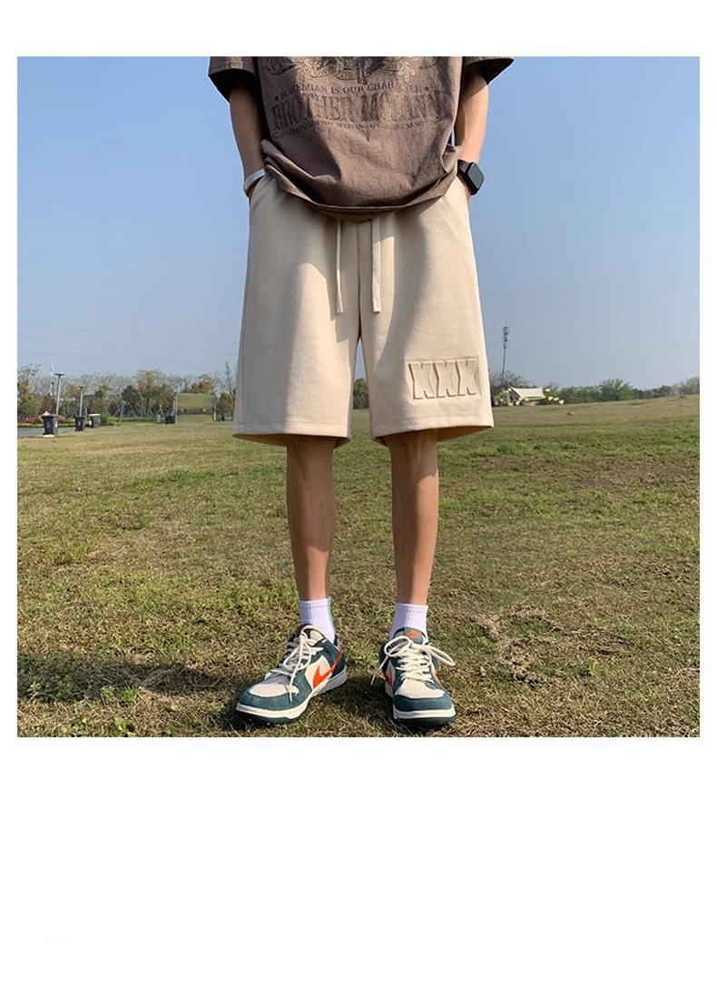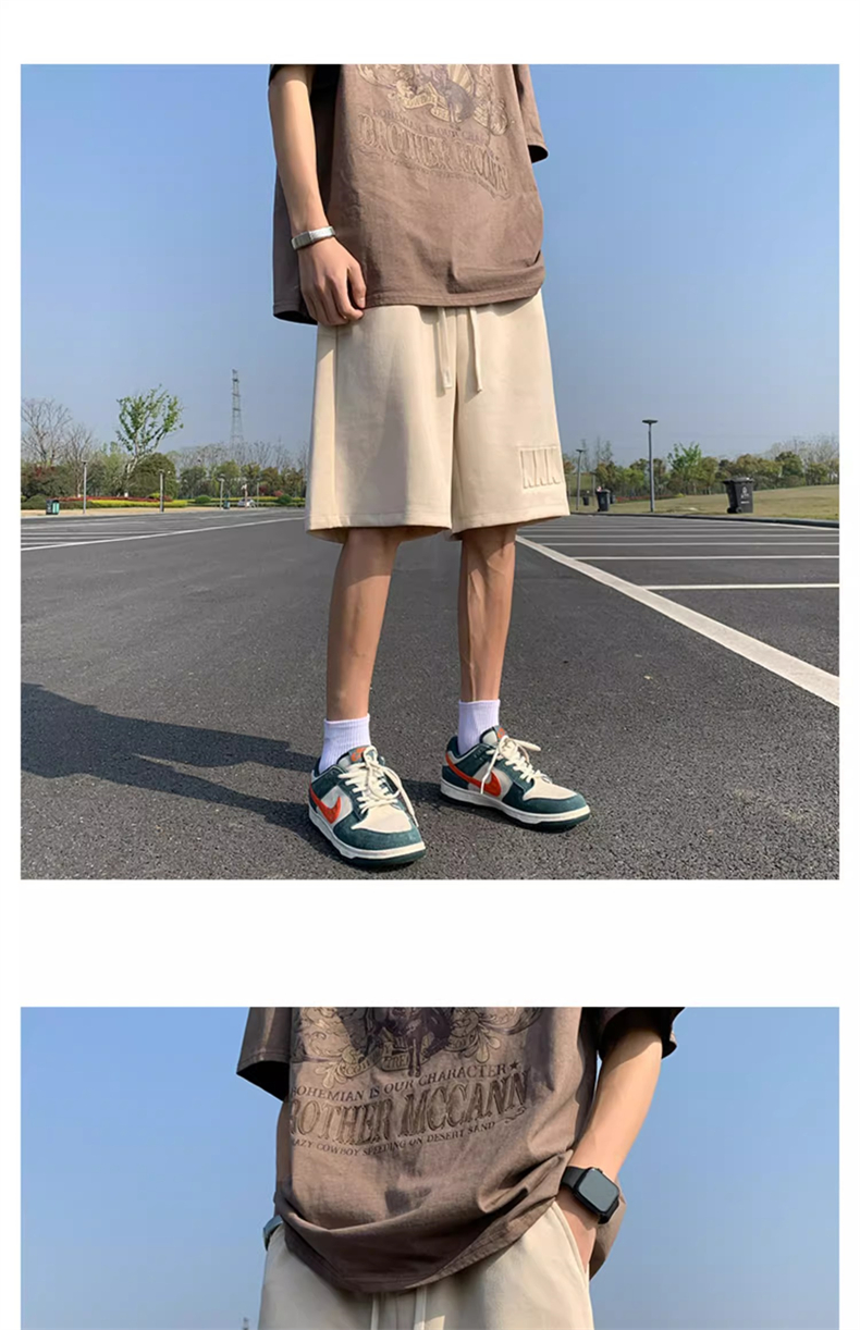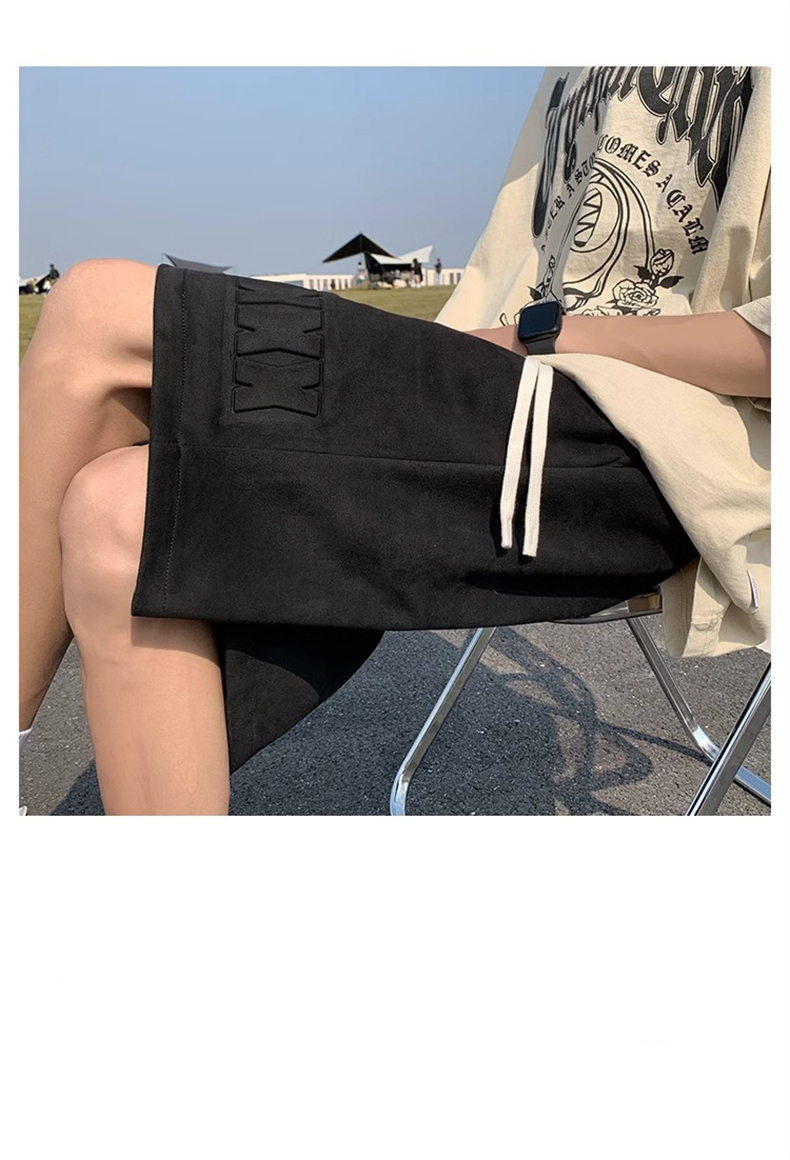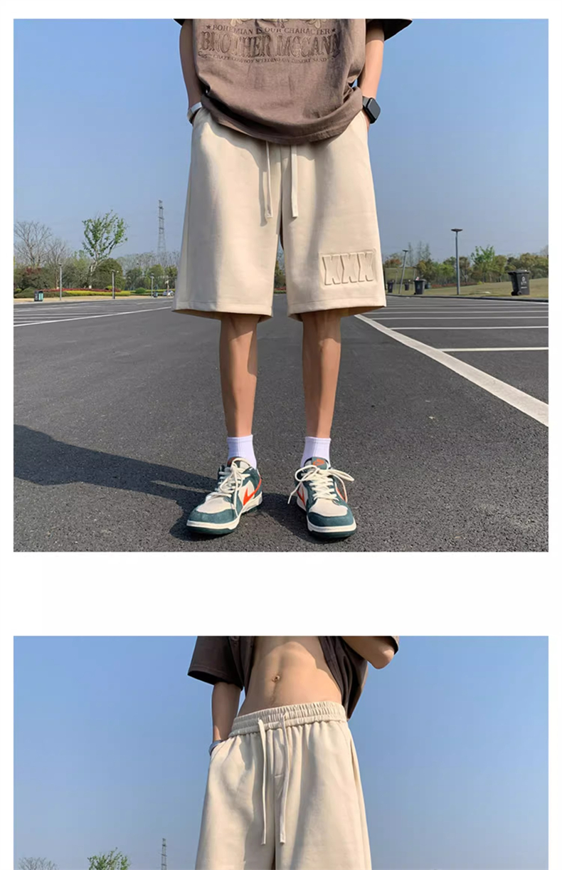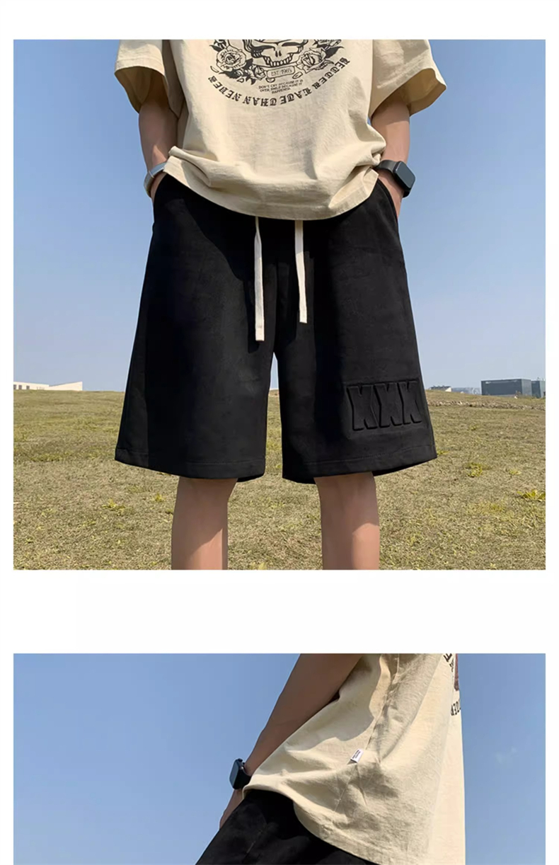 스웨이드 스탬프 헤비급 반바지 남성 여름 2025 새로운 루즈 스포츠 바지 트렌디 브랜드 아메리칸 5부 바지스토어 가기