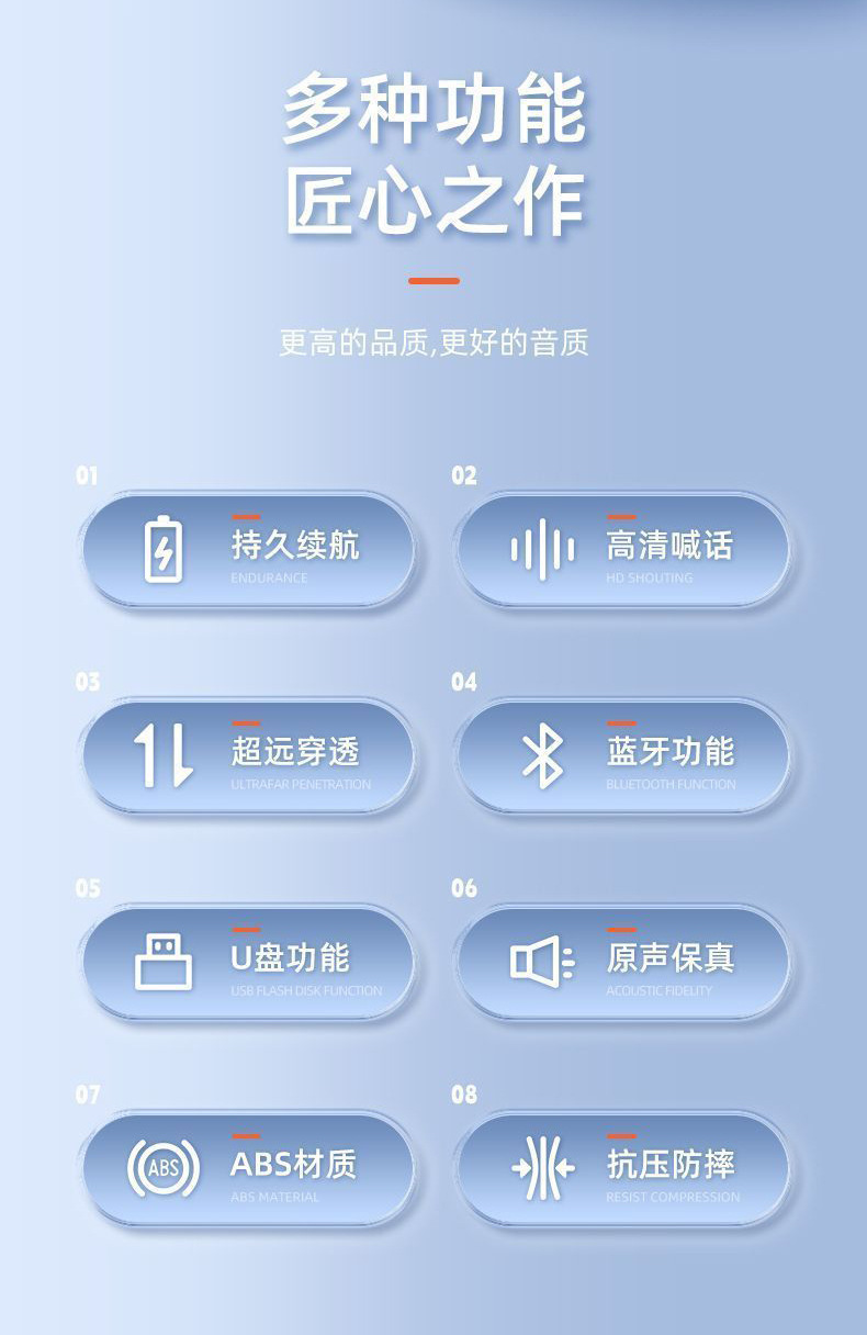 • 4개의 배터리로 모든 기능 [블루투스/카드 U 디스크/350초 녹음]