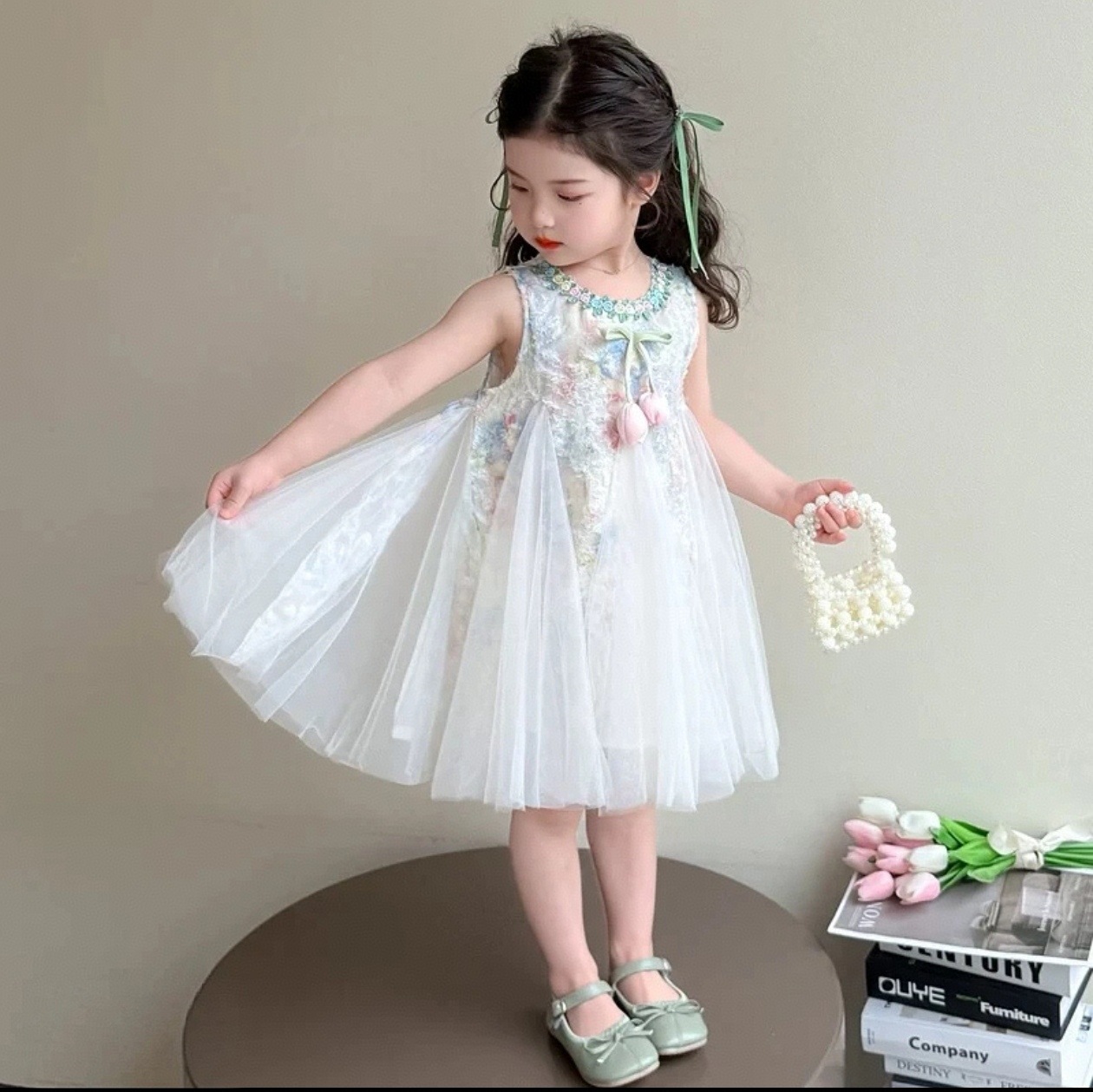 모자 보내기 민소매 소녀 여름 폭발 원피스 2025 새로운 어린이 서양식 스커트 달콤한 여름 조끼스토어 가기