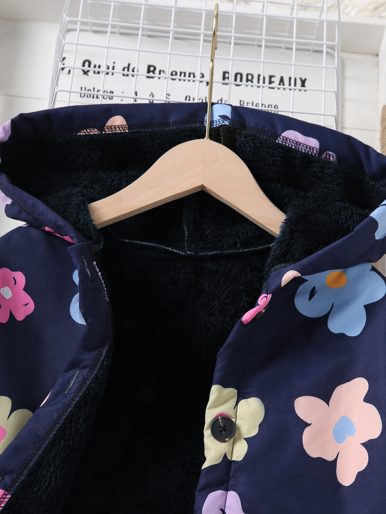 가을, 겨울 벨벳 따뜻하고 방한 소녀 싱글 브레스트 꽃 프린트 후드 자켓 패션 캐주얼 중간 길이 자켓스토어 가기
