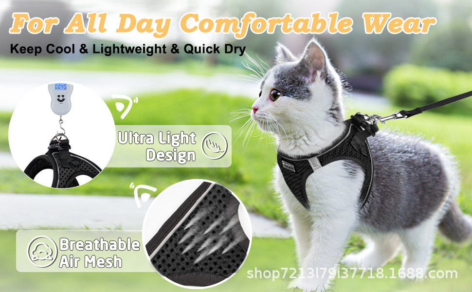 애완동물 용품 고양이 통기성 하네스 반사 탈출 방지 고양이 산책용 로프 고양이 견인 로프 소형견 하네스스토어 가기