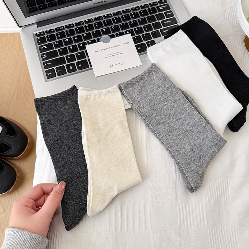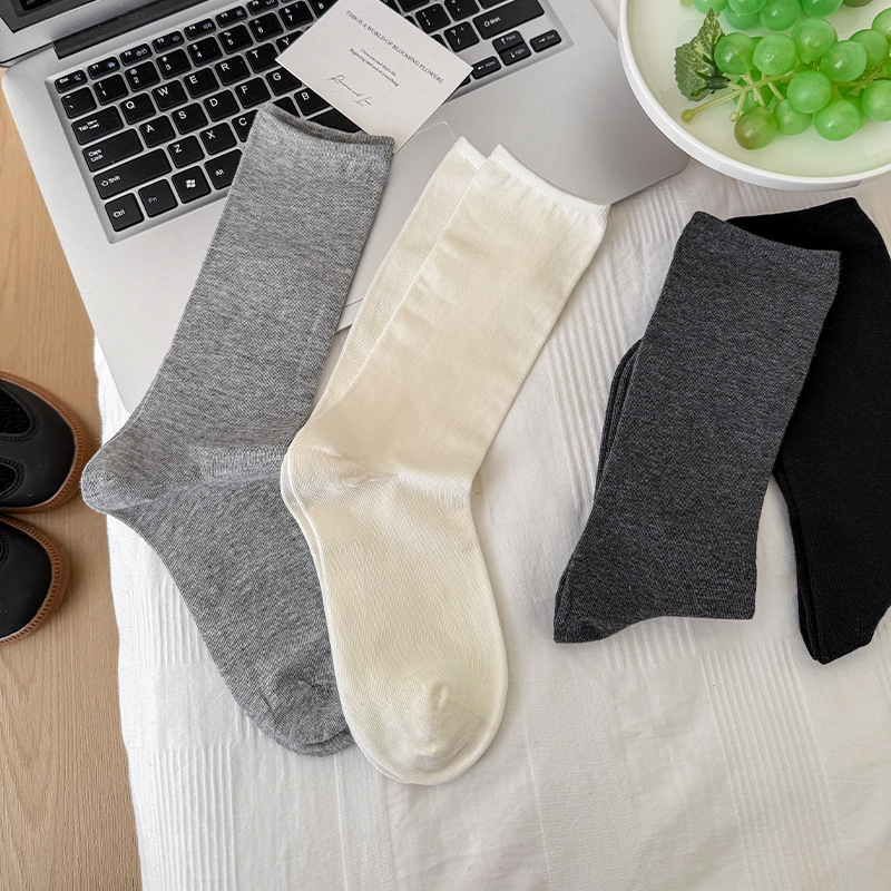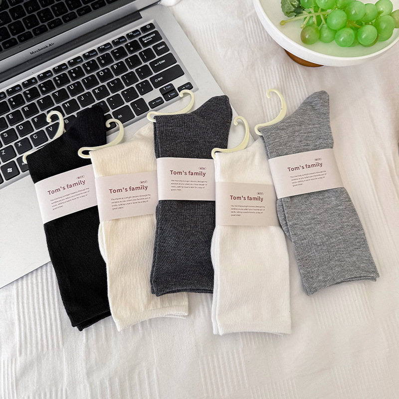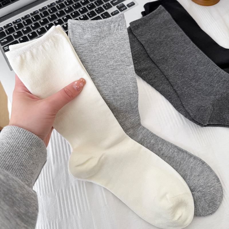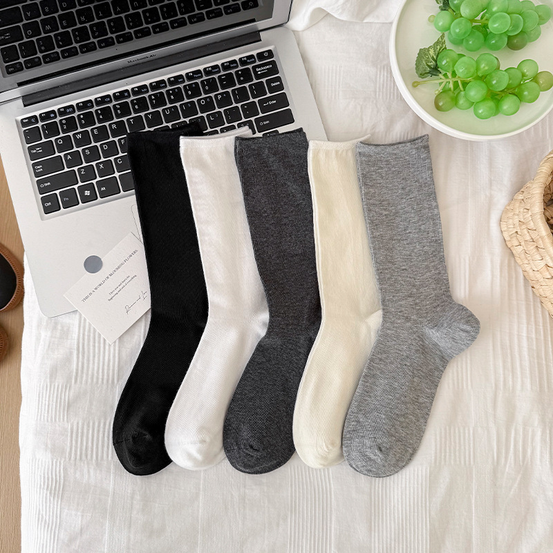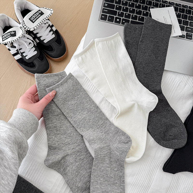 2025 년 봄과 여름 모든 경기 뼈없는 달 양말 캐주얼 걸스 작은 긴 튜브 스택 양말 Ins 솔리드 컬러 블랙과 화이트 그레이 시리즈