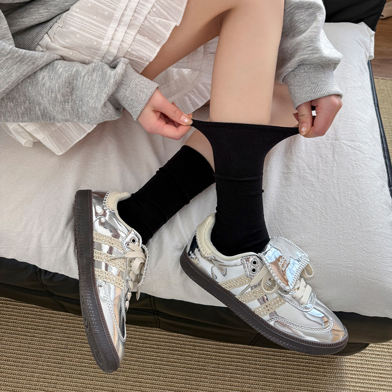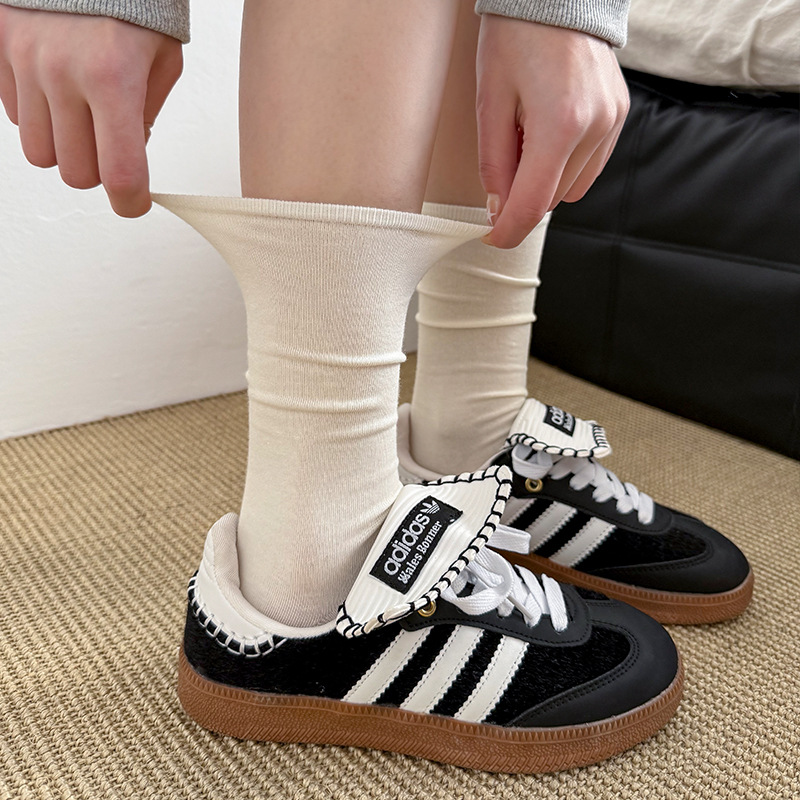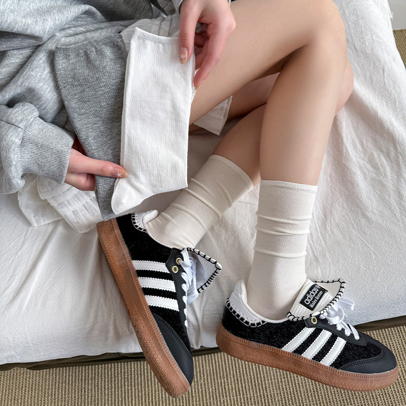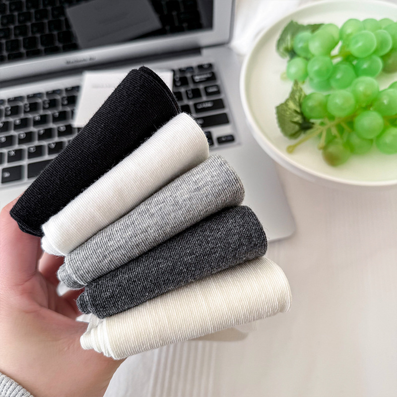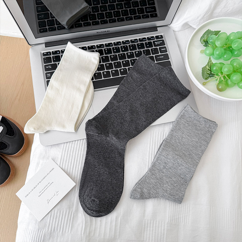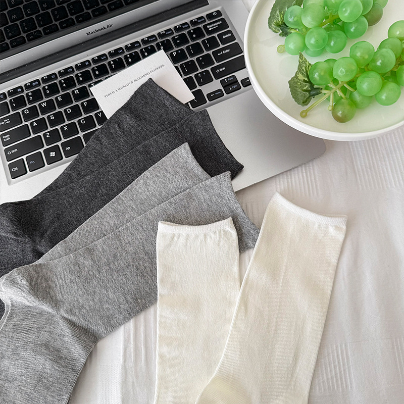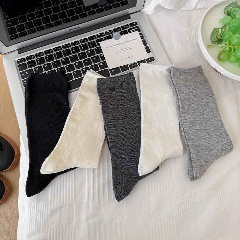 2025 년 봄과 여름 모든 경기 뼈없는 달 양말 캐주얼 걸스 작은 긴 튜브 스택 양말 Ins 솔리드 컬러 블랙과 화이트 그레이 시리즈