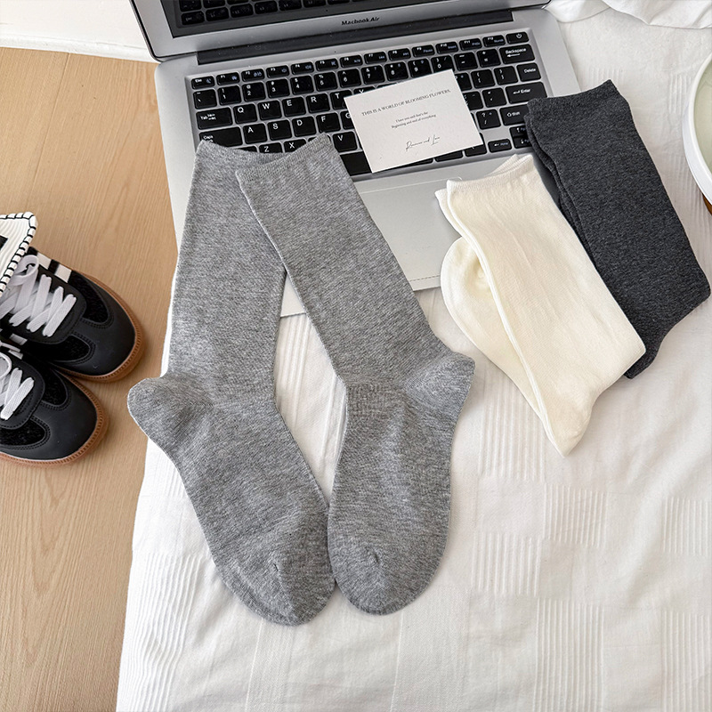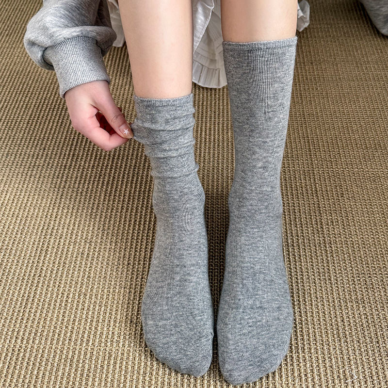 2025 년 봄과 여름 모든 경기 뼈없는 달 양말 캐주얼 걸스 작은 긴 튜브 스택 양말 Ins 솔리드 컬러 블랙과 화이트 그레이 시리즈스토어 가기