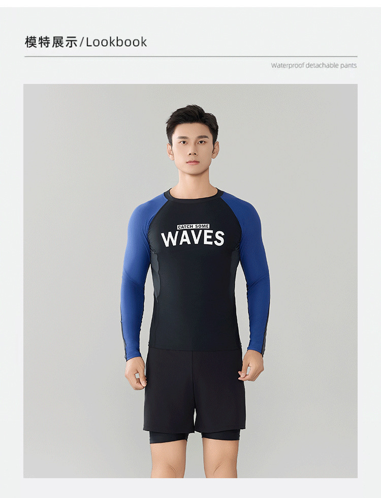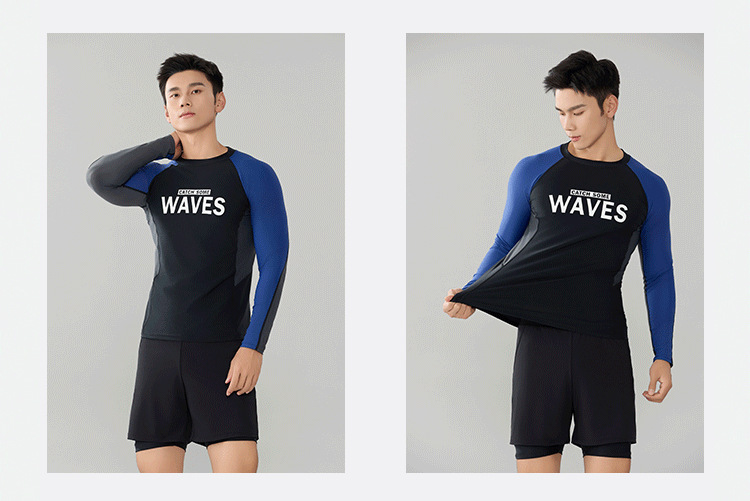 Trisass 남성용 스플릿 수영복, 당황스러운 긴팔 자외선 차단 스포츠 복서 바지 L-7XL 플러스 사이즈