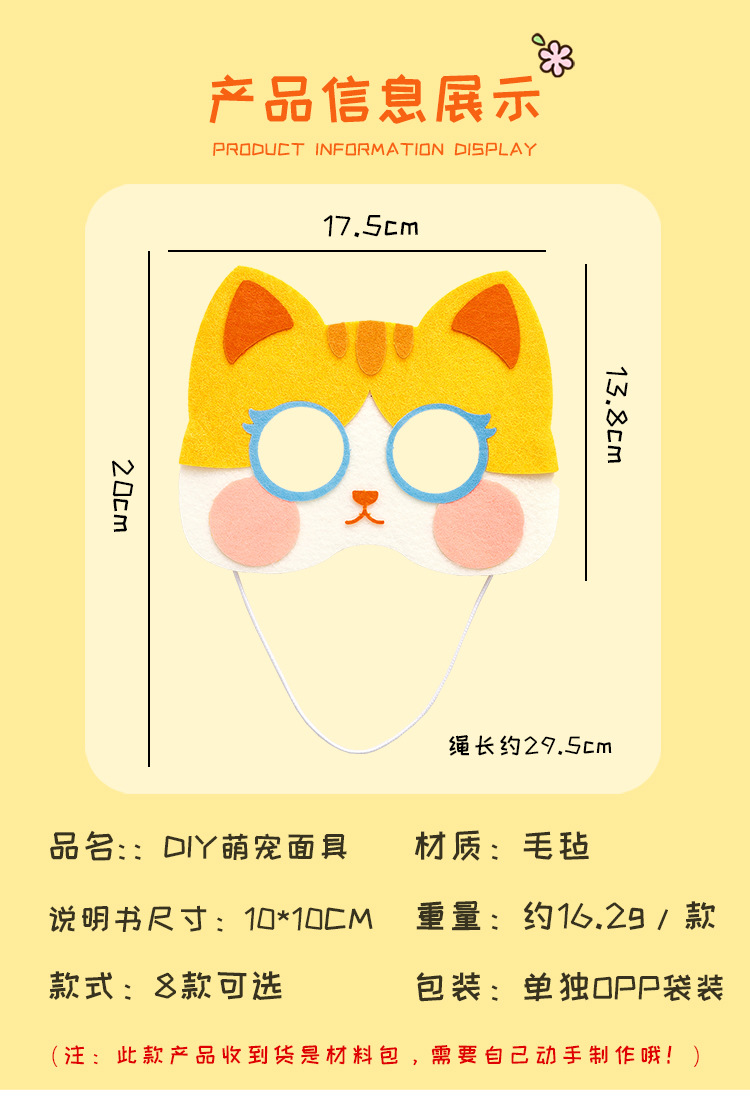 크리 에이 티브 어린이 귀여운 동물 마스크 유치원 활동 diy 재료 패키지 만화 수제 보상 작은 선물스토어 가기