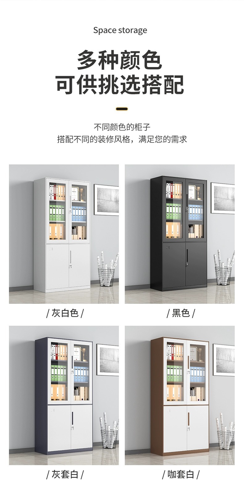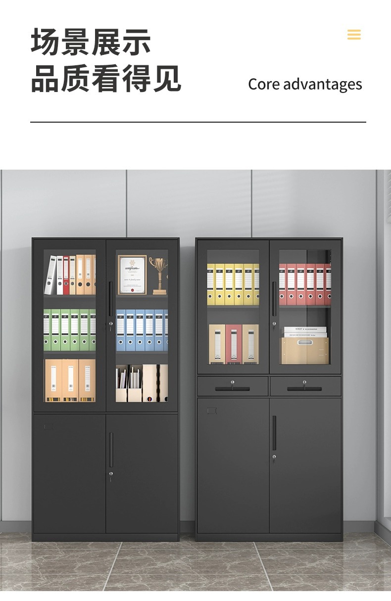 拆装文件柜套色财务凭证柜办公室档案资料带锁收纳柜铁皮矮柜厂家