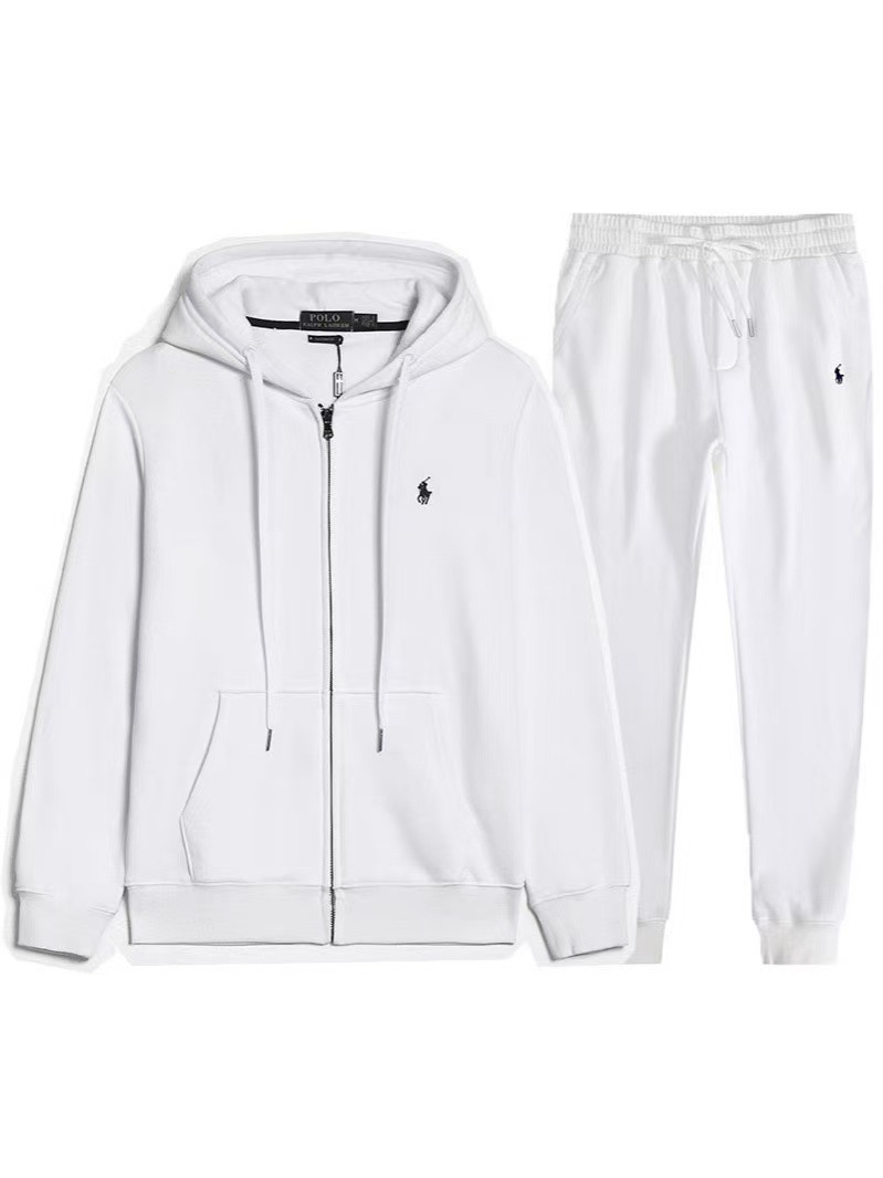 남성과 여성을위한 크로스 보더 봄, 가을 스타일 스몰 포니 자수 카디건 스웨트 셔츠 봄, 가을 스타일 정장 후드 자켓 + 바지