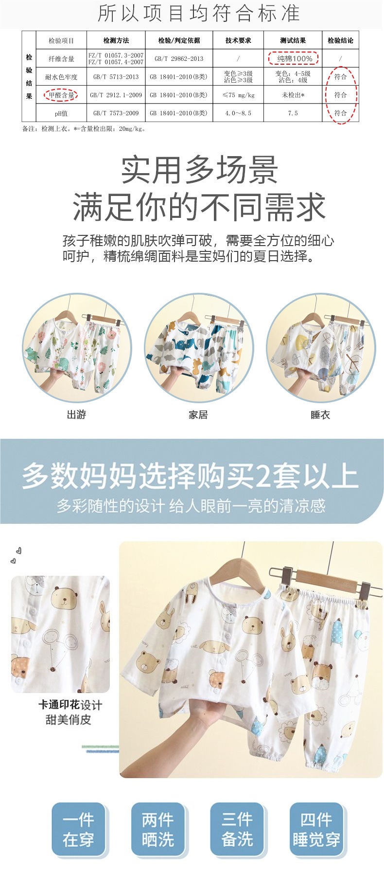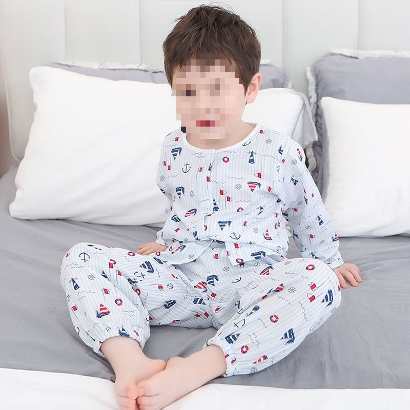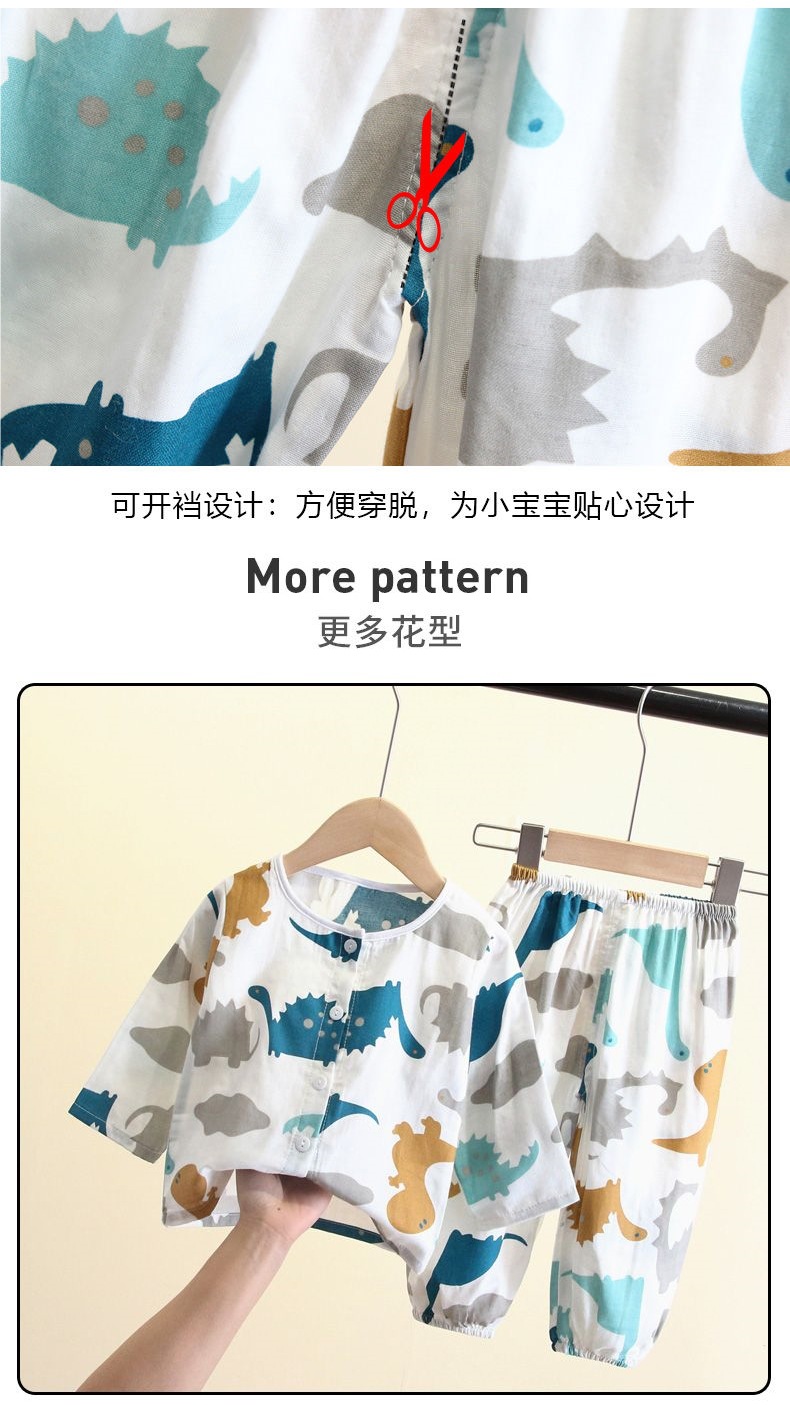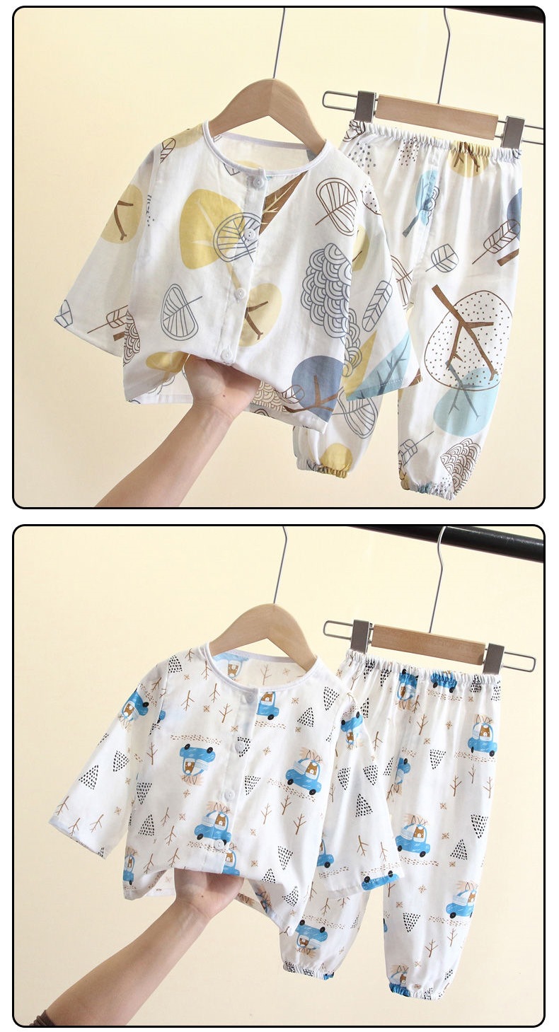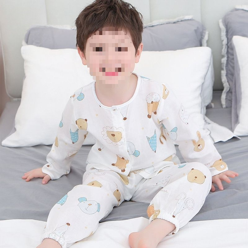 어린이 여름 거즈 잠옷 얇은 아기 에어컨 순수 코튼 소년 아기 소녀 긴팔 양복 가정 의류스토어 가기