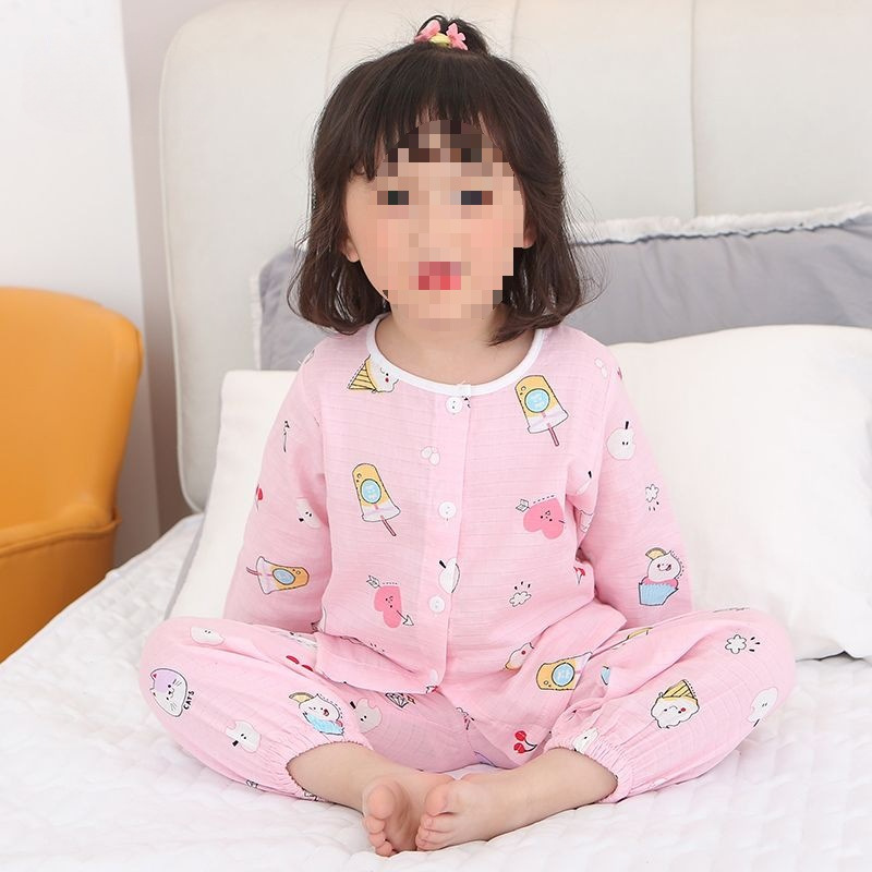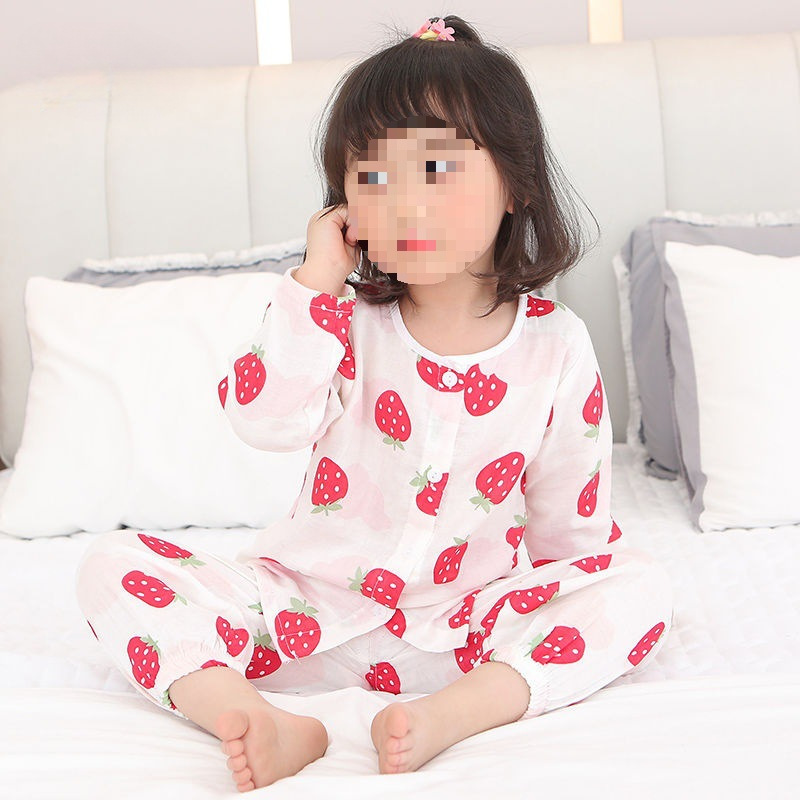 어린이 여름 거즈 잠옷 얇은 아기 에어컨 순수 코튼 소년 아기 소녀 긴팔 양복 가정 의류