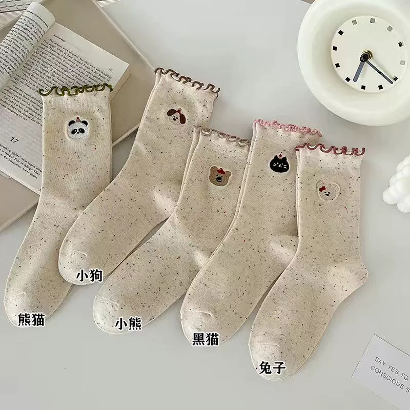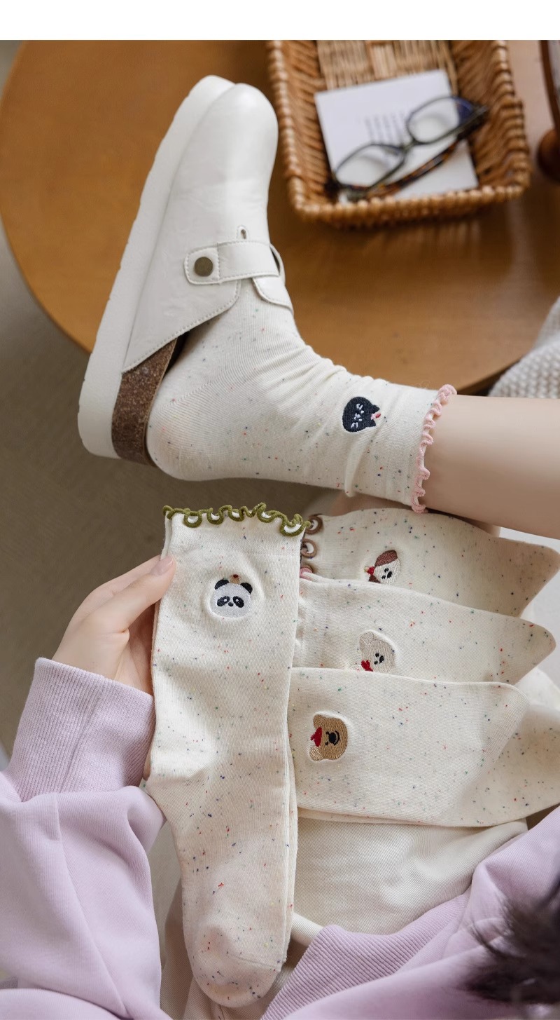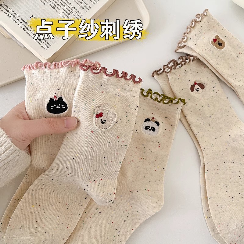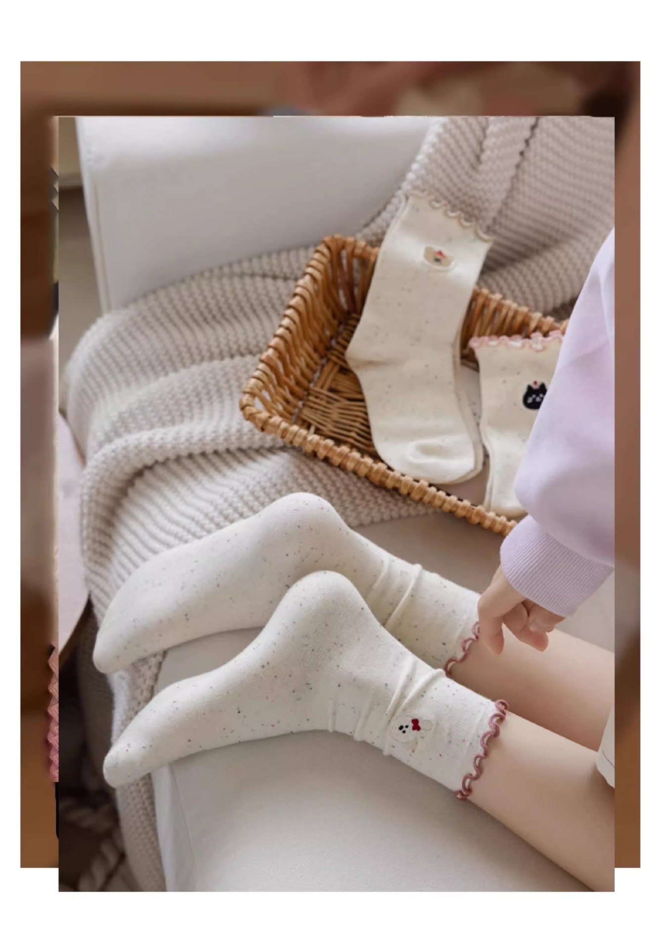 여성을위한 초가을 버섯 레이스 양말 봄, 가을 중간 튜브 양말 유행 레이스 긴 양말 귀여운 만화 동물원 아이디어 원사