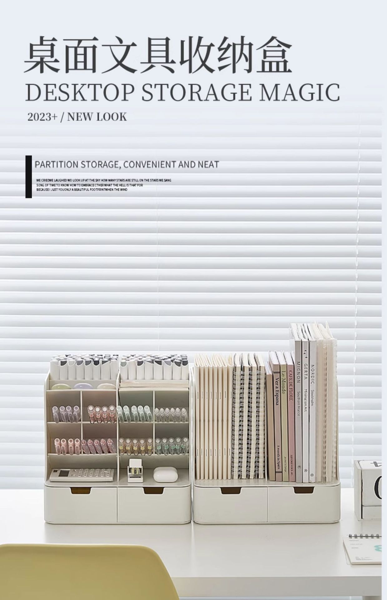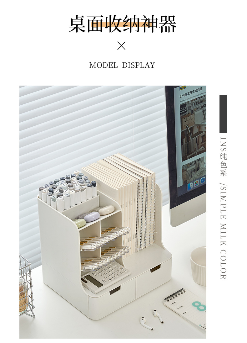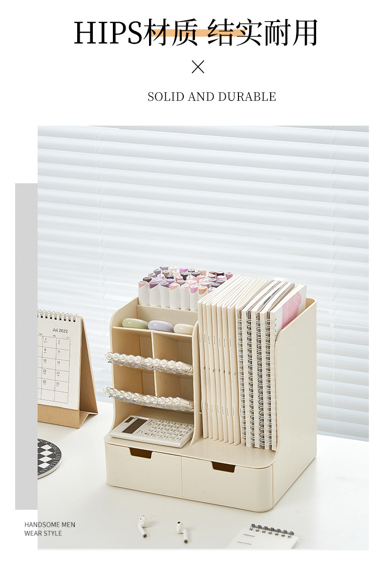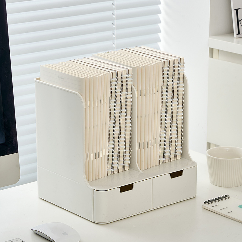 • 화이트 [펜홀더 4개 + 북엔드 1개 + 서랍 2개] 가로 26.4x가로 22x높이 25cm