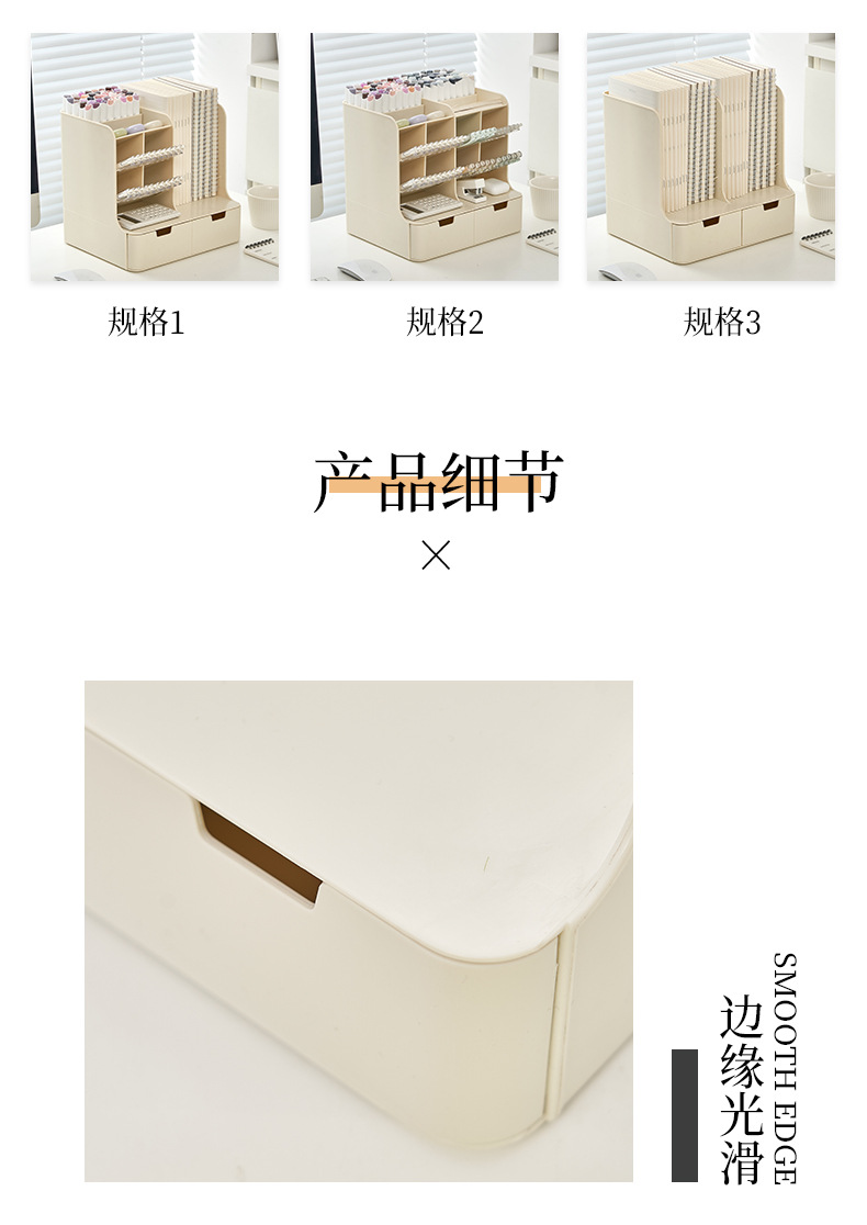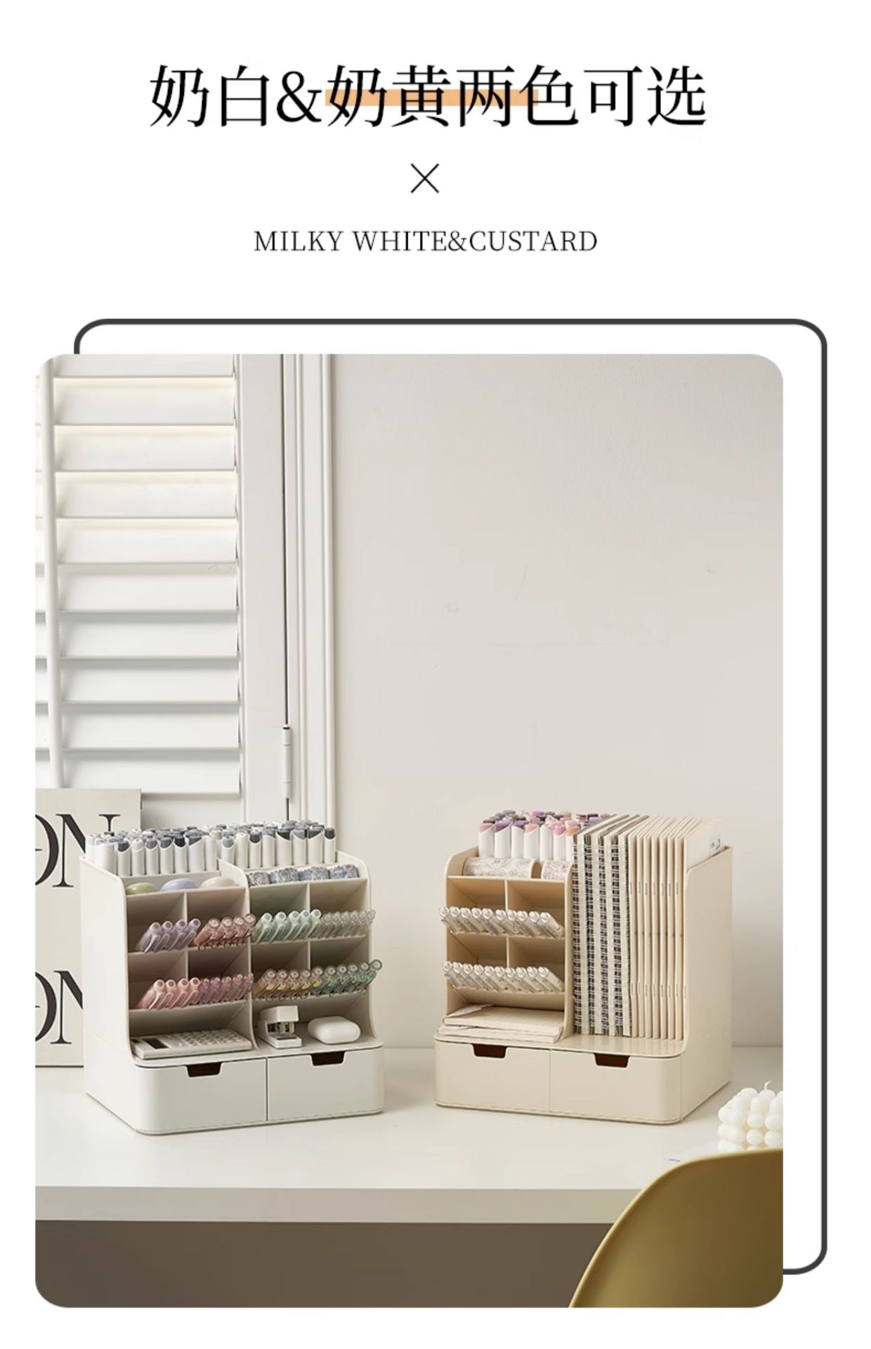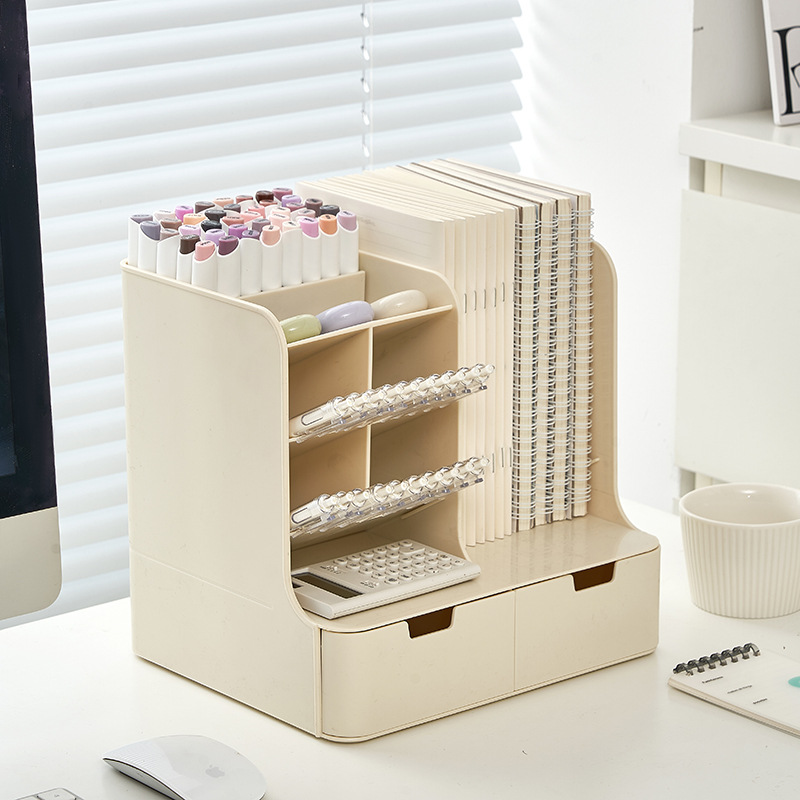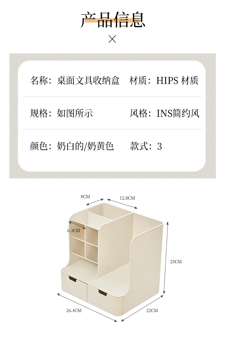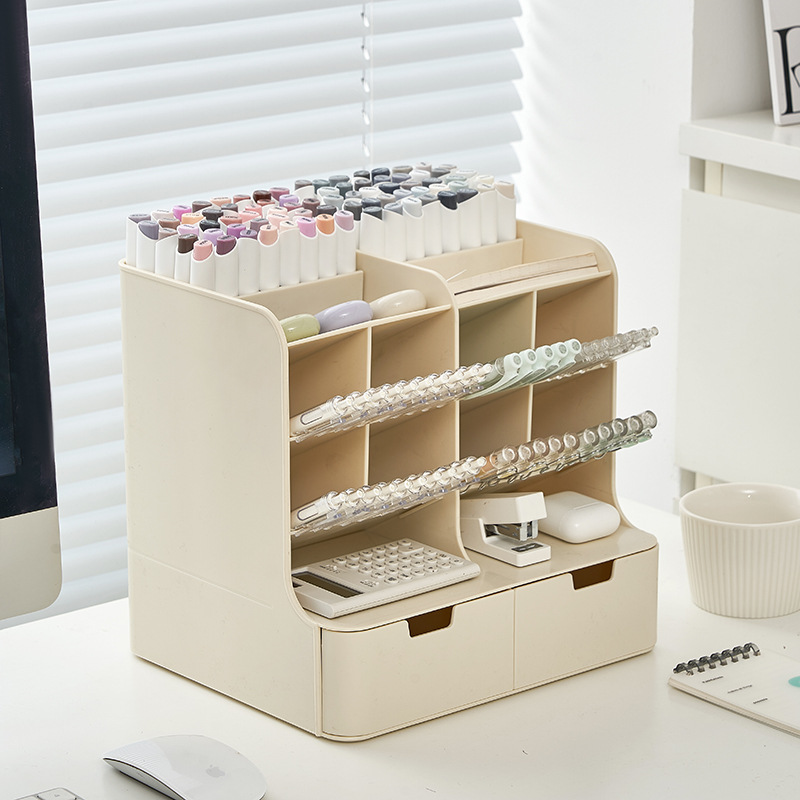 • 크리미옐로우 [펜홀더 8개 + 서랍 2개] 가로 26.4x가로 22x높이 25cm