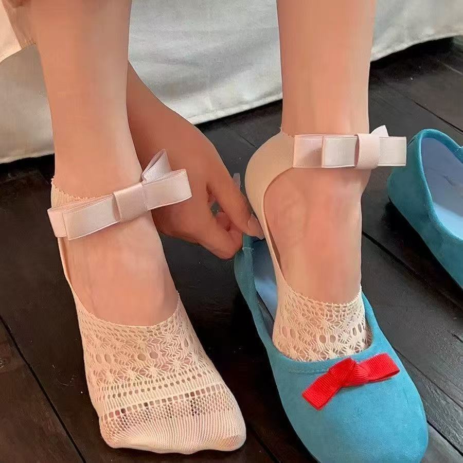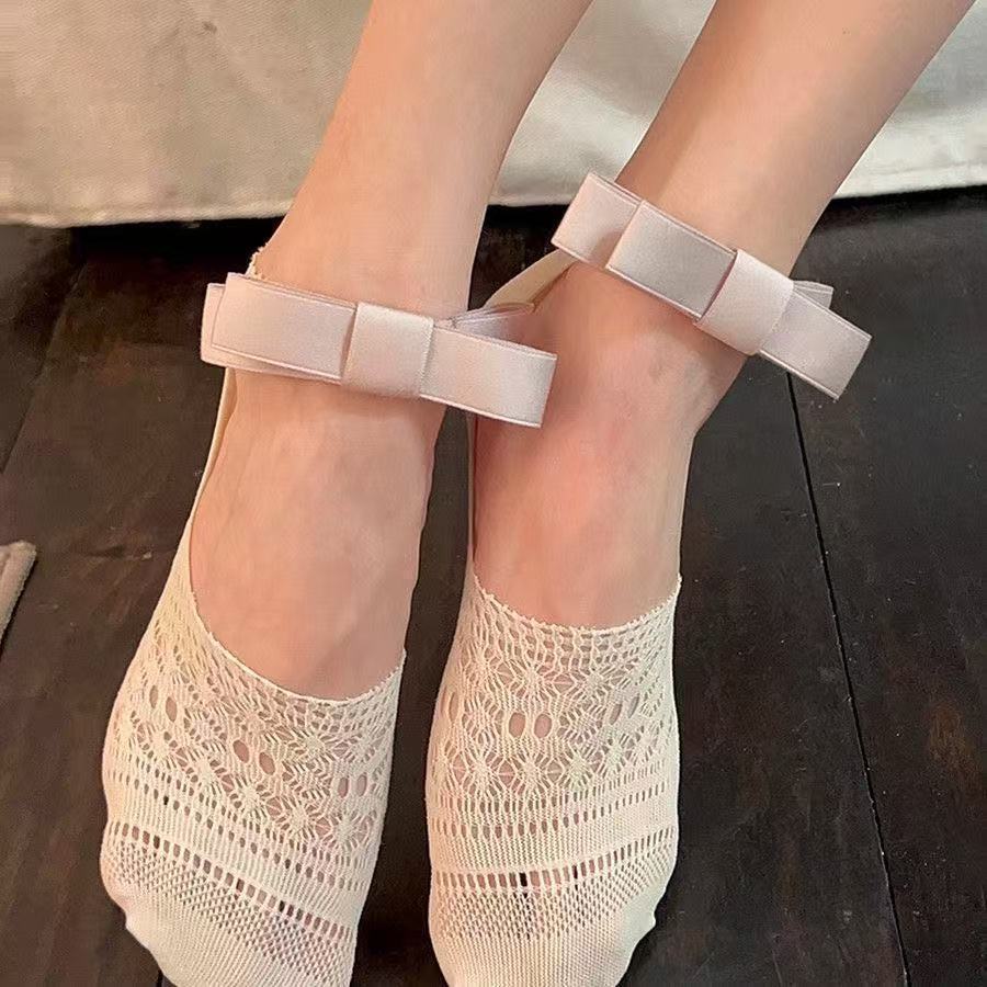 발레 스타일 소녀 양말 나비 매듭 중공 보트 양말 귀여운 로리타 학생 얇은 레이스 양말 여성 보트 양말