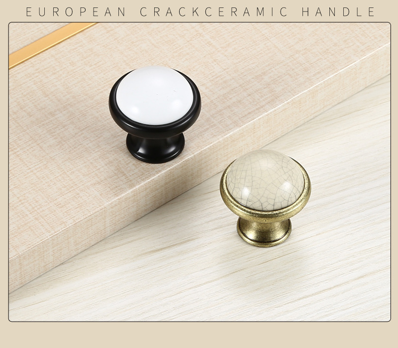 유럽 세라믹 핸들 청동 색상 균열 골동품 서랍 캐비닛 옷장 도어 핸들 하드웨어 액세서리 도어 핸들