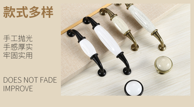 유럽 세라믹 핸들 청동 색상 균열 골동품 서랍 캐비닛 옷장 도어 핸들 하드웨어 액세서리 도어 핸들스토어 가기