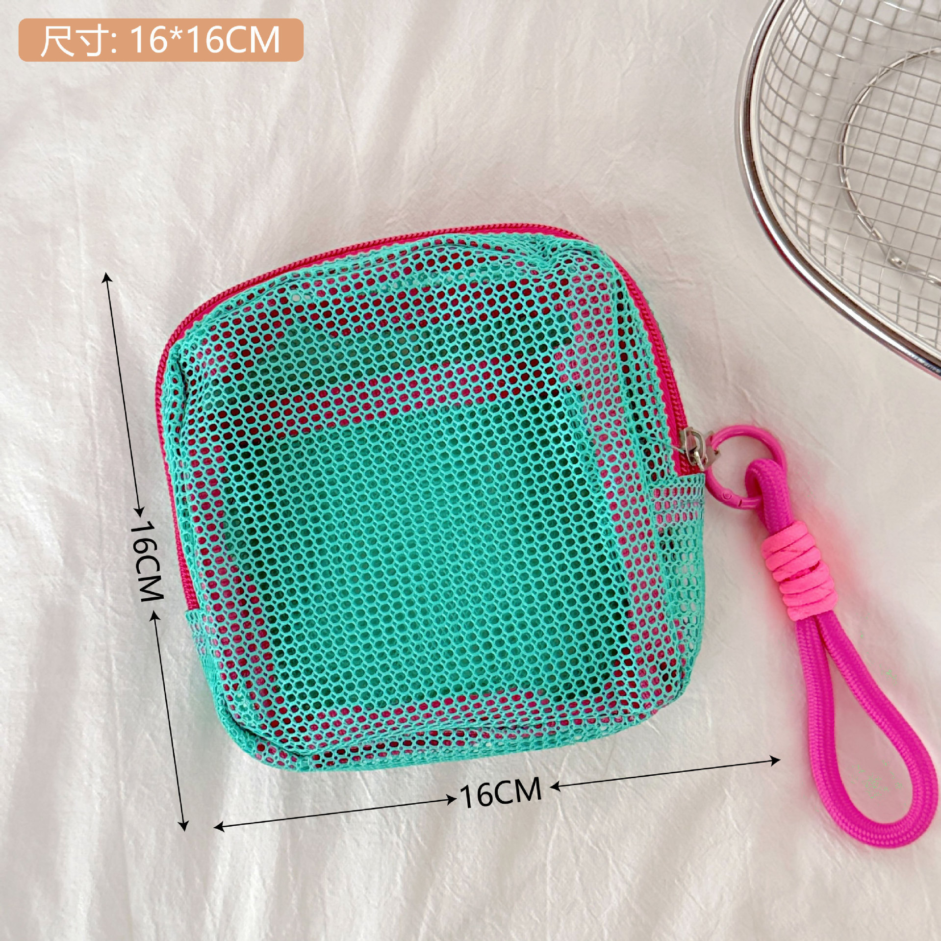 도파민 메쉬 두부 가방 소녀 하트 휴대용 보관 가방 메쉬 작은 화장품 가방 립스틱 휴대용 작은 사각형 가방