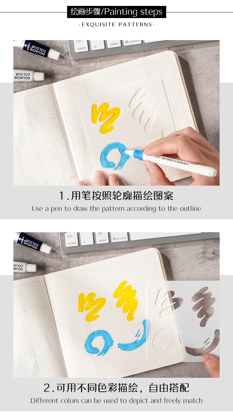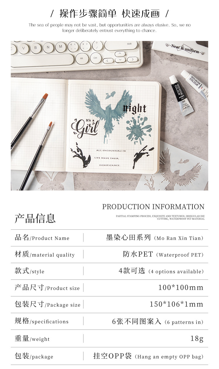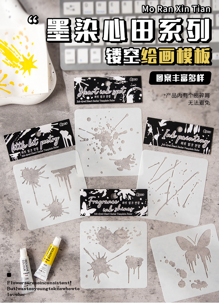 Yuezhen 잉크 염료 하트 필드 손으로 쓴 신문 템플릿 중공 그림 크로스 테두리 스프레이 페인팅 중공 템플릿 애완 동물 그림 템플릿