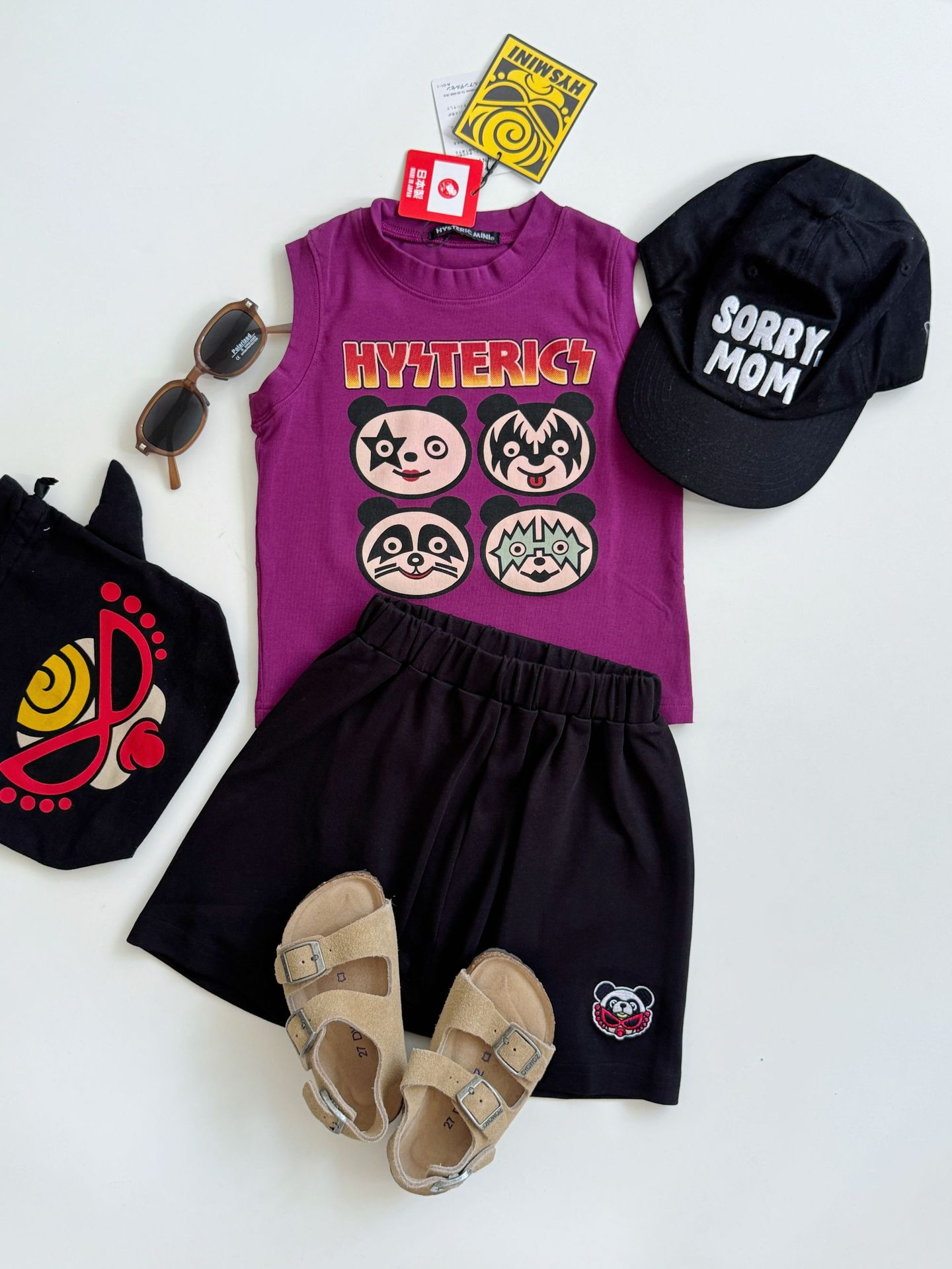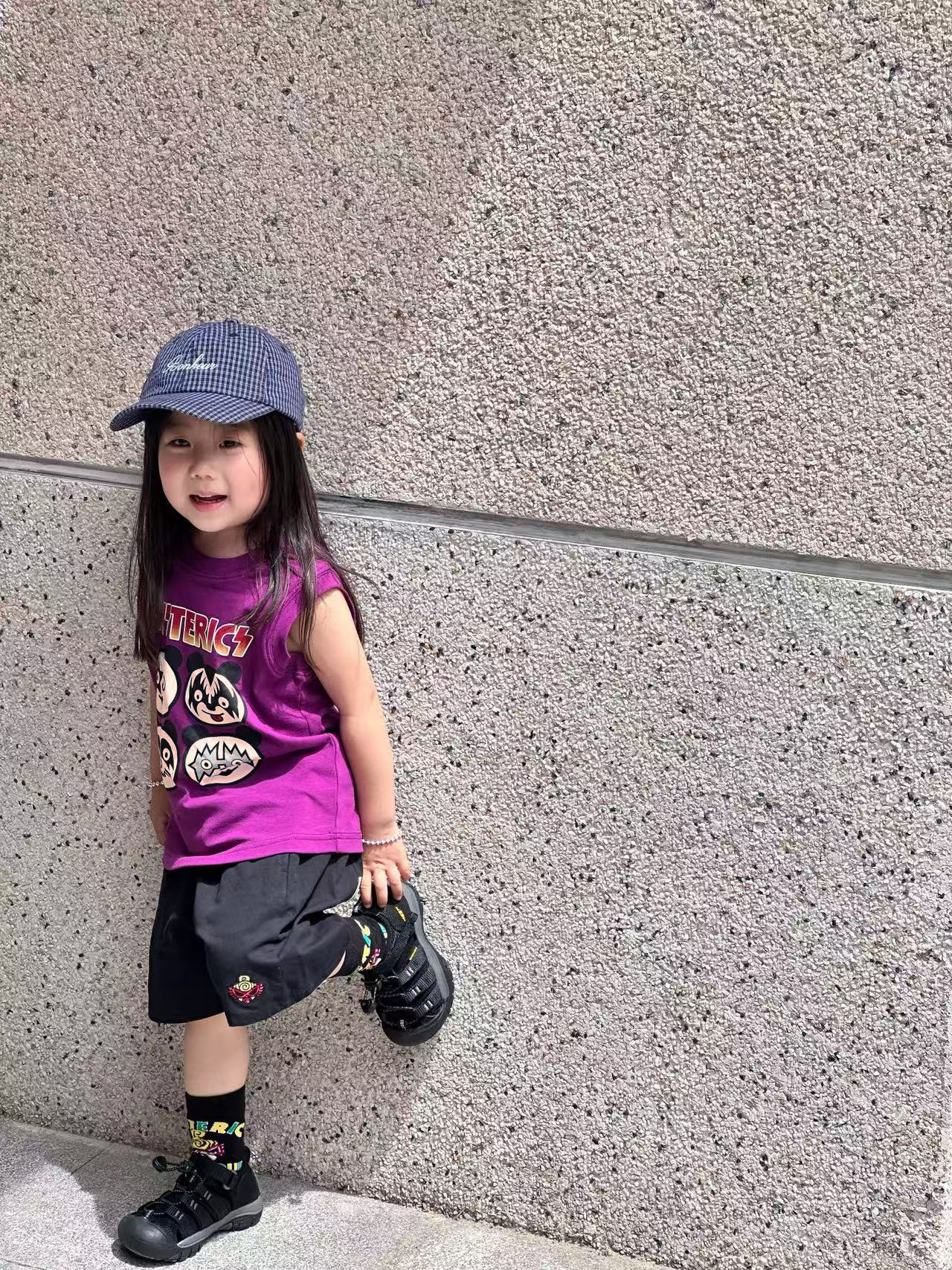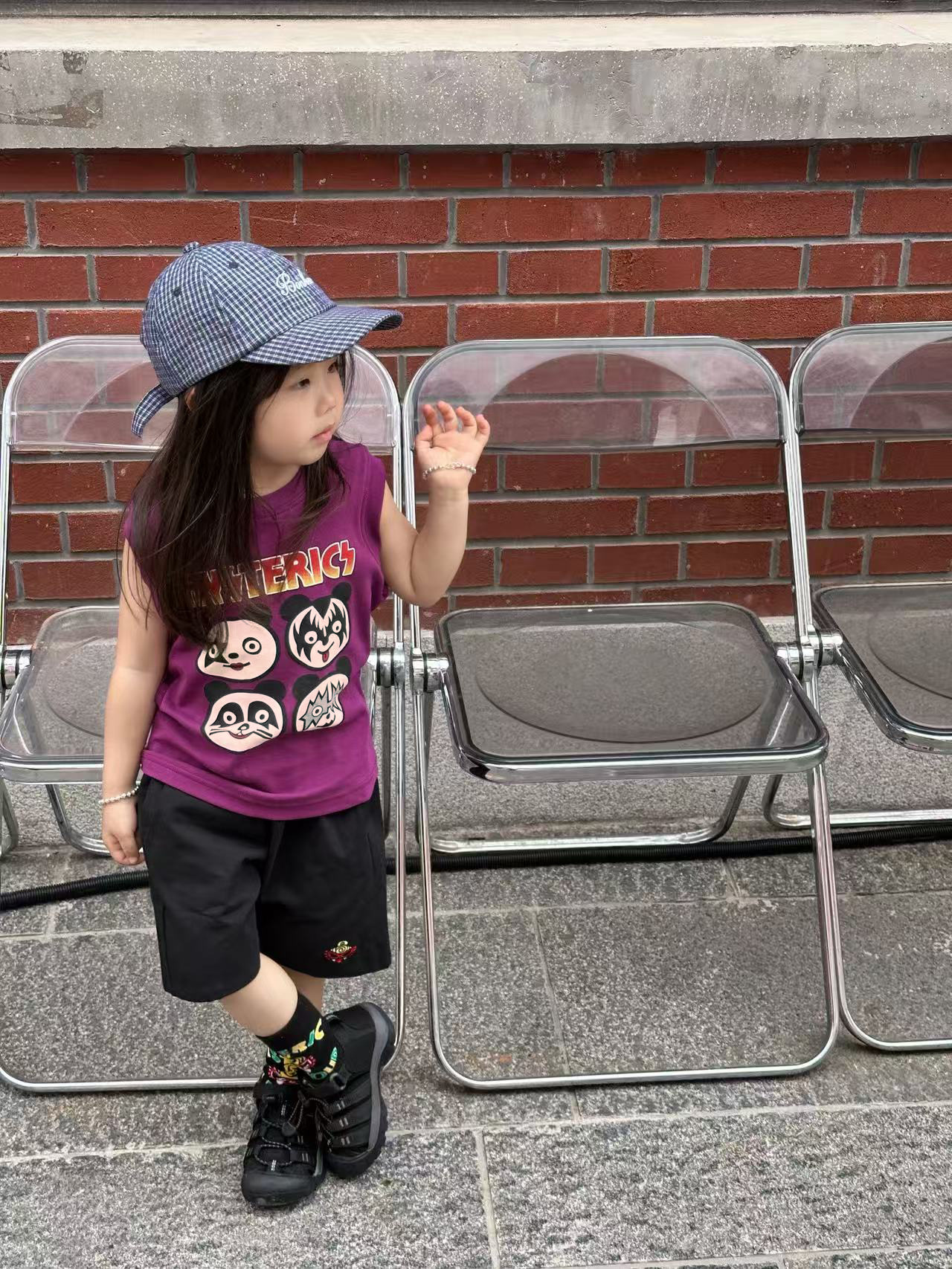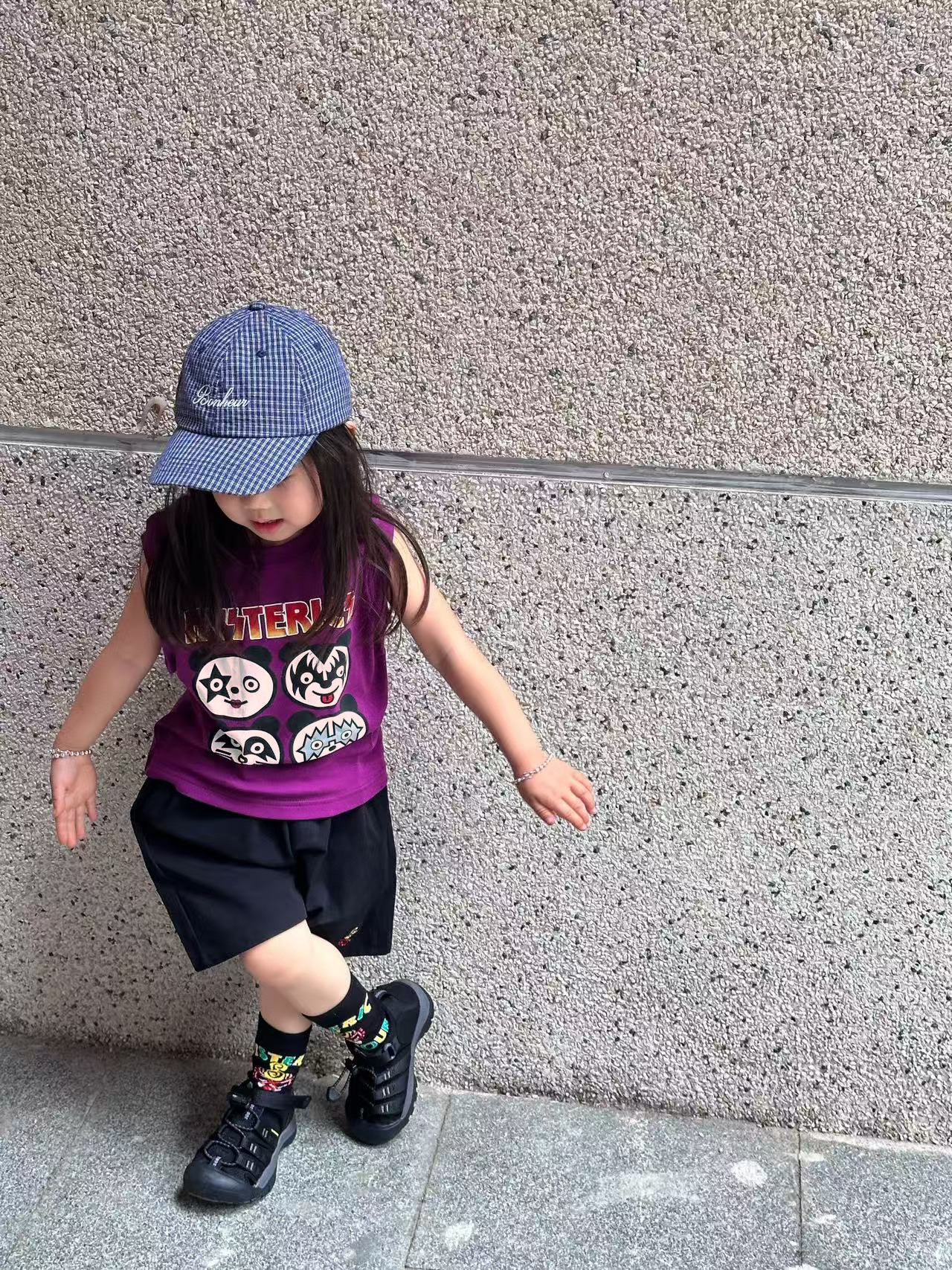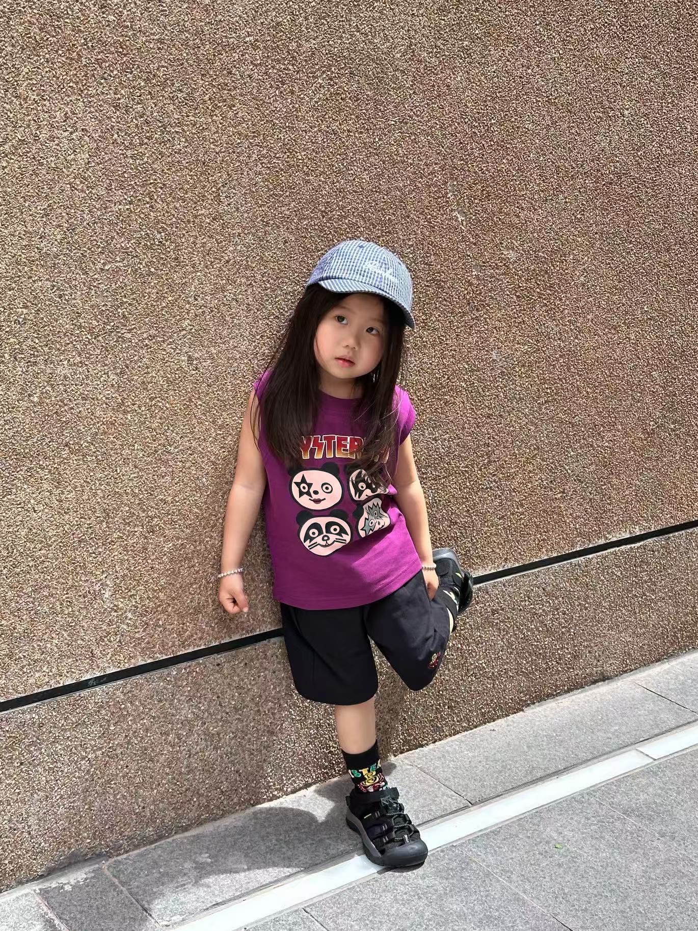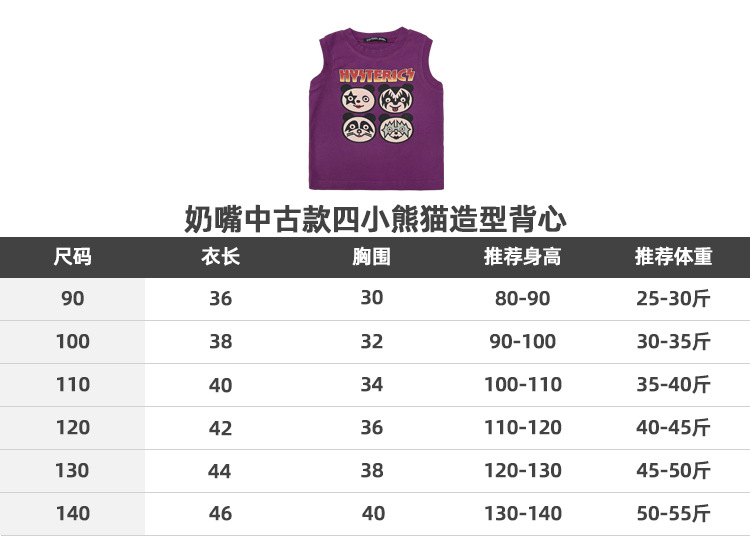 2025 새로운 블랙 슈퍼 트렌디 브랜드 젖꼭지 중세 스타일 4개의 작은 팬더 모양의 조끼 젖꼭지 어린이 조끼 재고 있음
