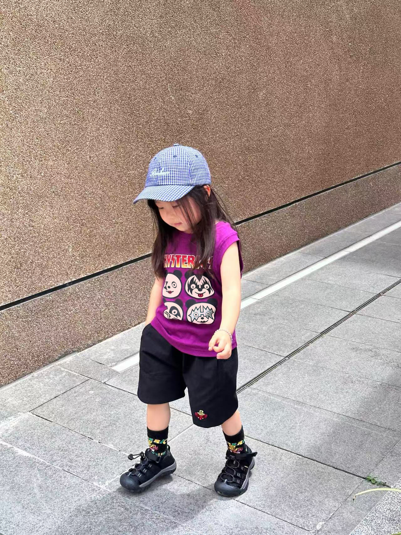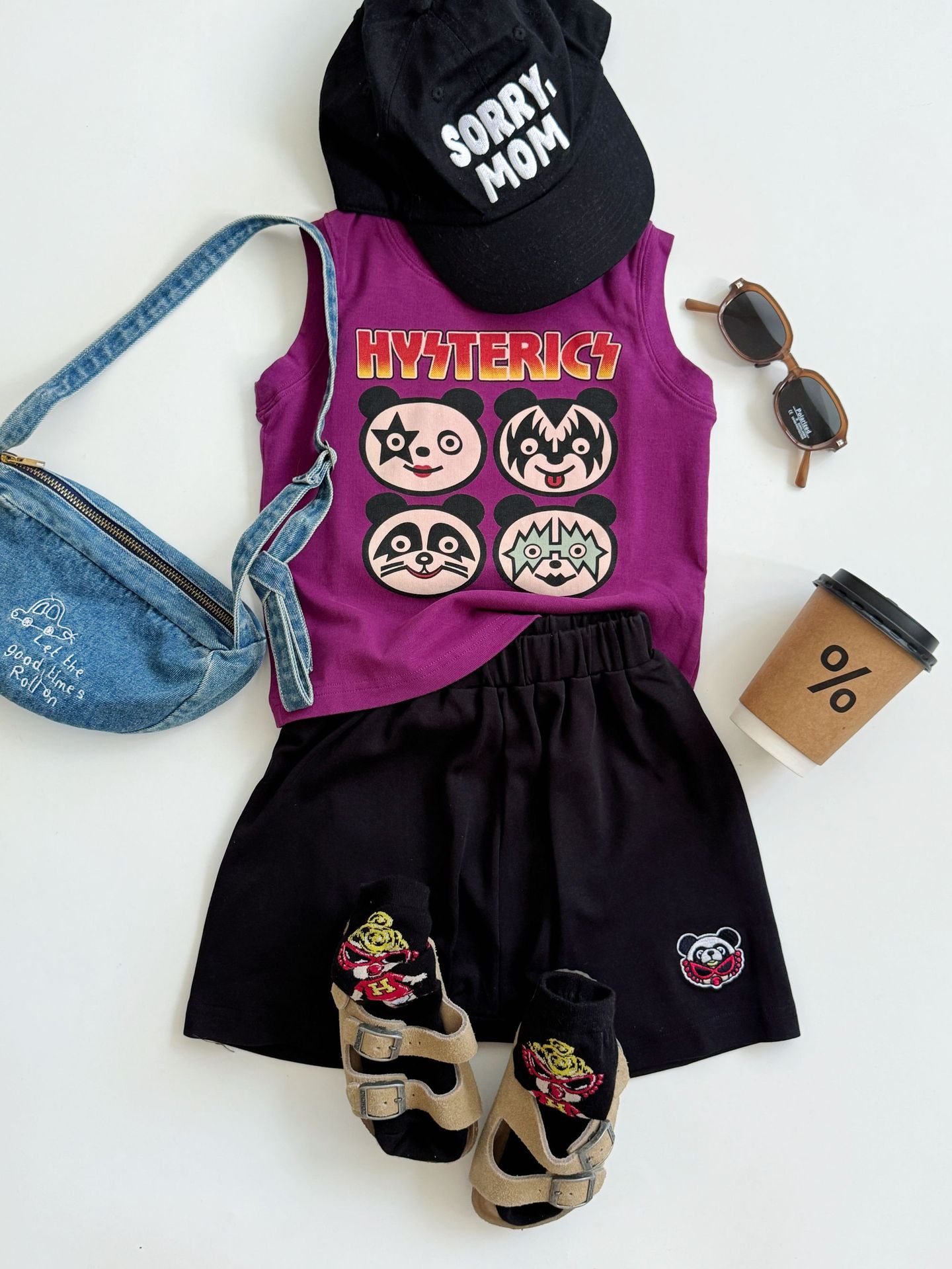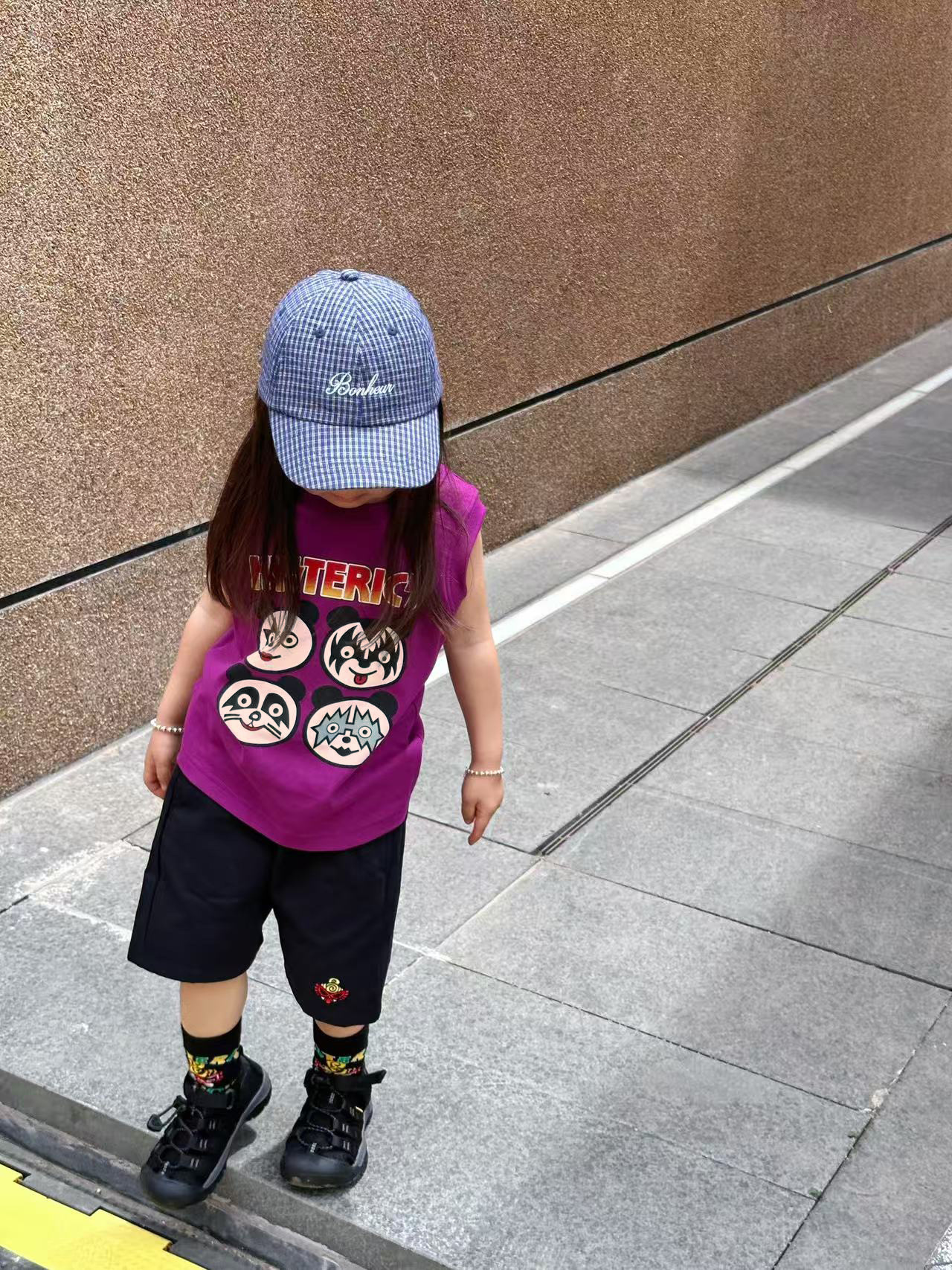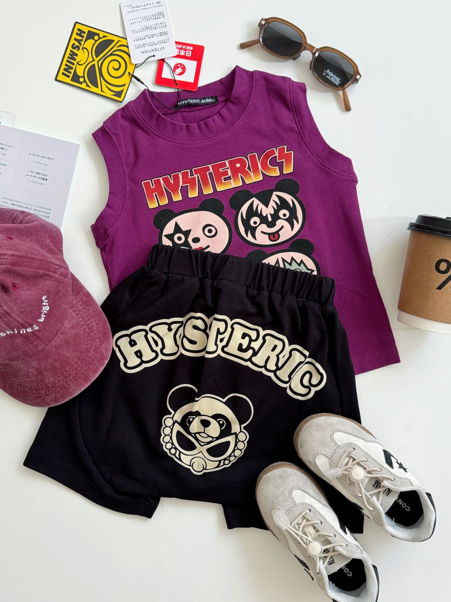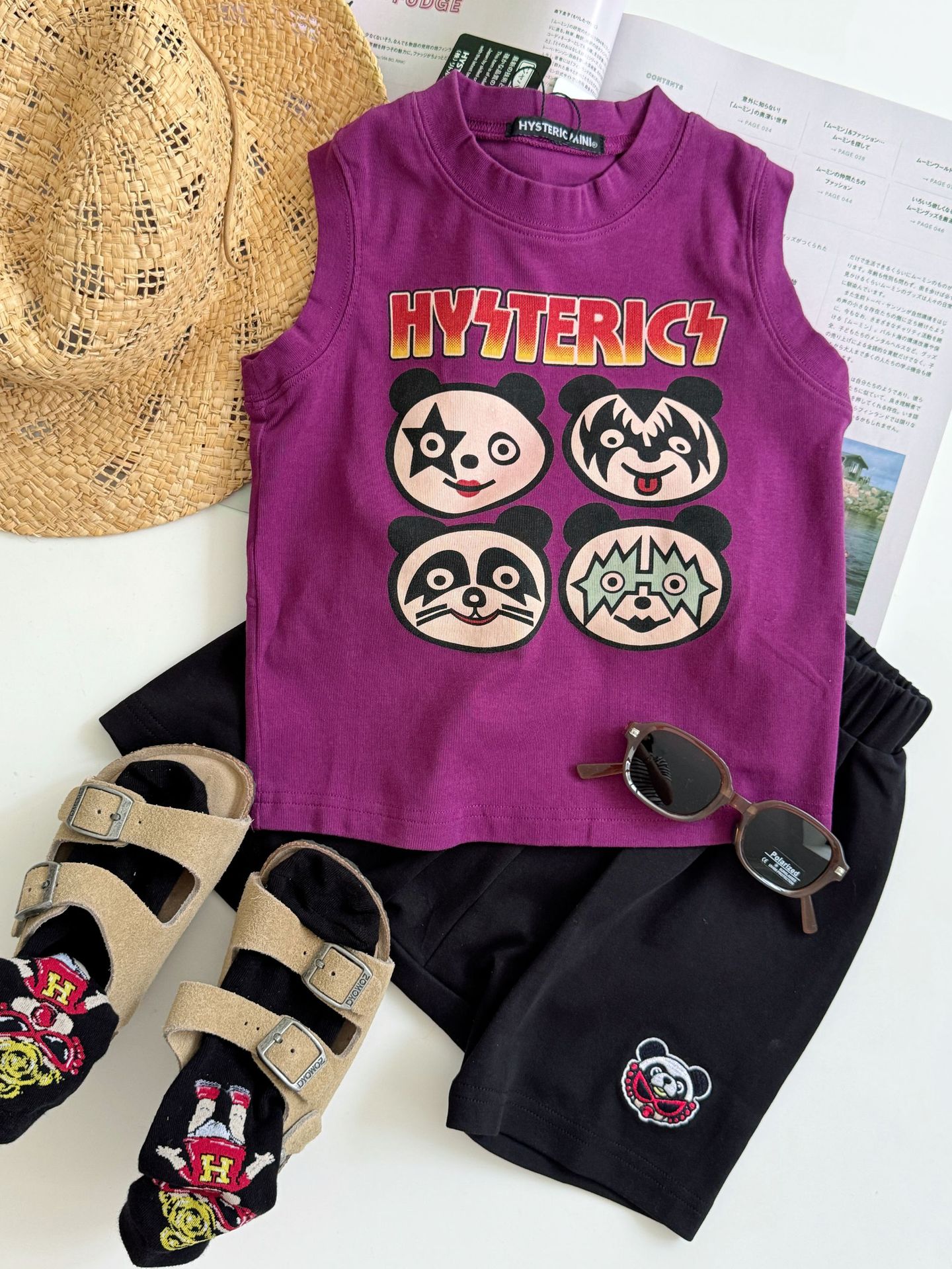 2025 새로운 블랙 슈퍼 트렌디 브랜드 젖꼭지 중세 스타일 4개의 작은 팬더 모양의 조끼 젖꼭지 어린이 조끼 재고 있음