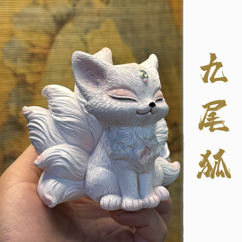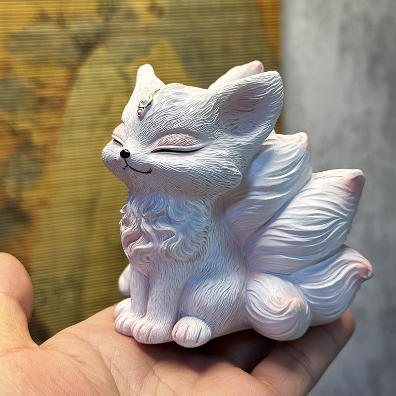 9개의 꼬리가 달린 여우 장식품, 선물, 데스크탑 장식, 귀여운 여우, 오리지널 천연 수지 자동차 액세서리, 창의적인 선물스토어 가기