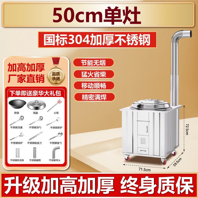 304 스테인레스 스틸 장작 스토브 농촌 가정용 목재 실내 무연 두꺼운 이동식 토양 스토브 장작 스토브스토어 가기