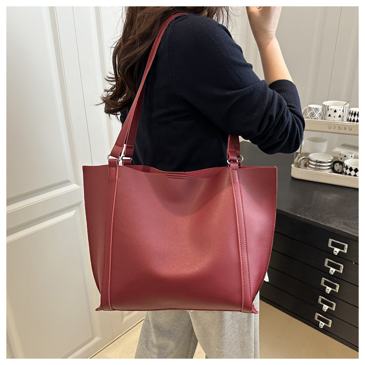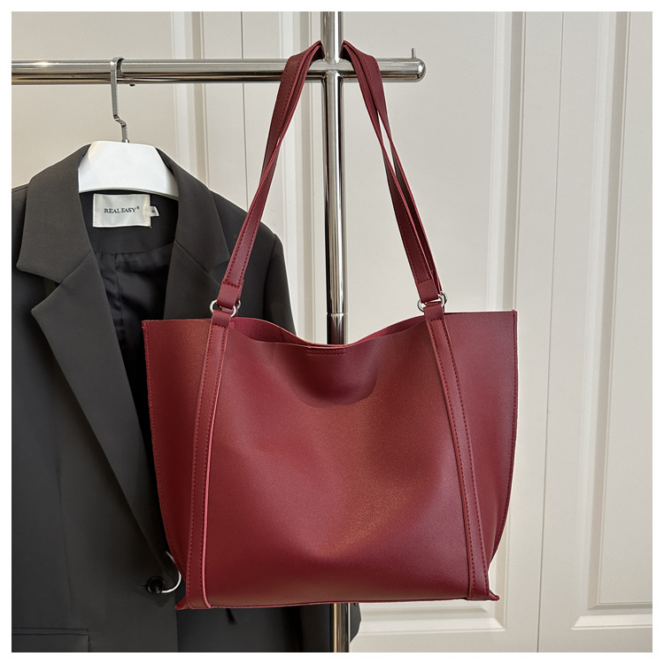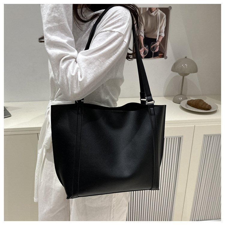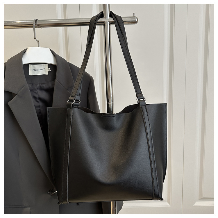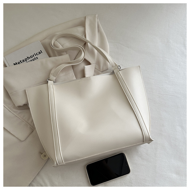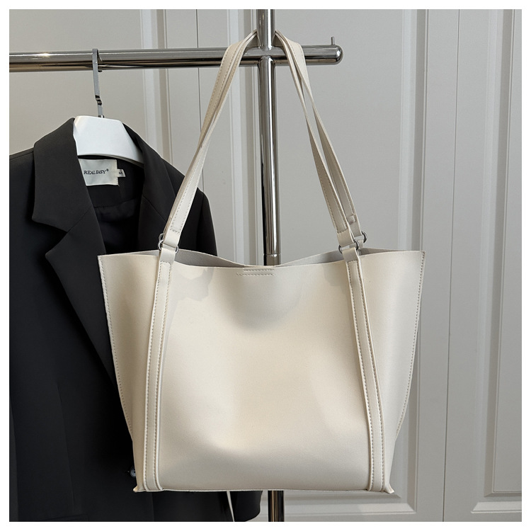 솔리드 컬러 대용량 여성용 토트 백 2025 새로운 패션 레트로 올 매치 매일 출근 어깨 언더암 가방